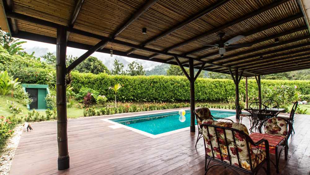 This charming house is perfect for a couple or small family, in the peaceful environment of a 6 lot development. The two bedroom, one bathroom house is neutrally decorated with open concept living area and large kitchen with lots of quality cabinetry including a pantry. The kitchen leads to a covered dining terrace and the lovely backyard, where you will find a large bodega for storage and the laundry machines. A fantastic new pool, wooden deck and bamboo covered terrace are the perfect place from which to admire the mountains.