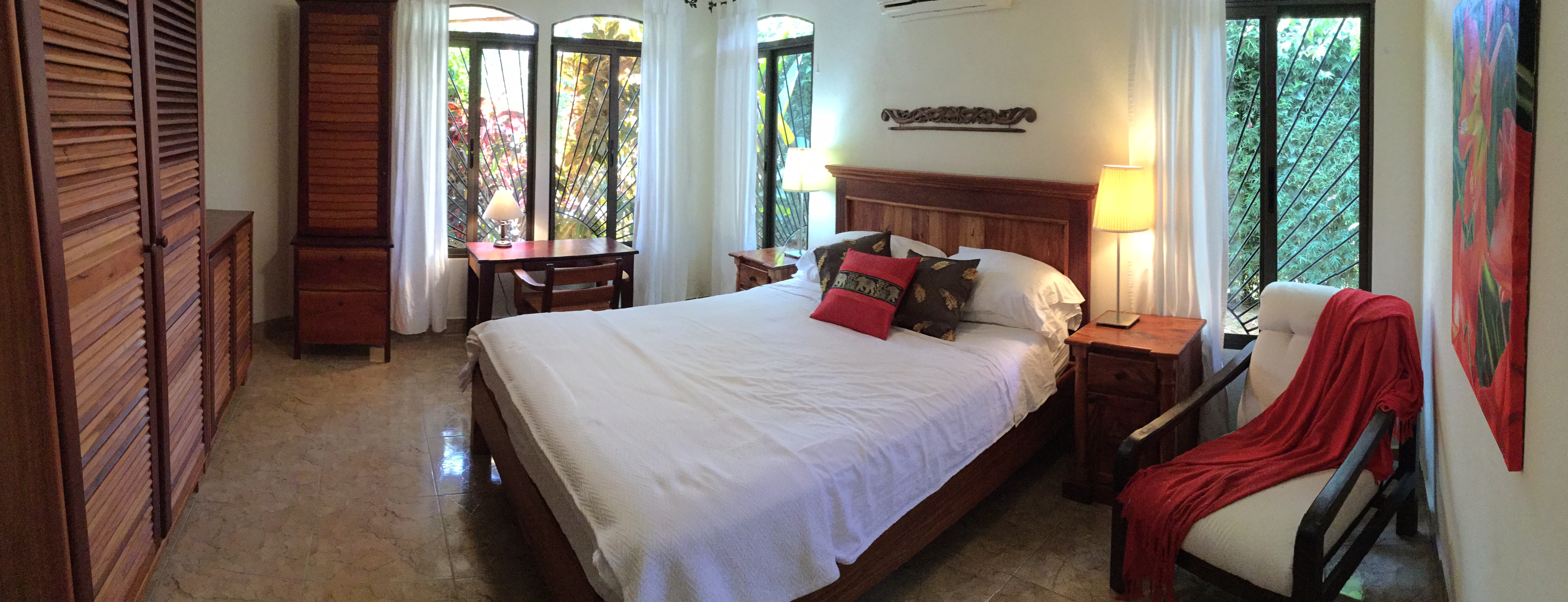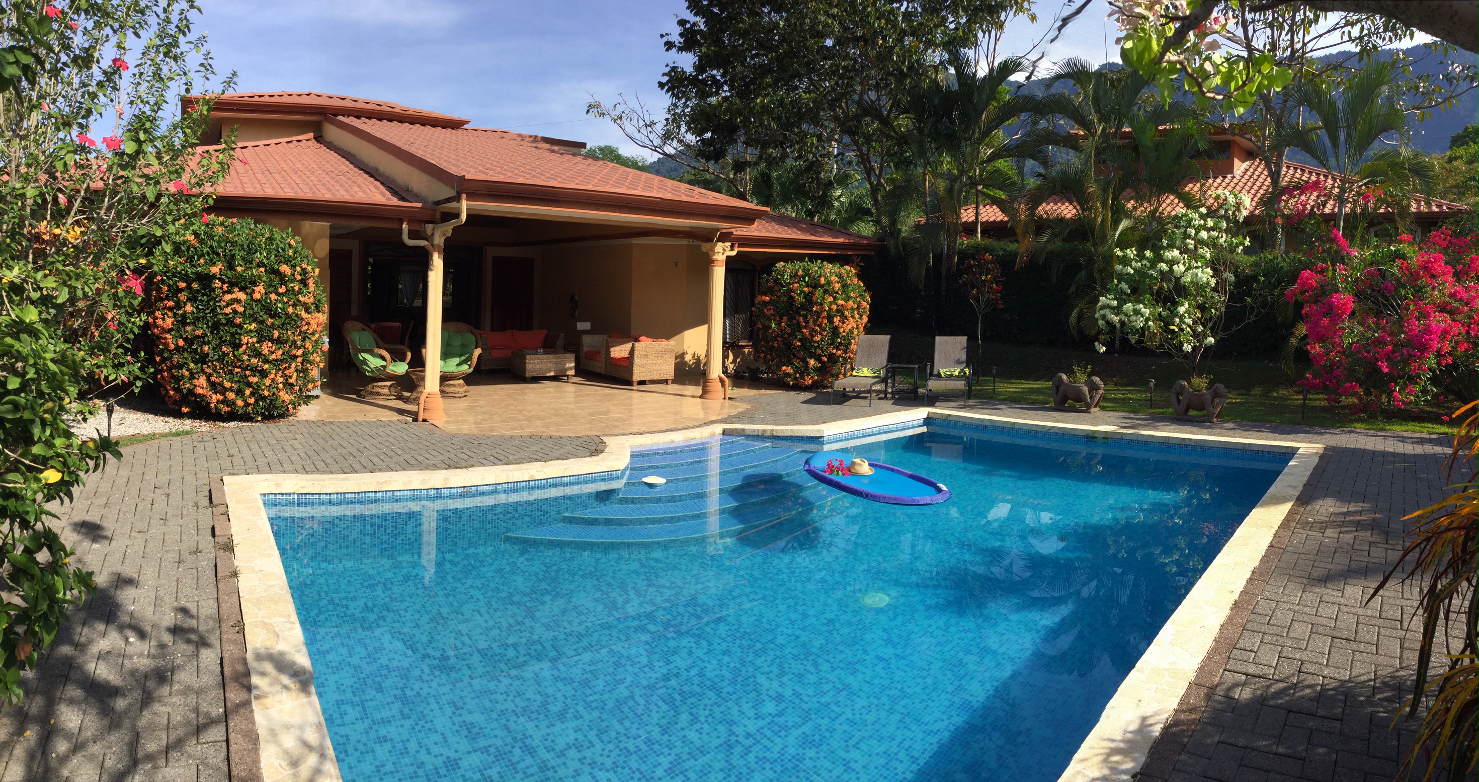 The house is a well-maintained 6 year old bungalow, nestled amongst a little community of similar homes, just 2.3 km from the Costanera, minutes from beautiful beaches, with excellent access to village restaurants, shopping, yoga, etc.