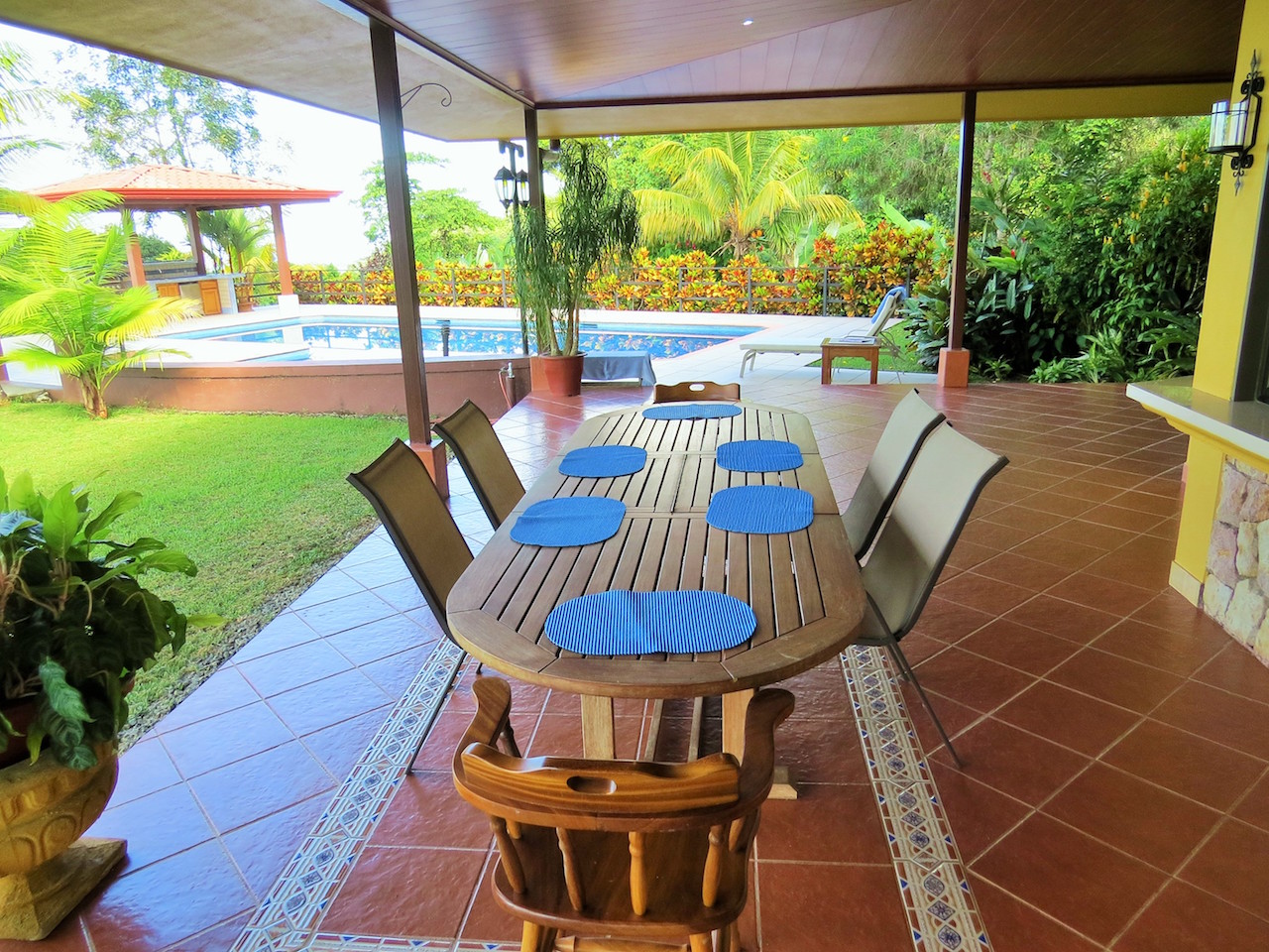 DESIGNED FOR ENTERTAINING.... family and friends will delight in the 16 x 40-foot tiled pool with a beautiful landscaped yard big enough for croquette, bocce, or volleyball! The pool deck has room for everyone, and comes complete with a covered rancho with grill, fridge, and wet bar.