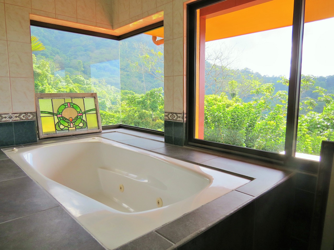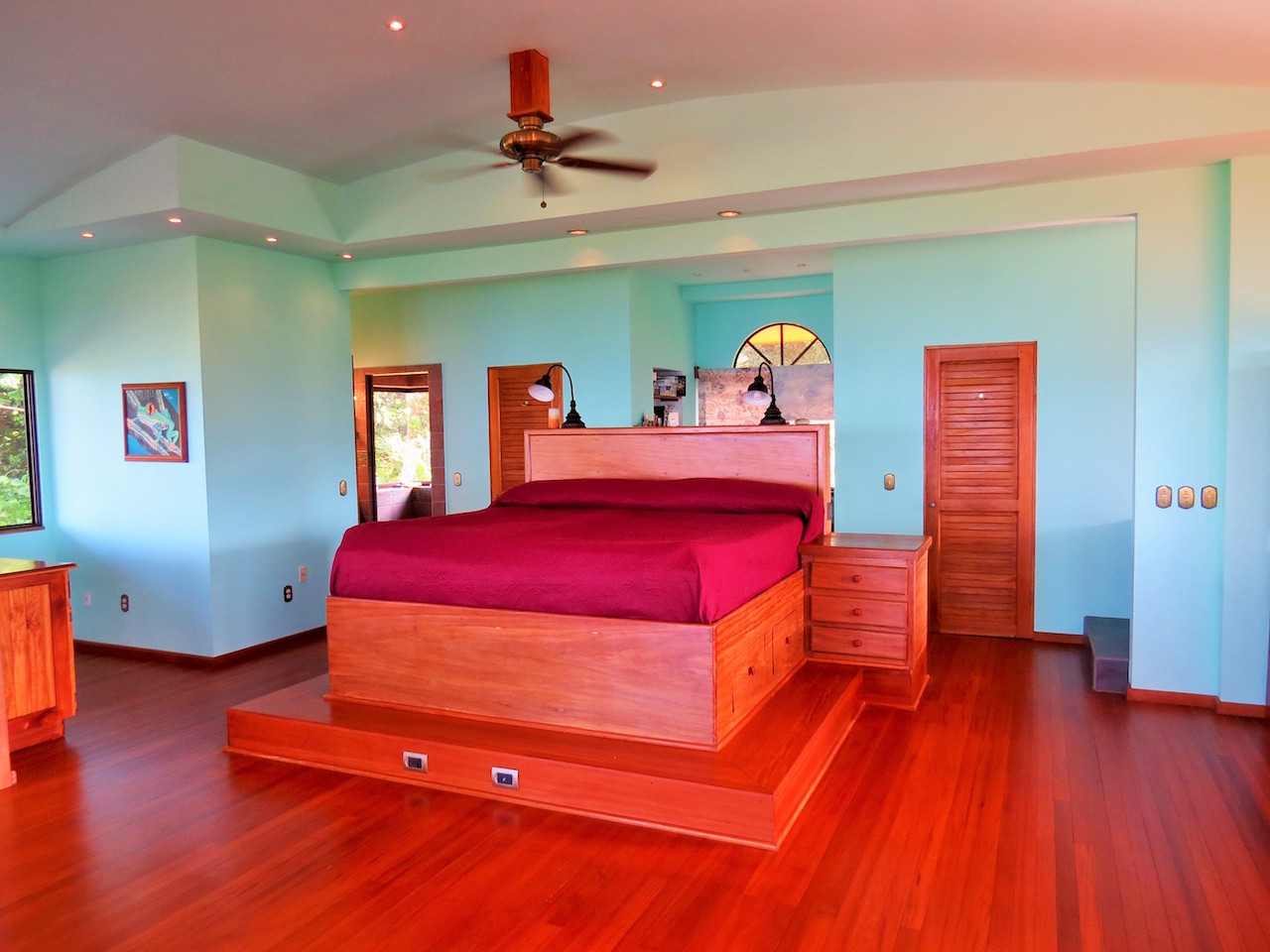MASTER SUITE RETREAT: One of the biggest bedrooms you͛ve ever seen, encompassing the entire second floor; mixed with a private, wrap around balcony with spectacular ocean, valley and mountain views, an office desk, sitting area, twin closets, corner shower with twin shower heads, and A CORNER BATH TO ͚SPOIL YOU͛, sunken with jets, with two large windows with gorgeous views of the mountain and jungle.