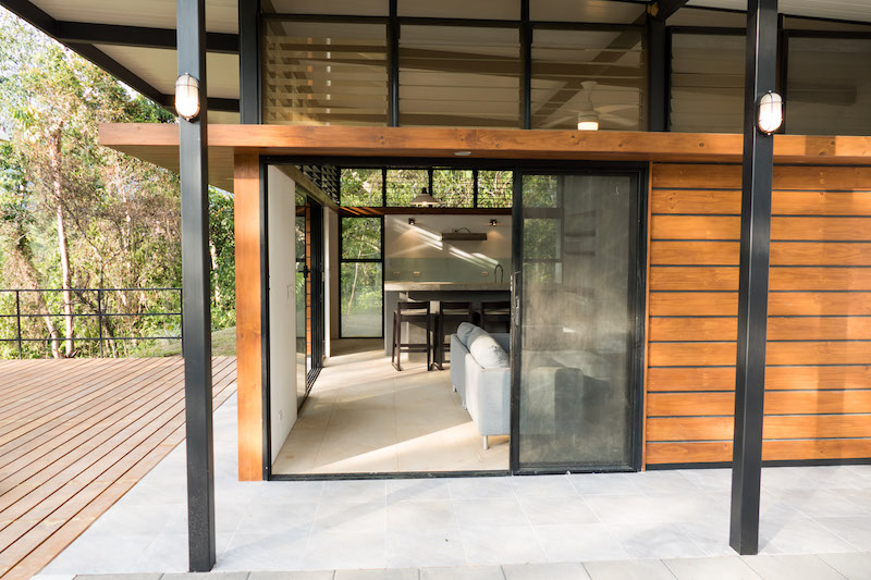Inside the modern, open concept living and kitchen area, polished concrete and stone counters and rich wood accents welcome you in. Comfortable bedrooms with state-of-the art inverter air conditioning offer integrated closets. The bathroom features an imported stone sink basin, high end fixtures, a walk in rain shower and beautiful hand-crafted wood counters.