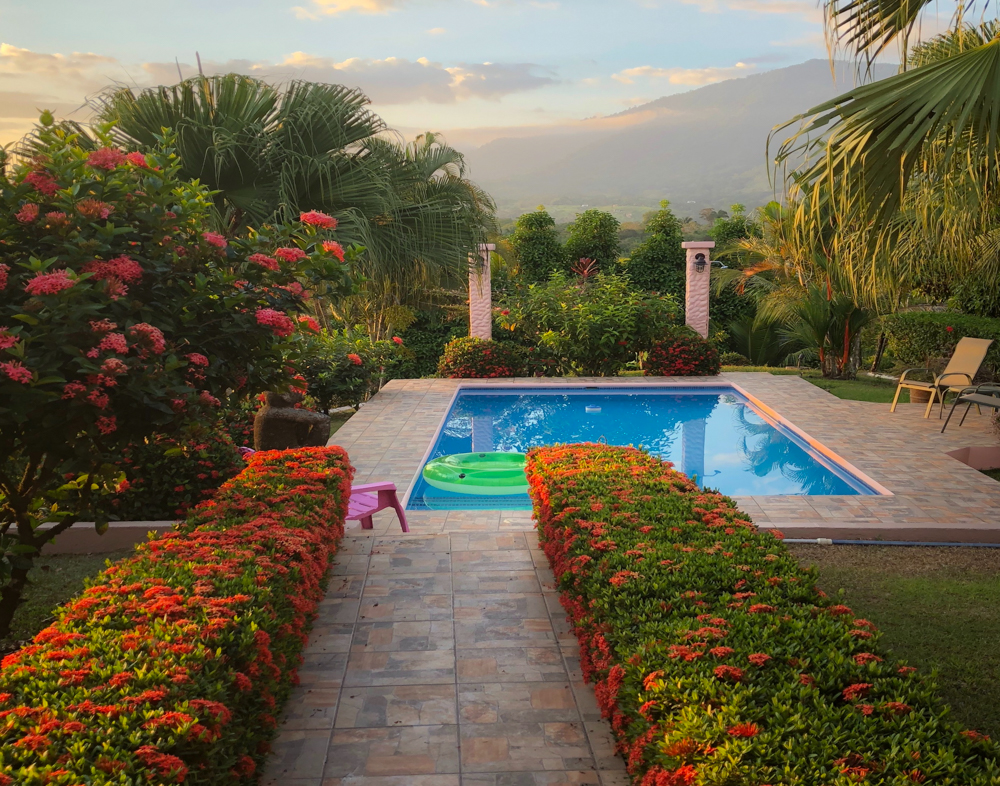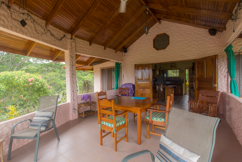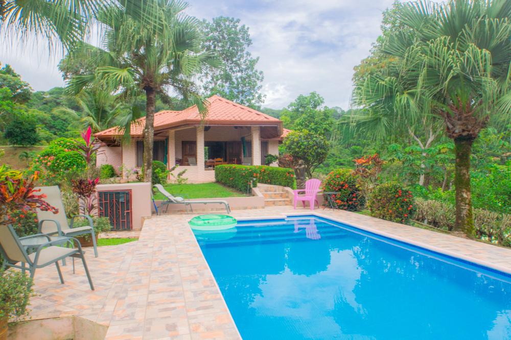 The house is designed to maximize the outdoor living lifestyle, popular in Costa Rica, with outdoor dining and lounge spaces. The large covered terrace has incredible panoramic views and overlooks the pool. The interior of the house features 2 bedrooms each with ensuite bathrooms. The cheery kitchen has plenty of cabinetry and counter space including a breakfast bar. The detached bodega is just stepped away, with plenty of storage space and the laundry washer/dryer. Appliances are included, furnishings are negotiable. The beautiful vaulted wood ceilings, windows, and doors are in excellent condition. The gutters and insulated roof were replaced just three years ago. The house is very clean, well-maintained, and move-in ready!