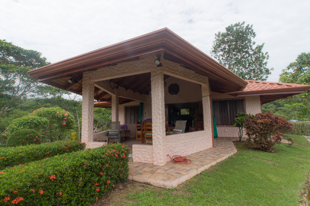 This charming 2 bedroom house with acreage sits on a ridge with a window ocean view and absolutely breathtaking panoramic mountain views. You will enjoy sunset views over the ocean several months of the year. The property is located in a quiet community in the quaint village of Ojochal, only 10 minutes to two beaches. Renowned for many excellent restaurants and neighbors vs tourists, Ojochal is a preferred community for a laid-back and tranquil lifestyle, where the mountains meet the sea.