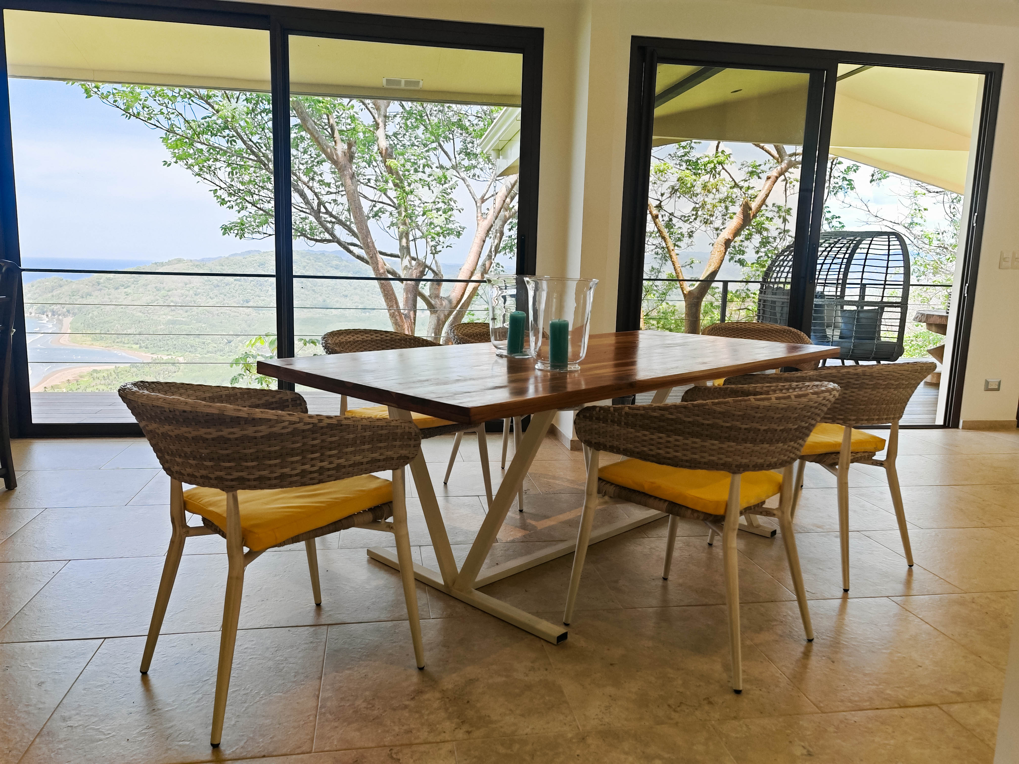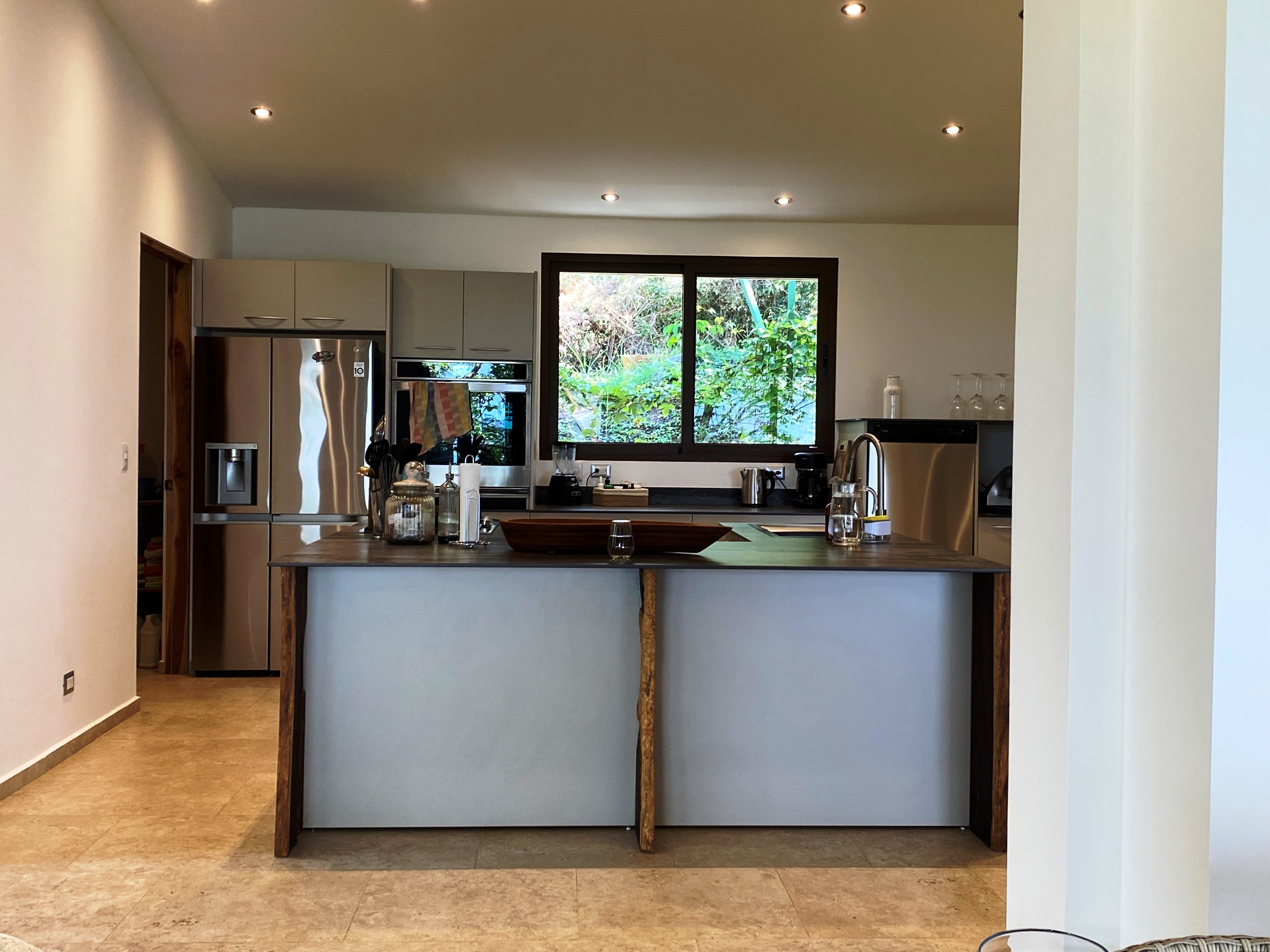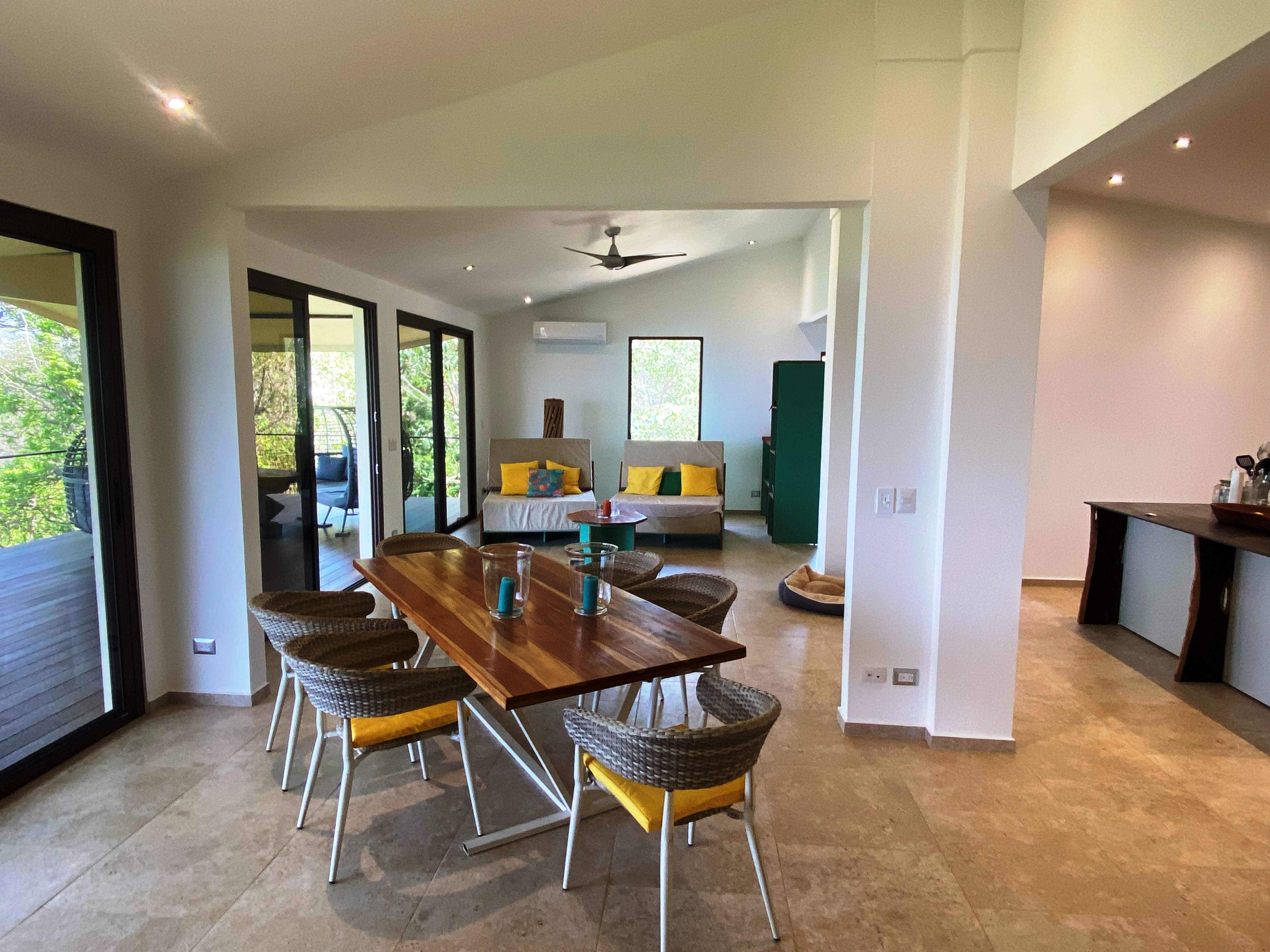 Overlooking the lovely beach at Playa Organos, the famous Isla Tortuga and the beautiful coast down to Curu Park, this new, modern home provides all one could ask for in regal tropical living. This lot was especially chosen to capture the outstanding views and the result is an emotional success. The views are outstanding and change throughout the day, over the ocean, beaches, islands, valleys and mountains below. The home is built with an open plan, with spacious rooms full of light. It was built by a couple to accommodate their life style and is comfortable and efficient. The home sits on a structure that could be easily converted to additional apartments, storerooms, or workshops, all enjoying the panoramic views from this unique site. Although high on the hills above the sea, the road is paved with cement and is easily accessable all year round. The beach is just below the hill and the neighboring town of Paquera provides several supermarkets, restaurants, hardware stores, a gas station, a 24/7 hospital and much more. Please call for an appointment to view this magnificent property.