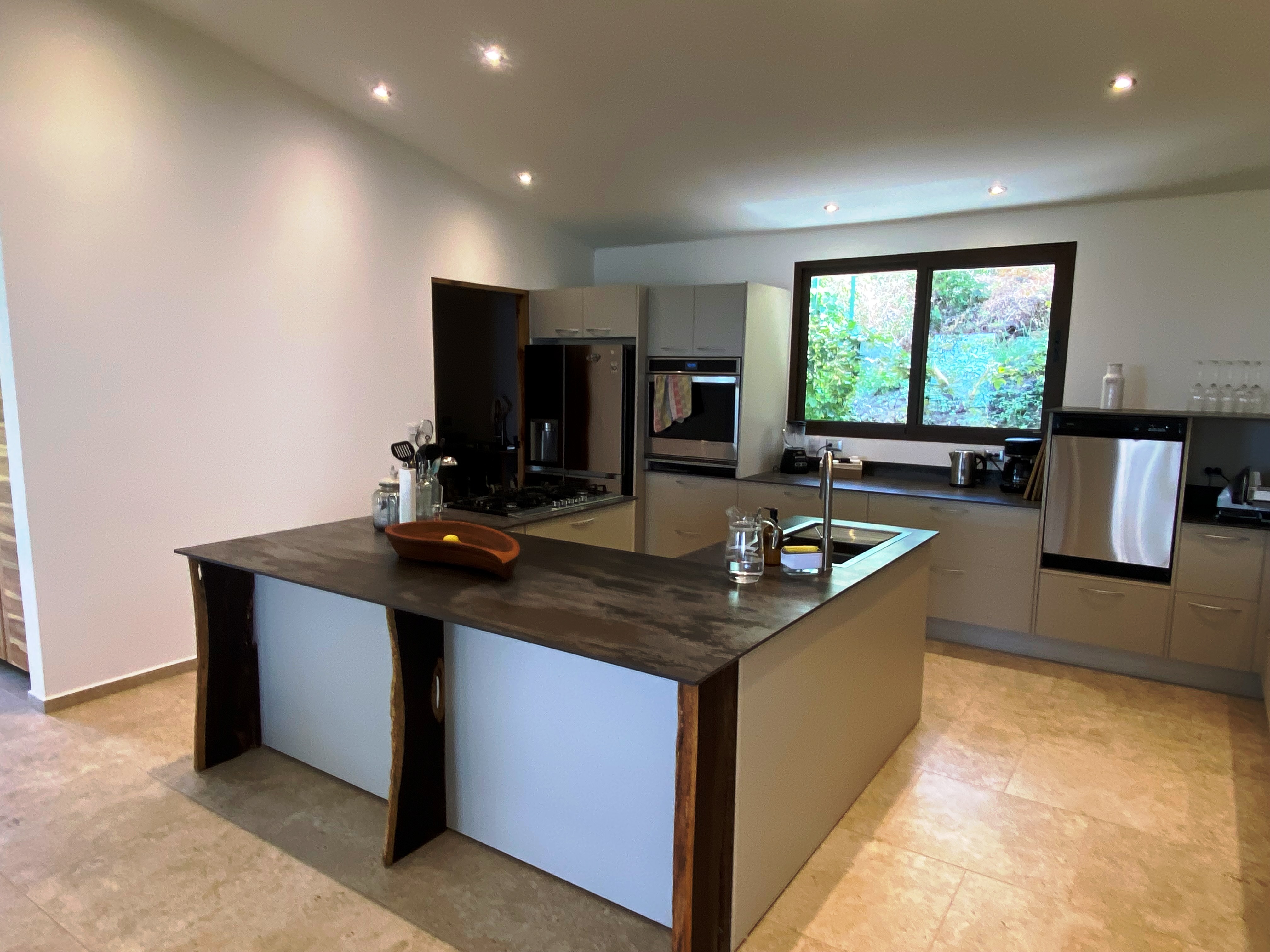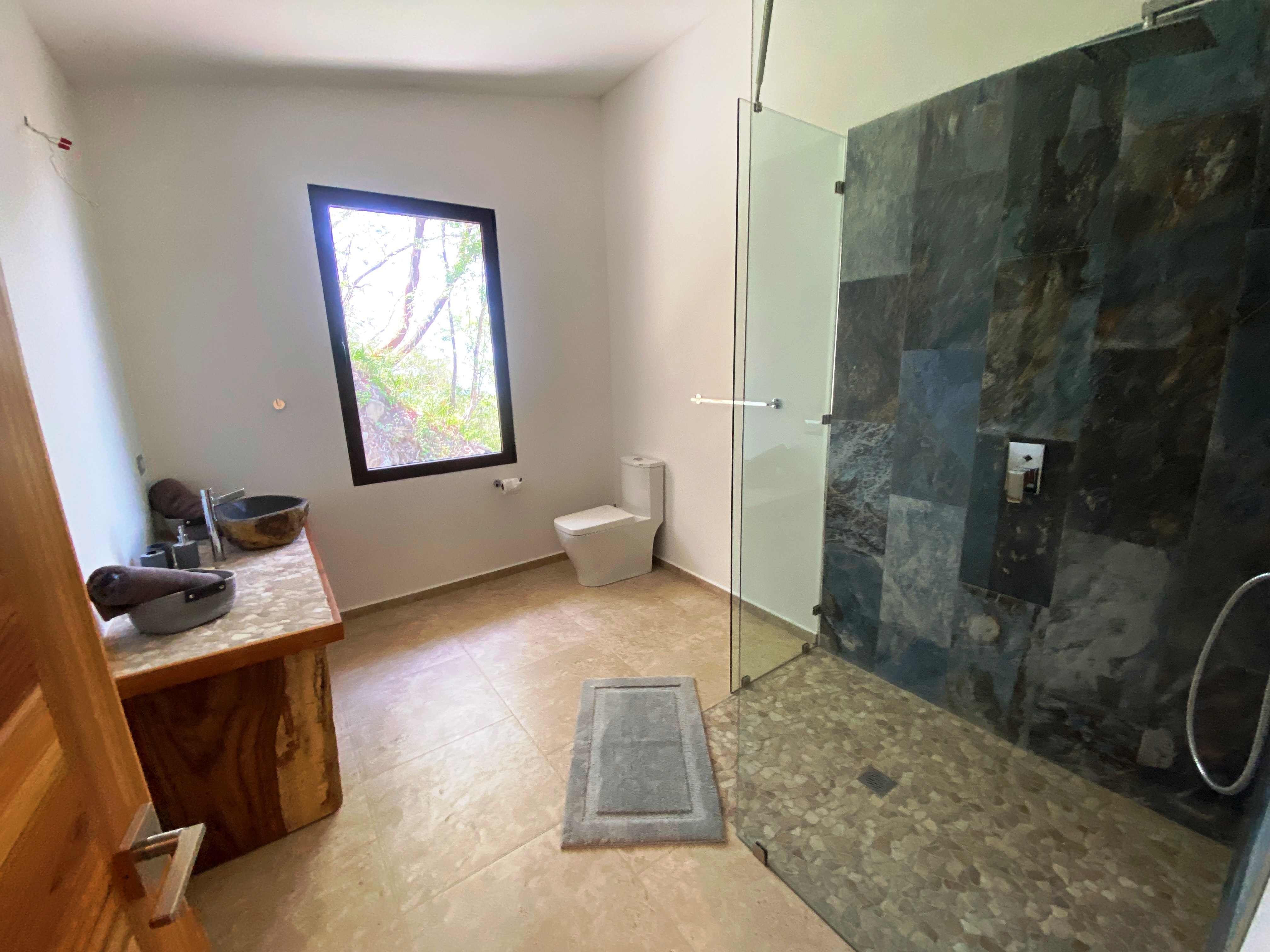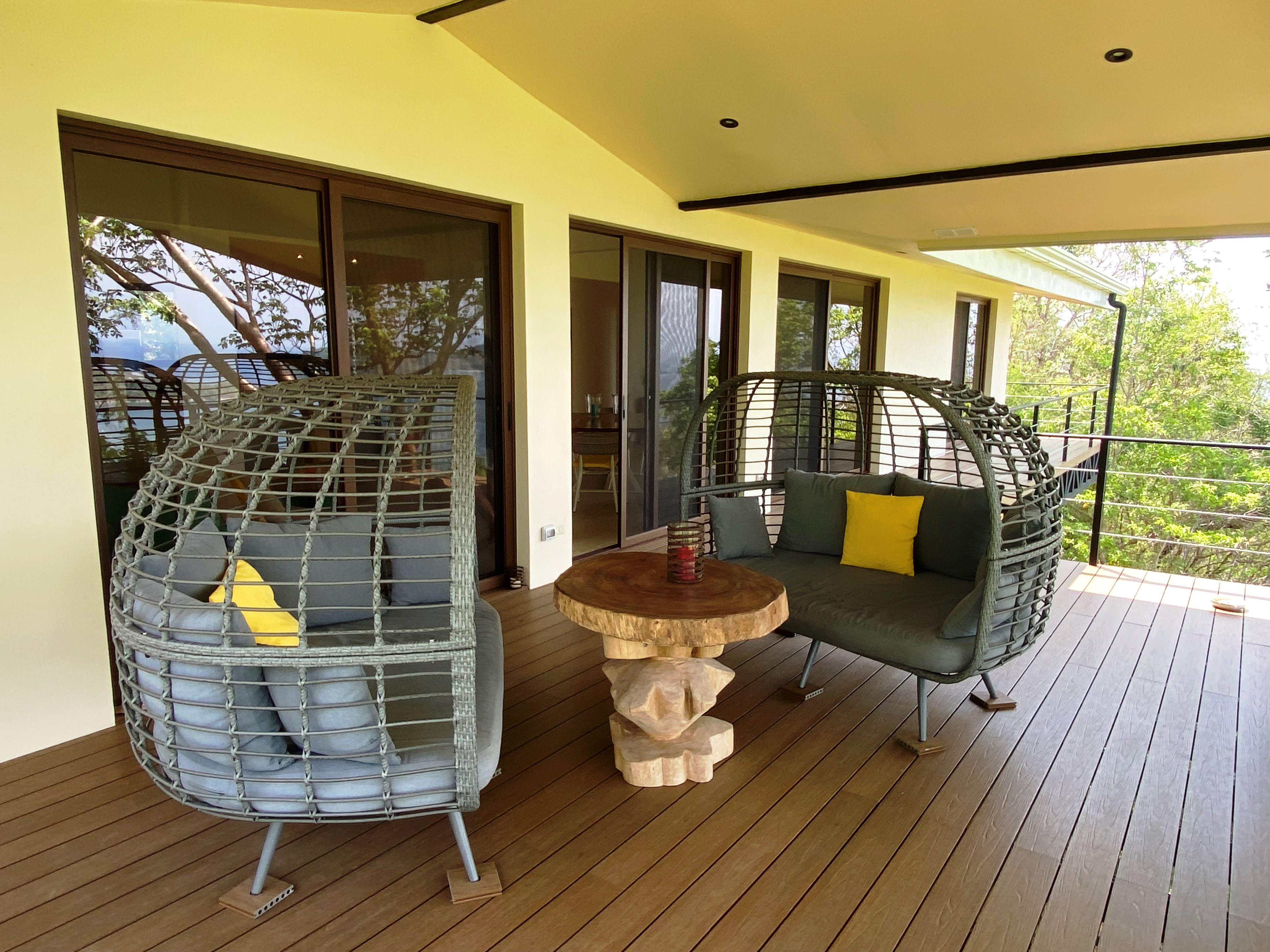 Overlooking the lovely beach at Playa Organos, the famous Isla Tortuga and the beautiful coast down to Curu Park, this new, modern home provides all one could ask for in regal tropical living. This lot was especially chosen to capture the outstanding views and the result is an emotional success. The views are outstanding and change throughout the day, over the ocean, beaches, islands, valleys and mountains below. The home is built with an open plan, with spacious rooms full of light. It was built by a couple to accommodate their life style and is comfortable and efficient. The home sits on a structure that could be easily converted to additional apartments, storerooms, or workshops, all enjoying the panoramic views from this unique site. Although high on the hills above the sea, the road is paved with cement and is easily accessable all year round. The beach is just below the hill and the neighboring town of Paquera provides several supermarkets, restaurants, hardware stores, a gas station, a 24/7 hospital and much more. Please call for an appointment to view this magnificent property.
