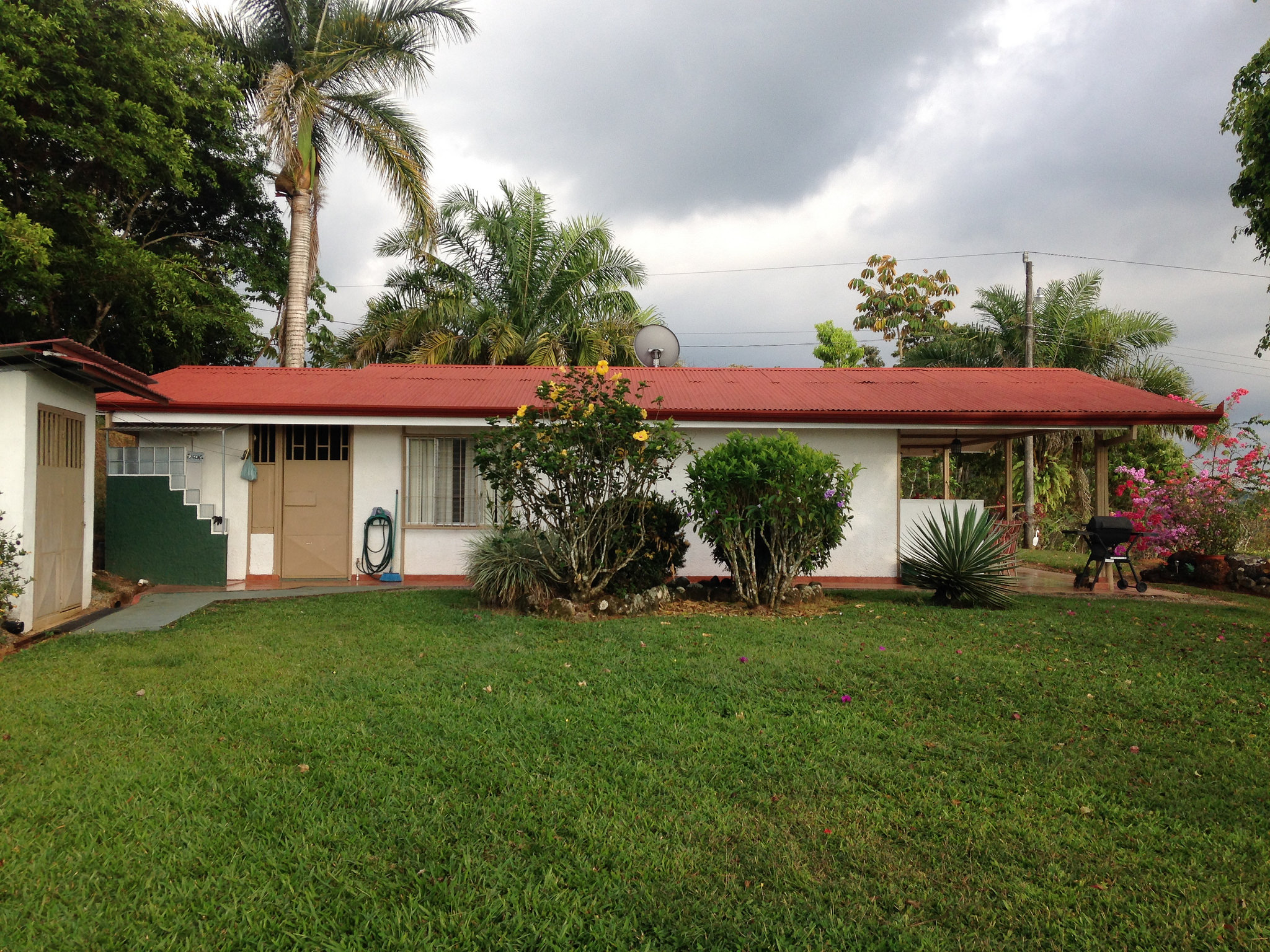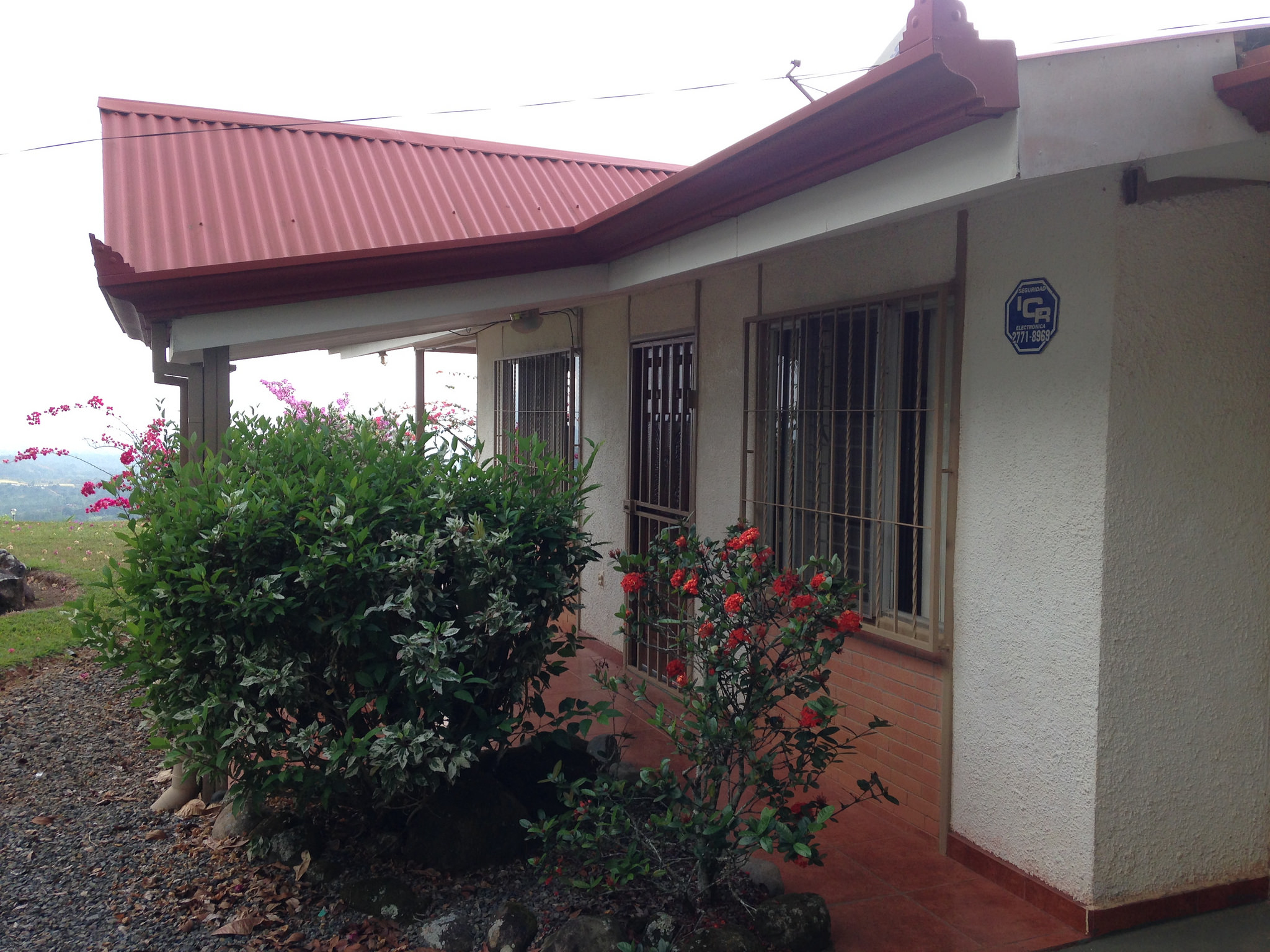 A relaxing two bedroom, one bath, home with attached garage and electric gate on a well-landscaped lot, nestled on the hillside of the San Blas de General Viejo, San Isidro farming community of Perez Zeledon.