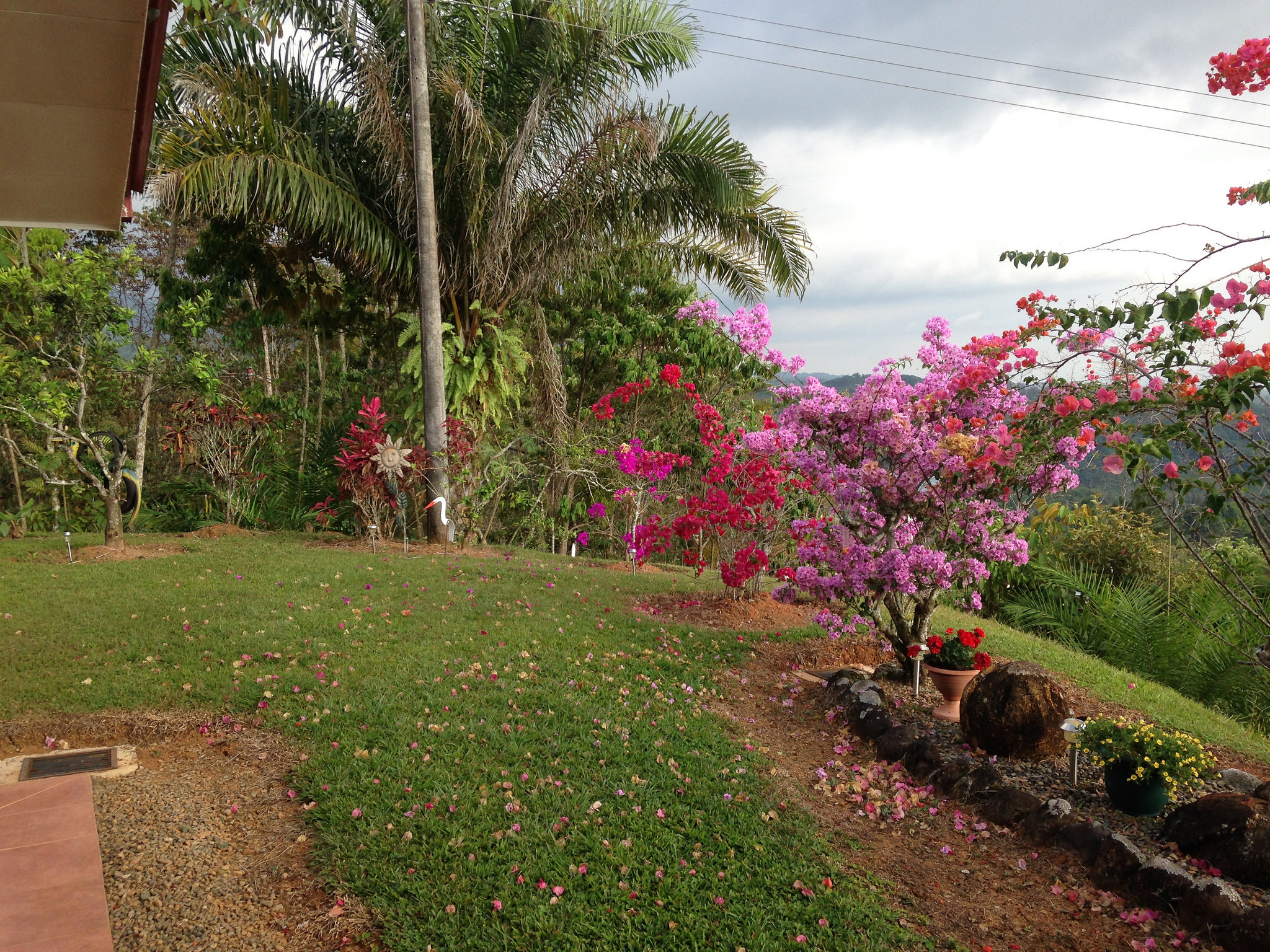 The property has spectacular 360 degree views of the mountains, valley and San Isidro city lights at night. The well-manicured lot boasts palm trees, flowering shrubs, orange, banana, lemon and mango trees.