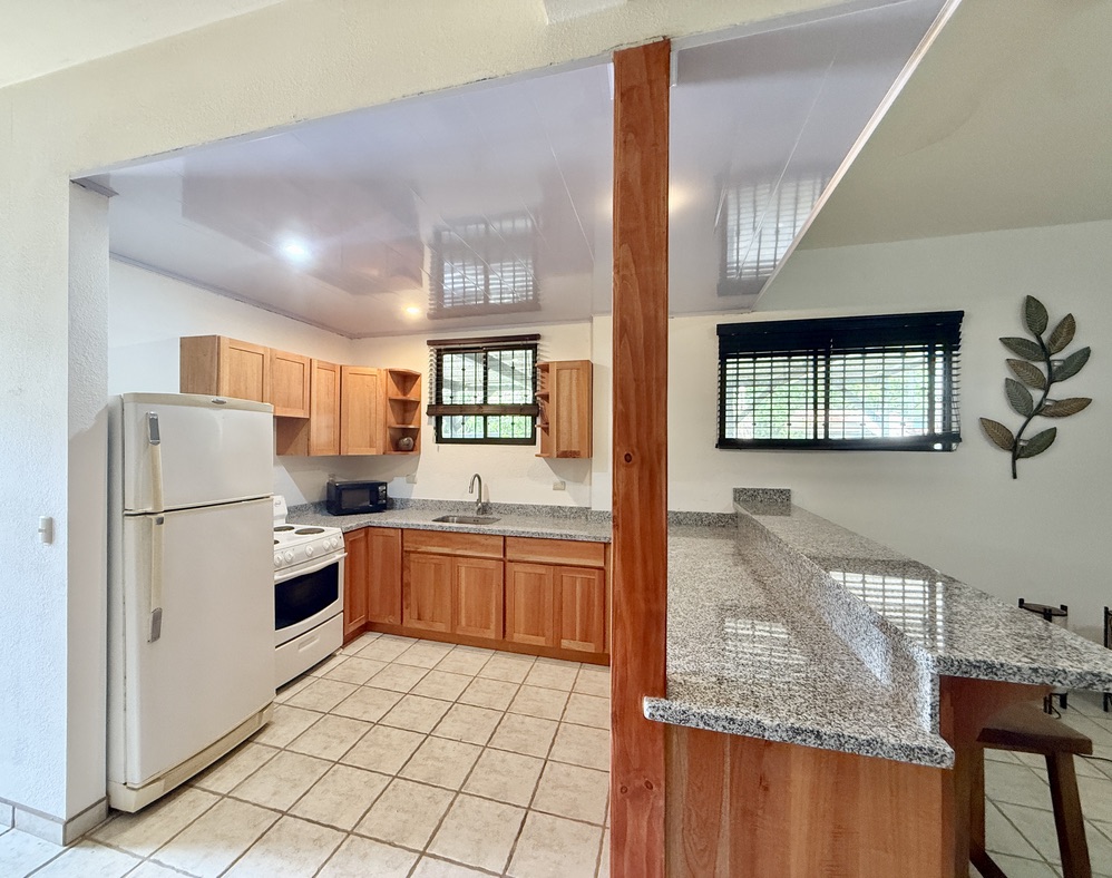 - Fully equipped kitchen with granite countertops