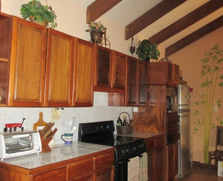 This creatively designed home is located in the popular community of Surfside Playa Potrero. There is a main house with 2 bedrooms, 2 baths with a separate casita with another bedroom and bath. It is a beautifully designed kitchen which is great for entertaining and, although there is an indoor dining and sitting area, you will find that most of your meals will be enjoyed on the patio by the pool, taking advantage of the year round tropical warmth. The pool is covered to make cleaning easy and there is an automatic timer which circulates through a waterfall and into the pool. This lovely home with a Laundry room, Air conditioning, Cable TV, Hi Speed Internet Telephone line, come Fully furnished. This is the perfect property for those looking to live in a tropical garden by the beach.