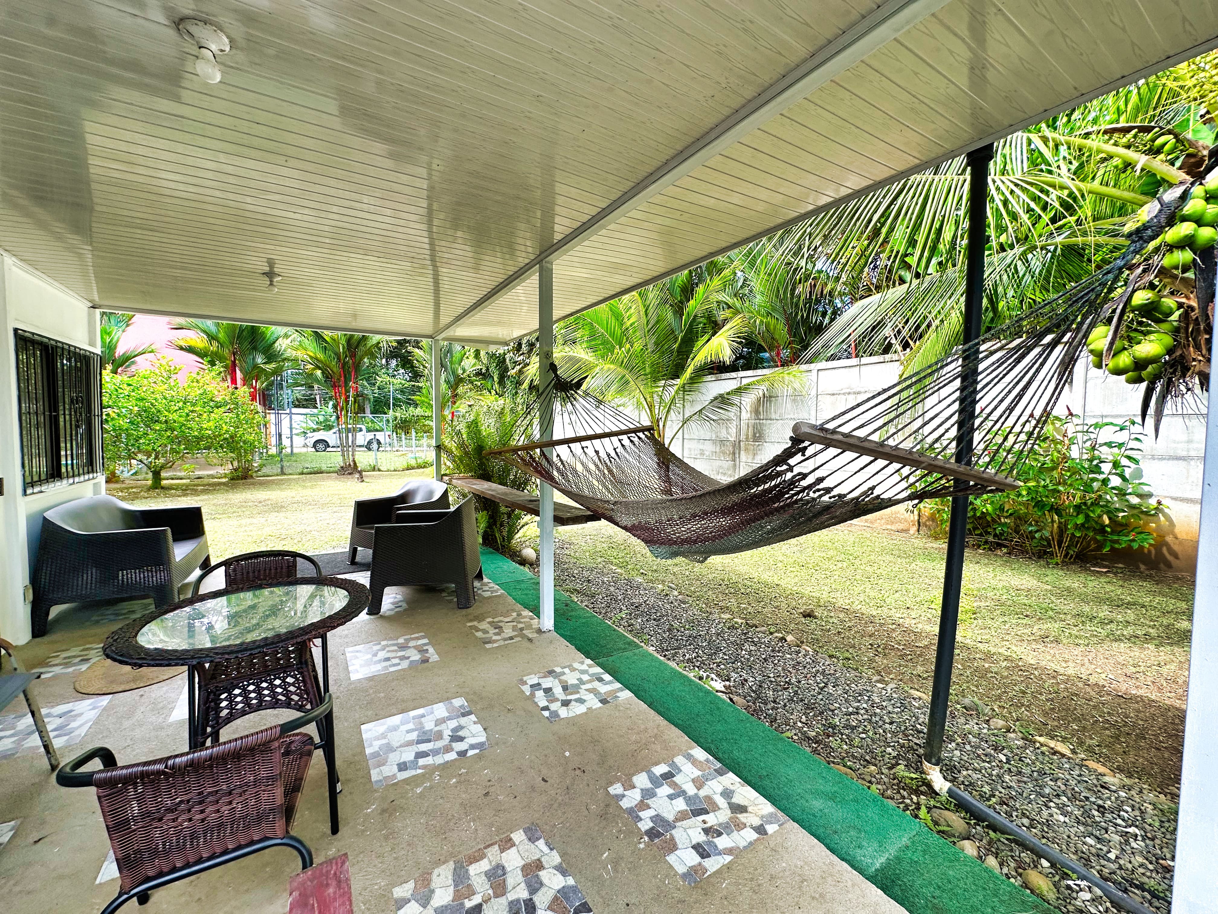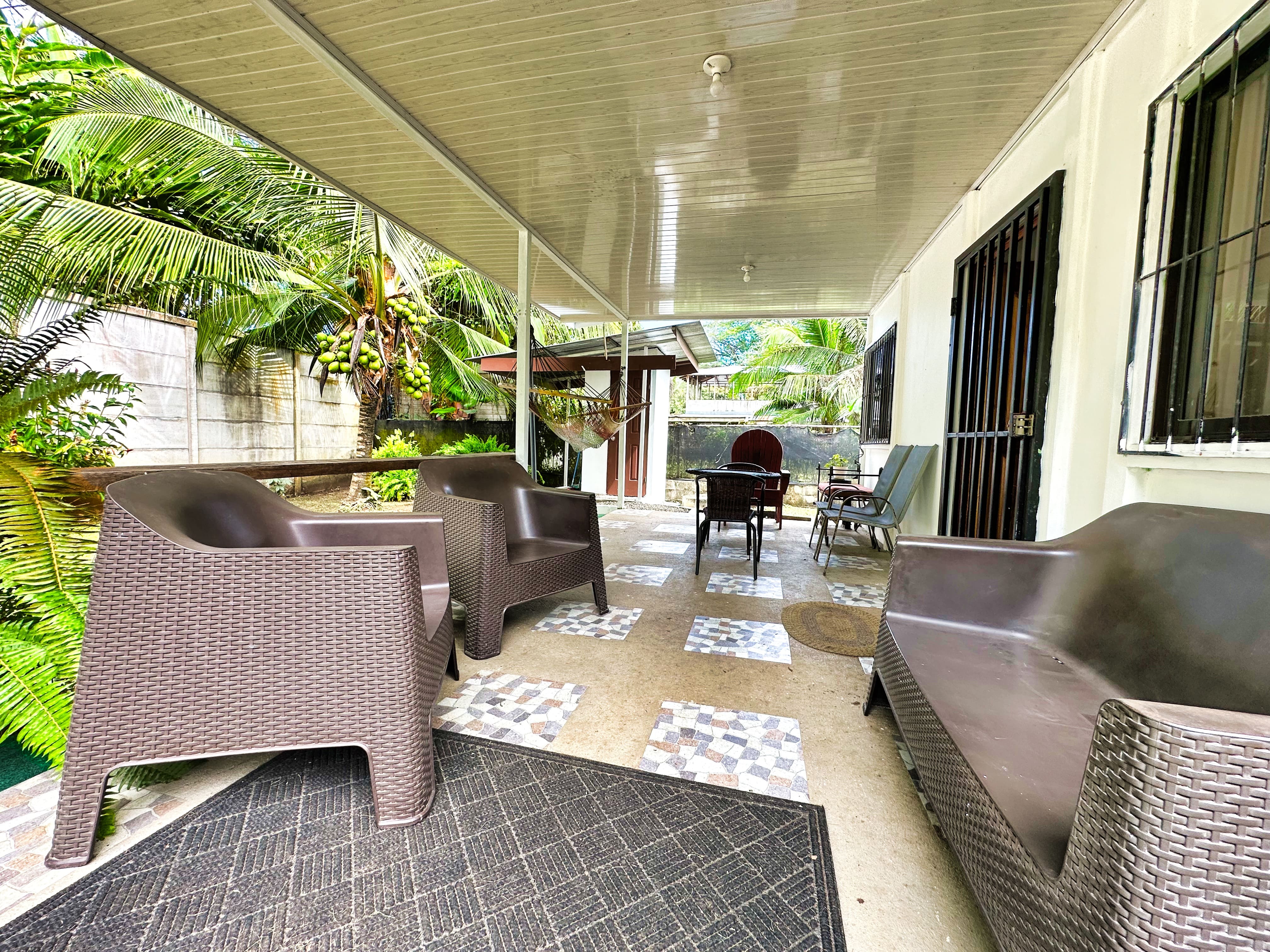The 515 sqm (approximately 5,542 sqft) lot provides generous outdoor space, highlighted by a spacious deck perfect for lounging, entertaining, or enjoying morning coffee surrounded by lush tropical greenery. Relax in the included hammock, listening to the distant waves and local wildlife.