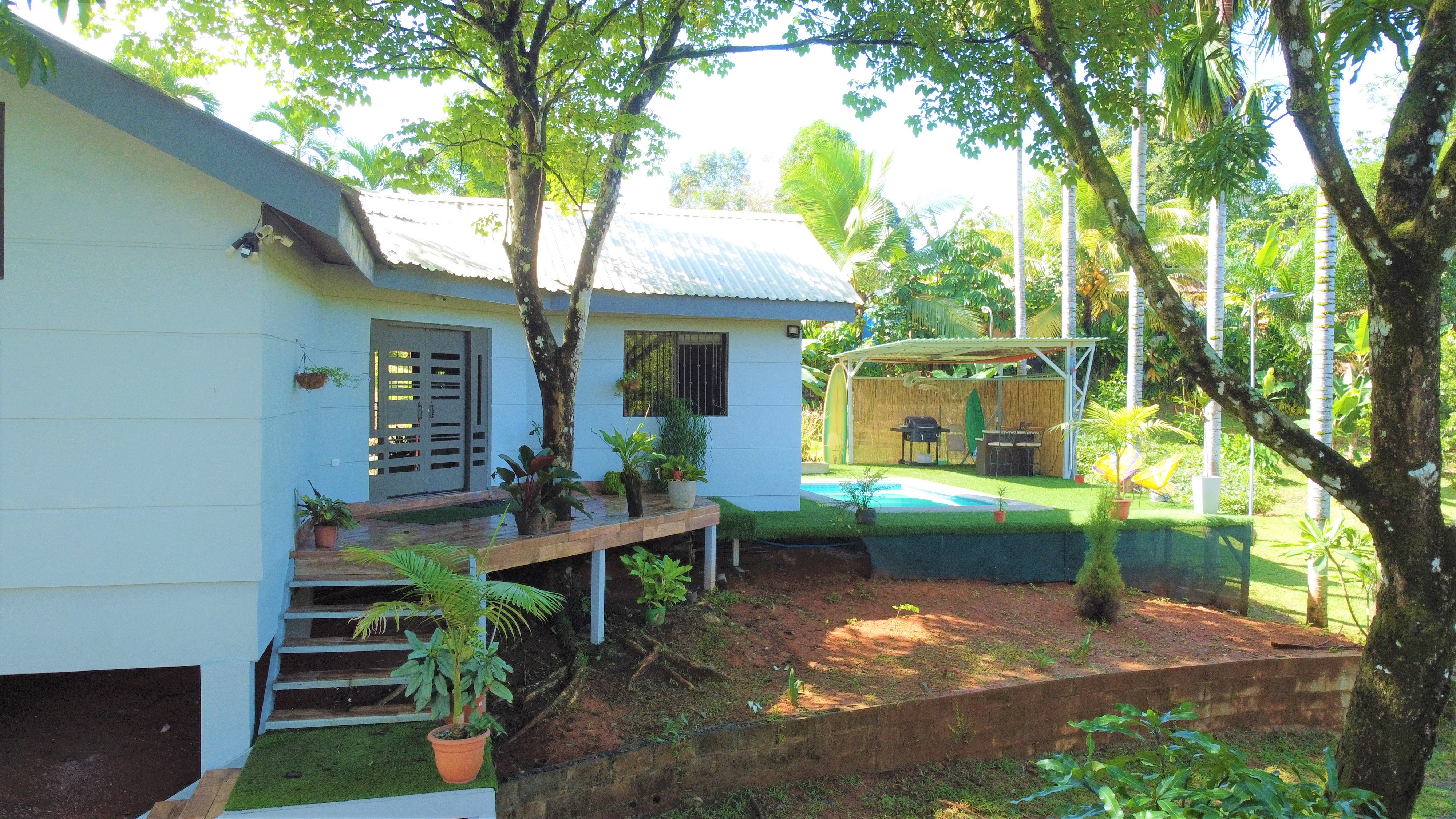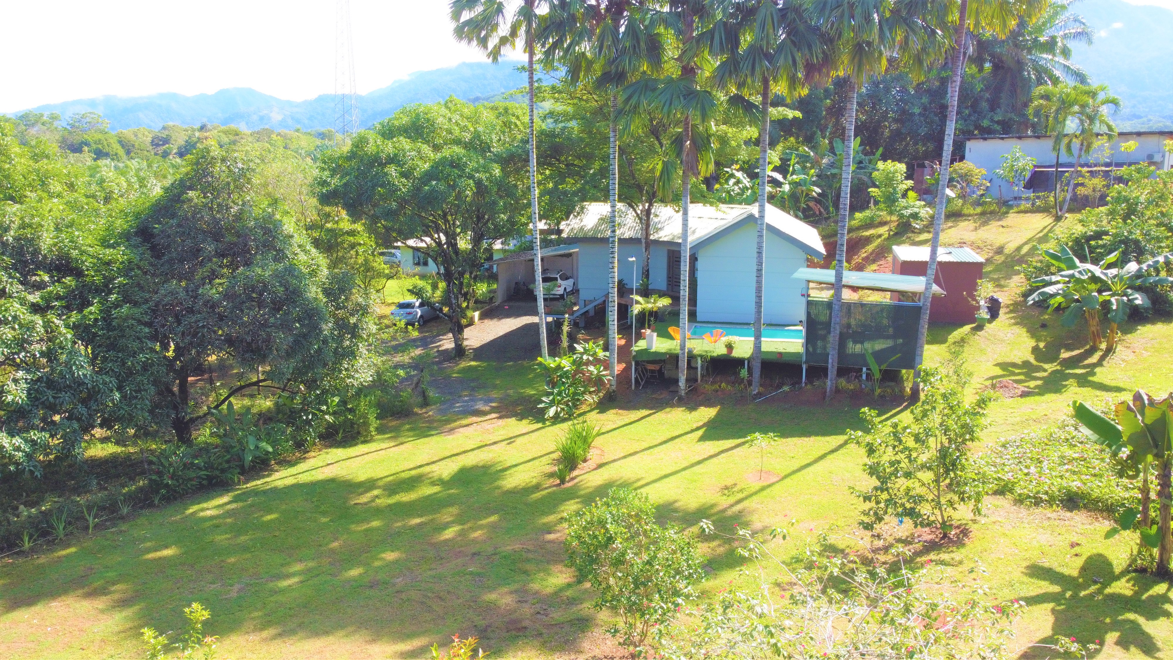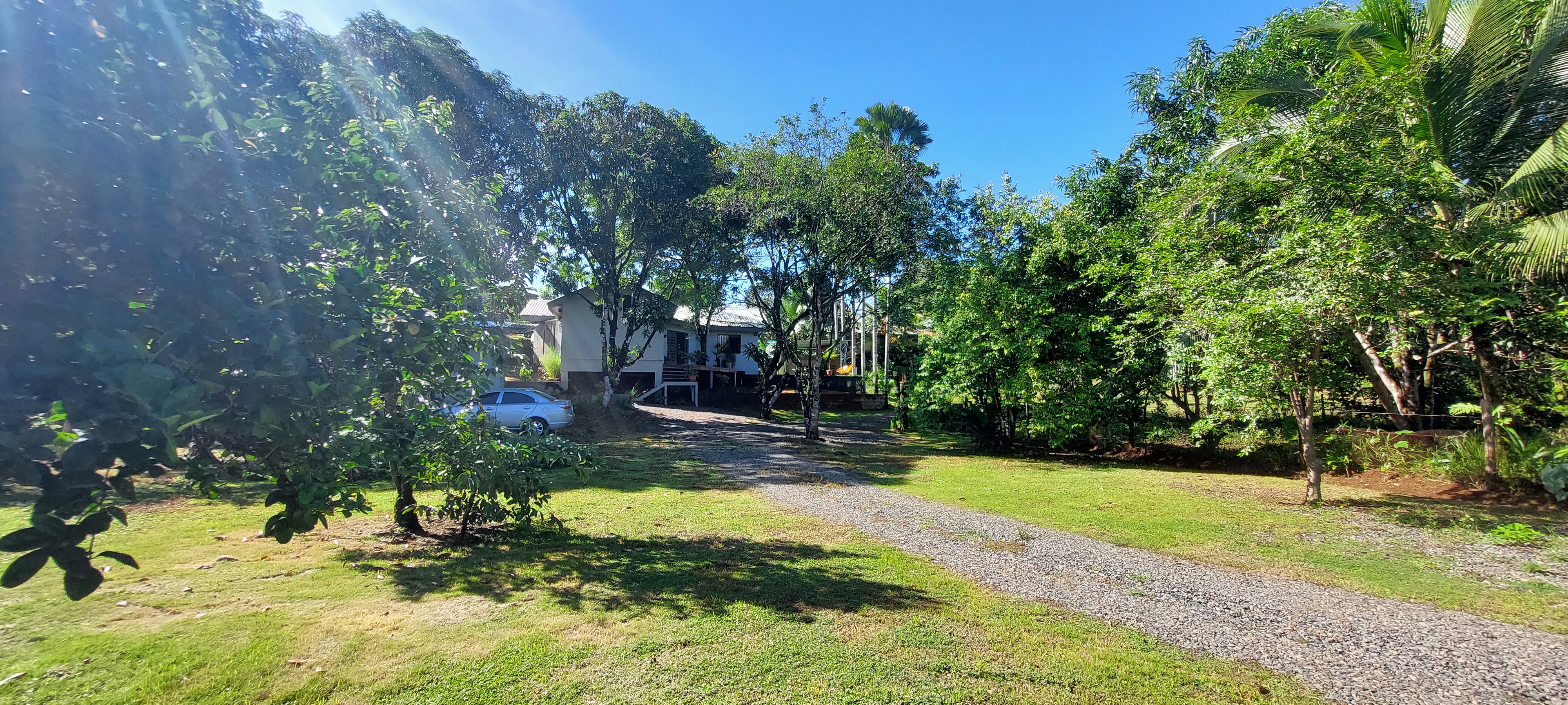 The gardens are filled with tropical flowers, palm trees and a full assortment of mature fruit trees producing a bounty of fresh and delicious limes, mandarins, oranges, soursop (guanabana), guava, water apples, lychee, mango, bananas, plantain, stair fruit and avocados along with yuca plants, herbs and much more.