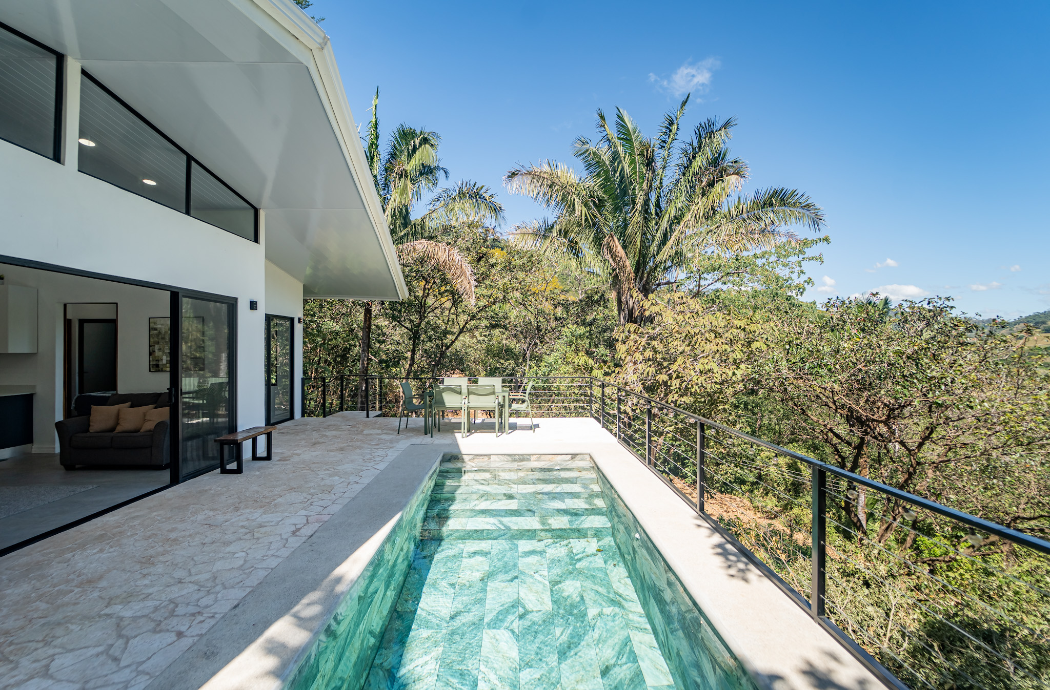 The outdoor living area is where this property truly shines. A saltwater pool overlooks the surrounding mountains, providing a refreshing place to cool off while enjoying the peaceful natural setting. With plenty of usable land, there is room to expand gardens, add outdoor entertaining areas, or simply enjoy the privacy and space that’s increasingly hard to find.
