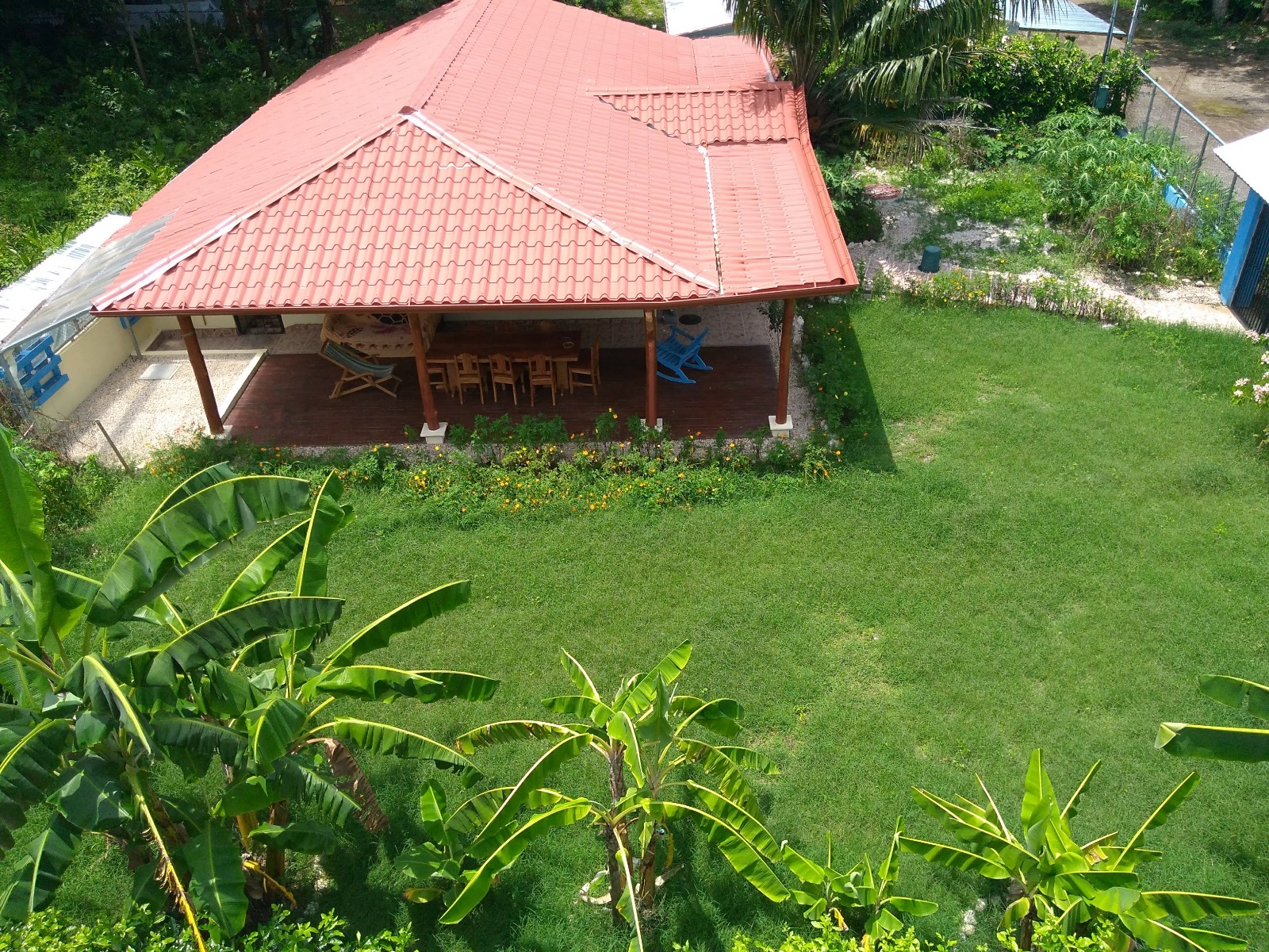 Inside, the layout is practical and bright, featuring an open living area and a well-equipped kitchen that flows easily through the home. The wraparound covered terrace extends the living space outdoors, creating an ideal setting for morning coffee, al fresco dining, or relaxing in the tropical breeze.