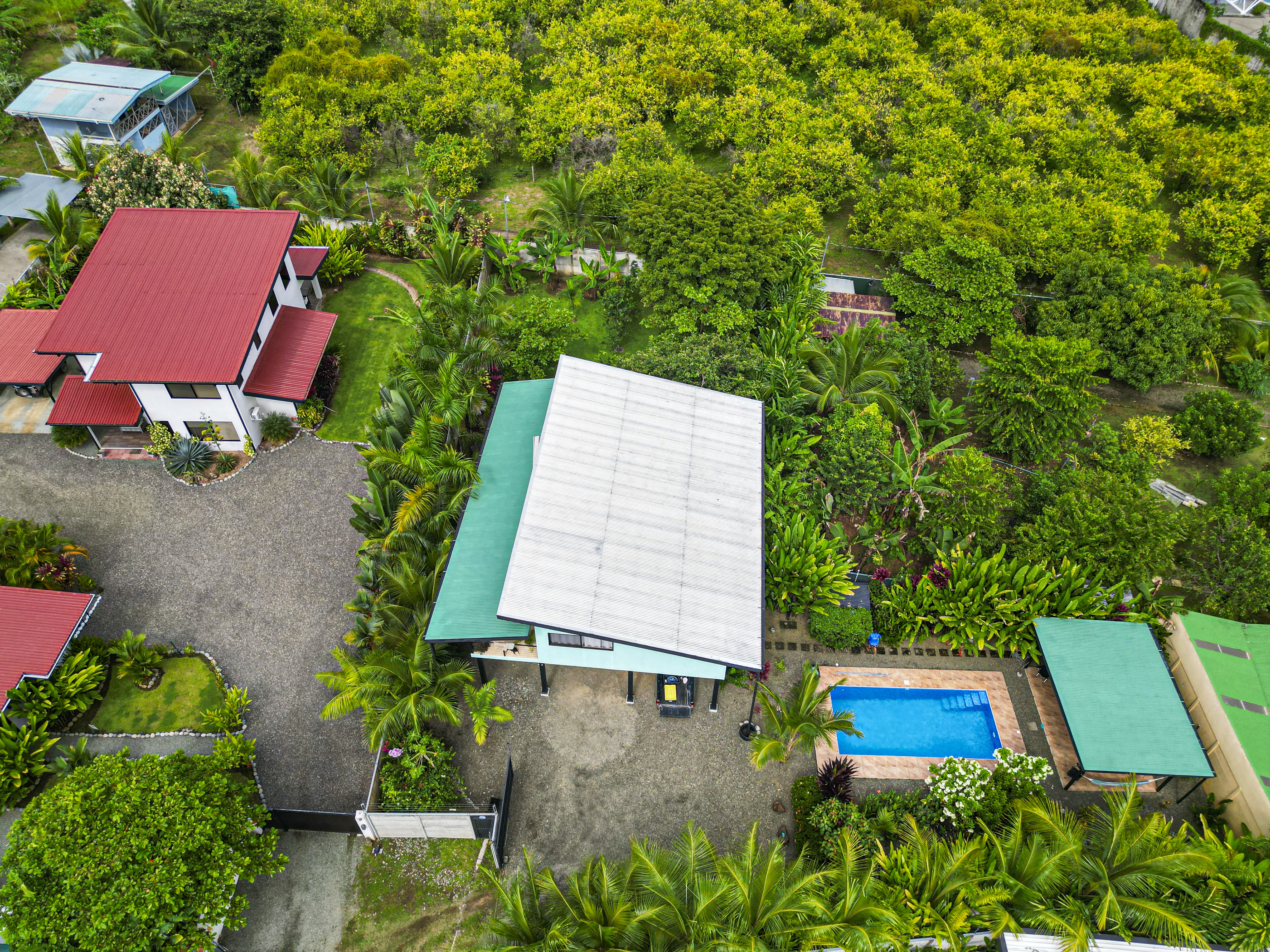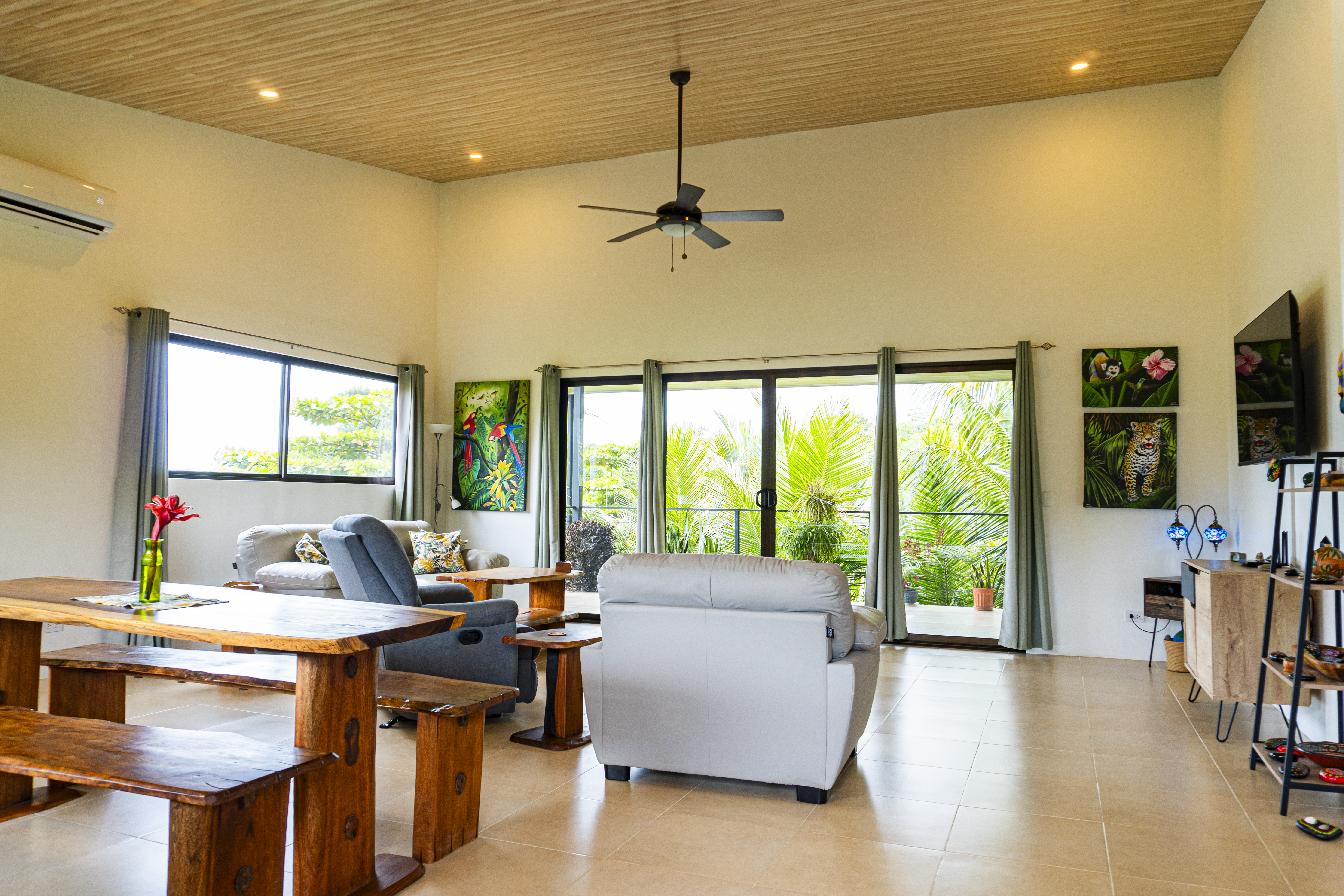 Start your mornings on the covered deck with a cup of coffee, listening to the relaxing sounds of distant howler monkeys, ocean waves, and tropical bird calls. A family of toucans often visits just outside the bedroom window, while beautiful Scarlet Macaws fly overhead daily, often stopping by the almond trees.