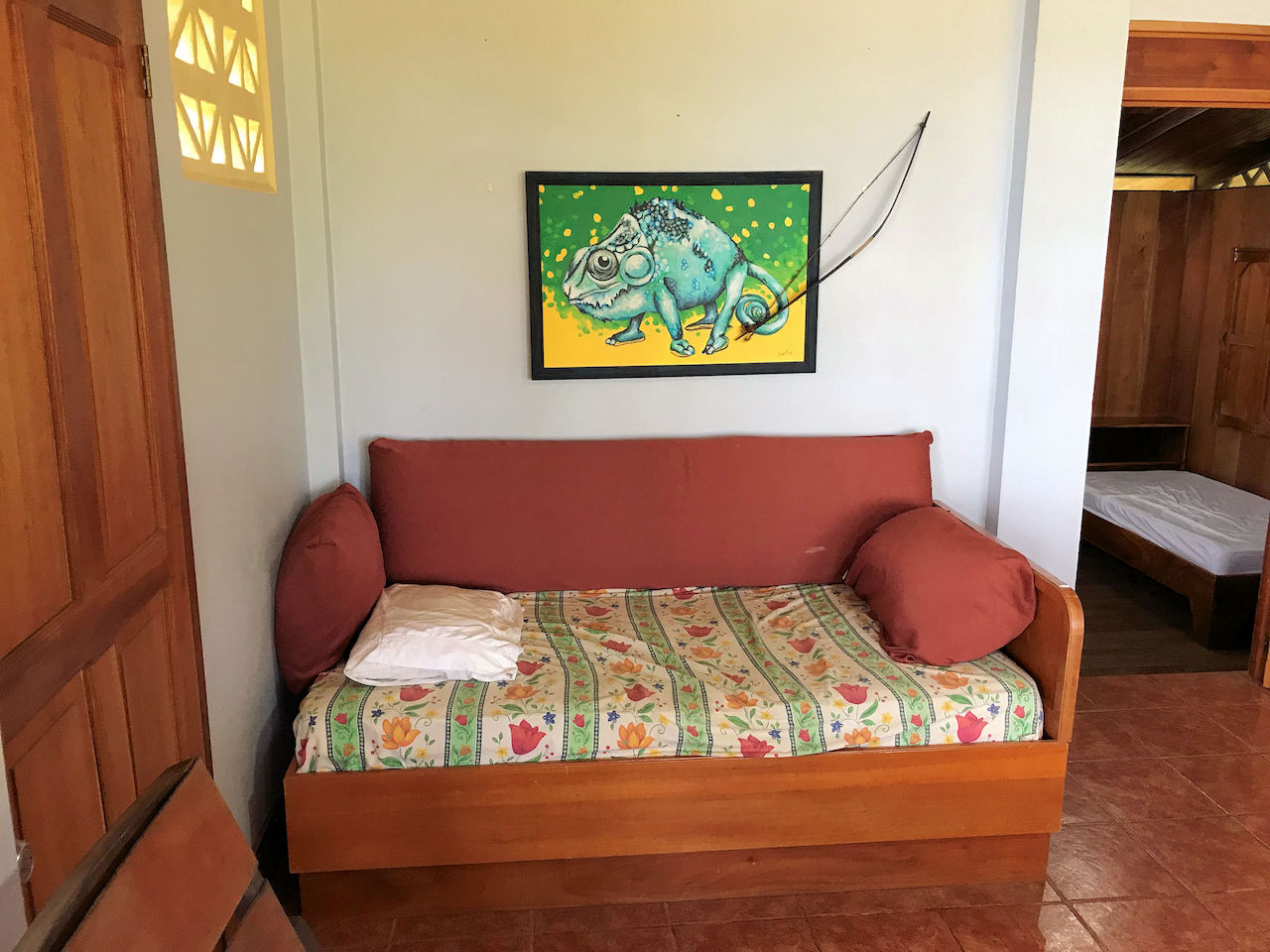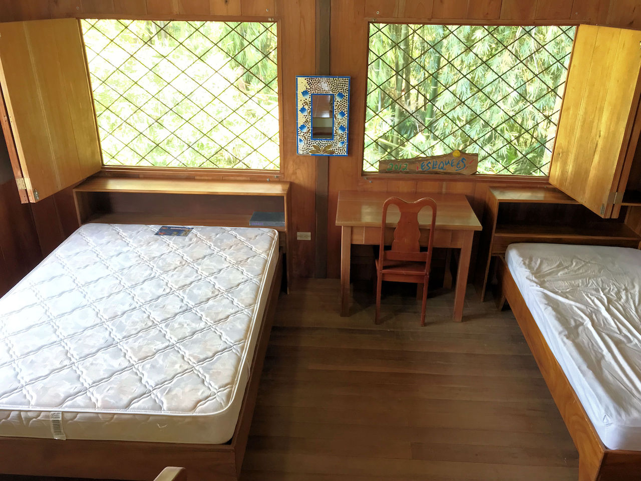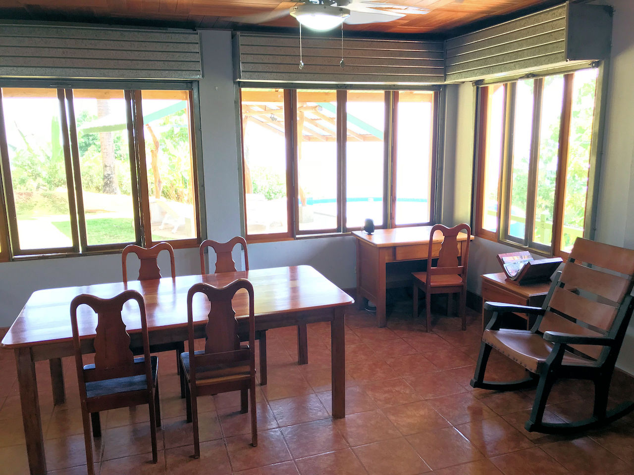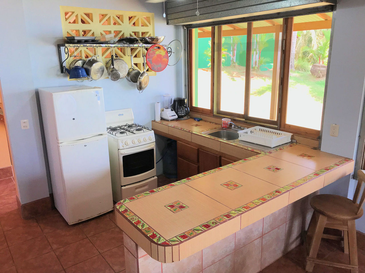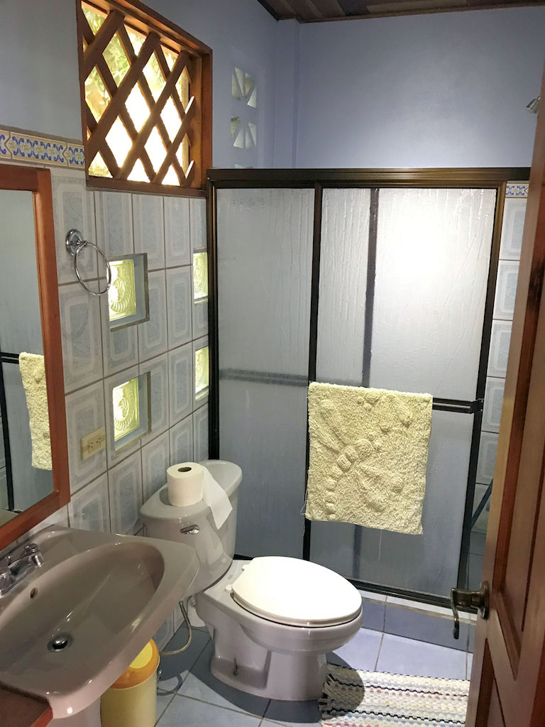 The house has a rustic feel with wooden shutters on the windows. The lower bedroom is large and opens to screened windows all around that look out onto the jungle and that allow for a constant cool ocean breezes. The downstairs is made up of the bedroom, bathroom, kitchen, living area and laundry. Upstairs is essentially an en suite master. There is a large area for the bedroom with an adjoining open air patio-like sitting area that looks out over the pool, beach, ocean and whales tail. The bathroom comes off of the patio area. This is truly in indoor/outdoor tropical lifestyle home.