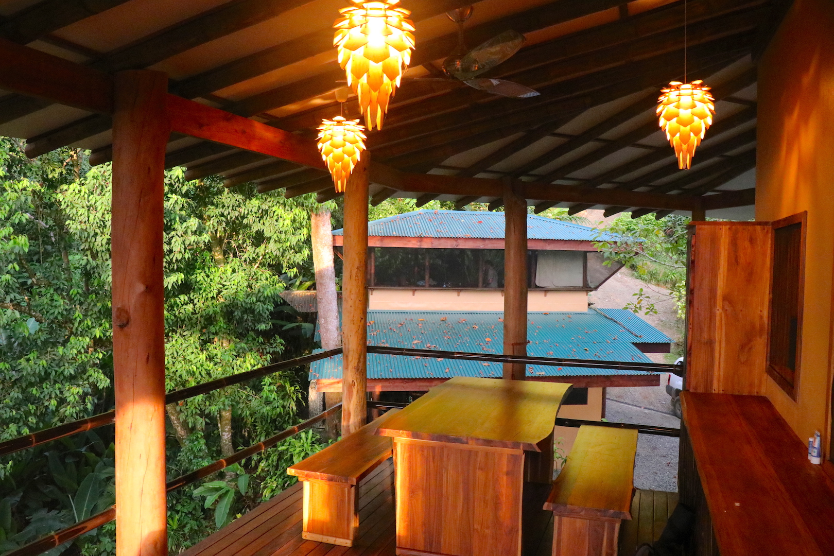 There are an abundant amount of fruit trees including 2 large mature breadfruits, mango, (sweet) starfruit, lime, banana & papaya trees plus 2-3 year old Durian, Jackfruit, mamone chino and avocado. There are several species mature bamboo, both ornamental and structural. There is an additional building area with lovely ocean views that would be an ideal spot for an additional suite or casita. There is also another building area tucked in the jungle that would allow for additional structures, cabins or guesthouse. Follow the established jungle trail to your right and it will you to the retreat center, which consists of an infinity pool, communal kitchen/living room and yoga deck. Follow the trail to the left and you arrive at a year-round stream and natural jacuzzi, tucked into the lush jungle.