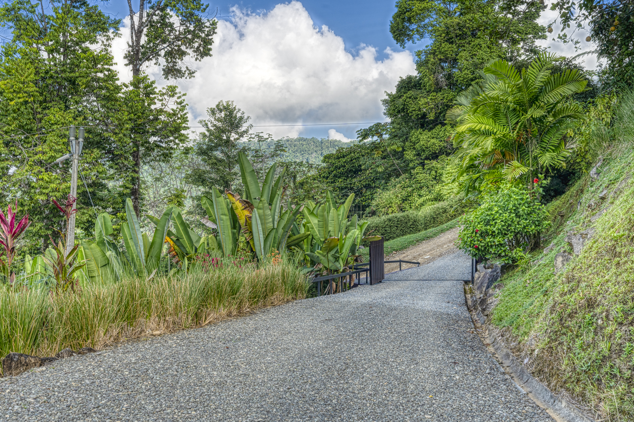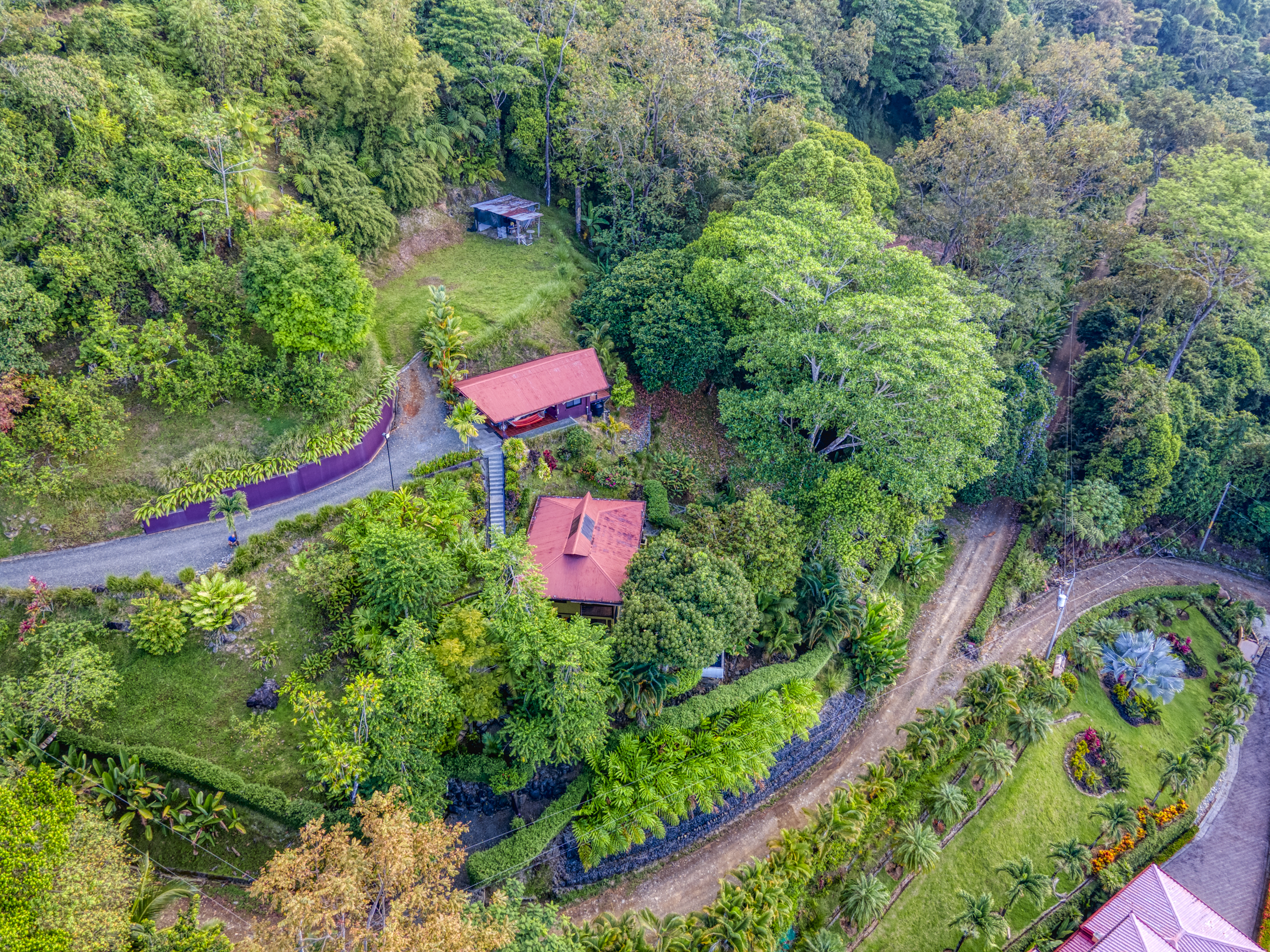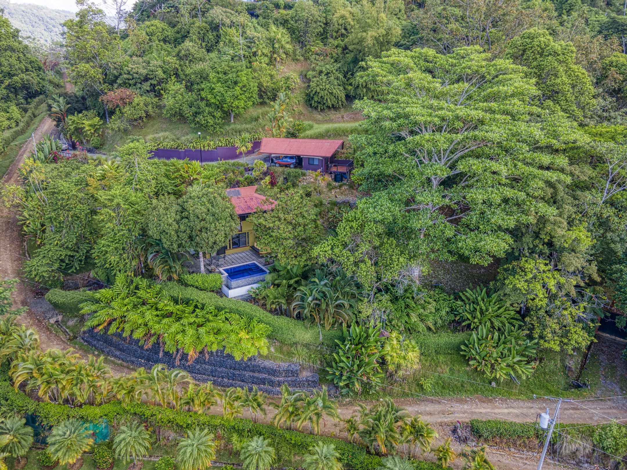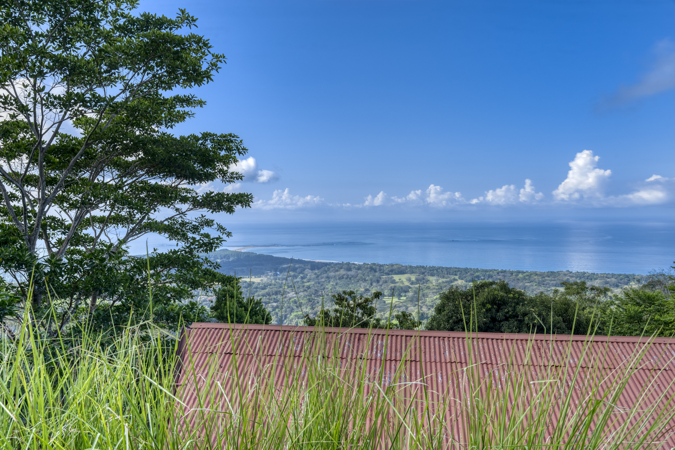 The Building site has great white water views of Whales Tail, Hermosa Beach, and river views. The rest of the property is fully hedged, landscaped, and rainwater management in place. Fruit trees are planted throughout the property. Also, the property has plantains, bananas, mandarins, Meyers lemons, mango, star fruit, and pineapple.