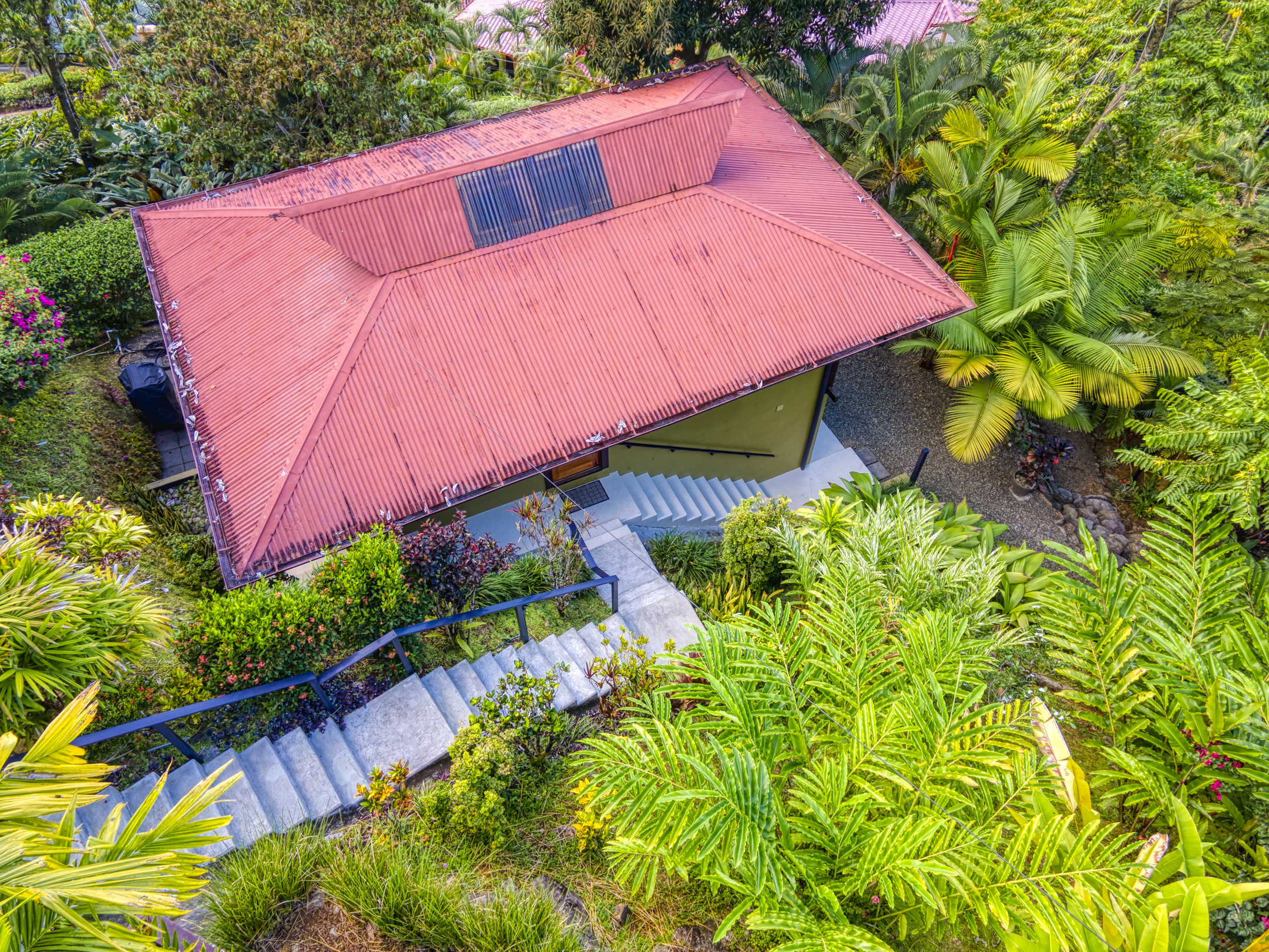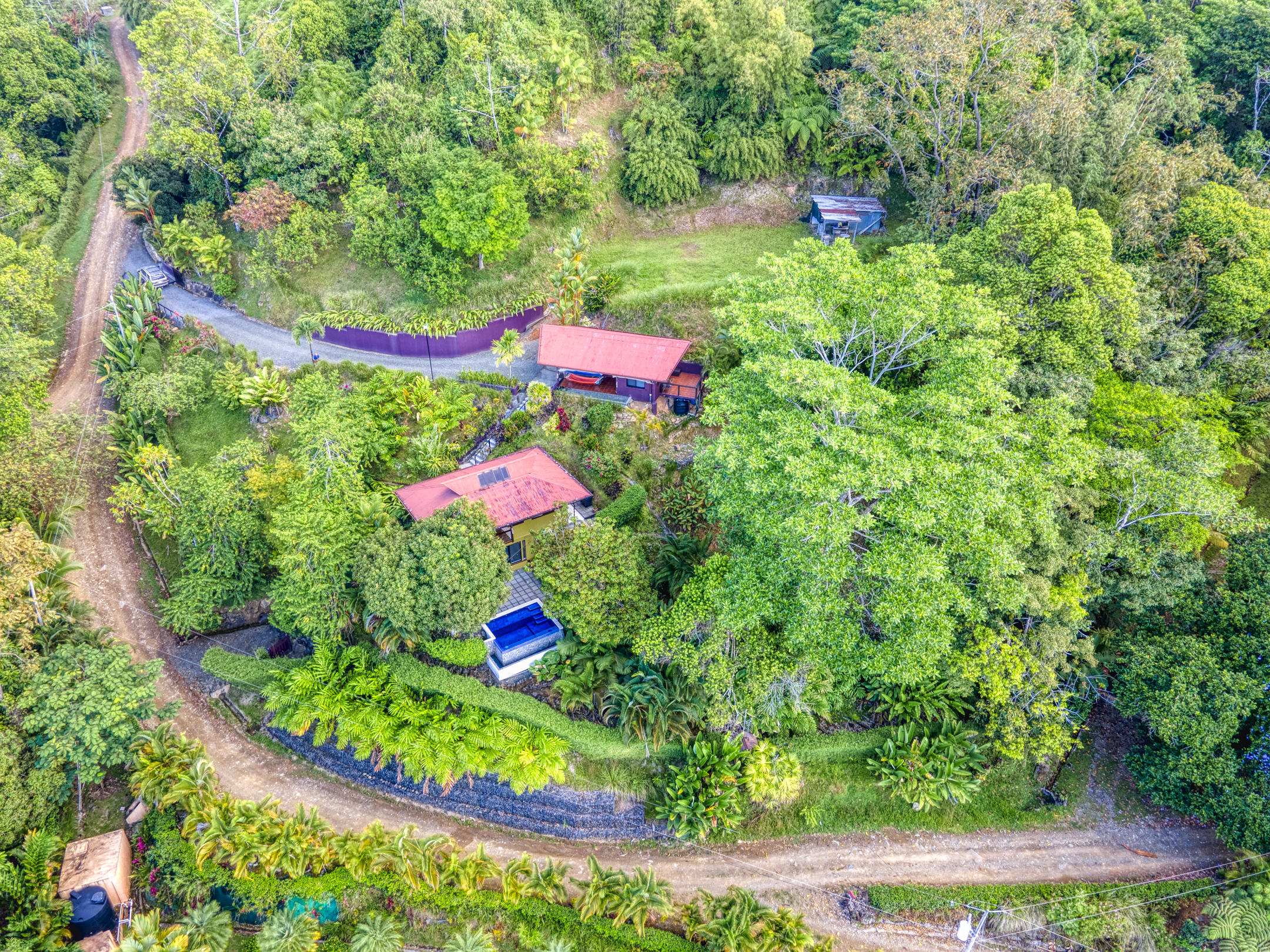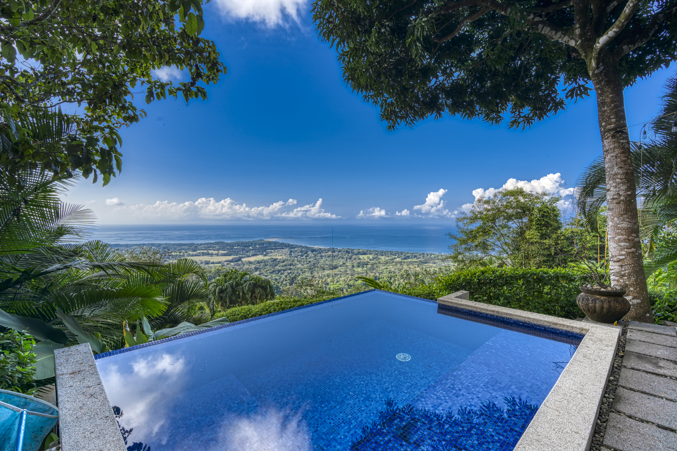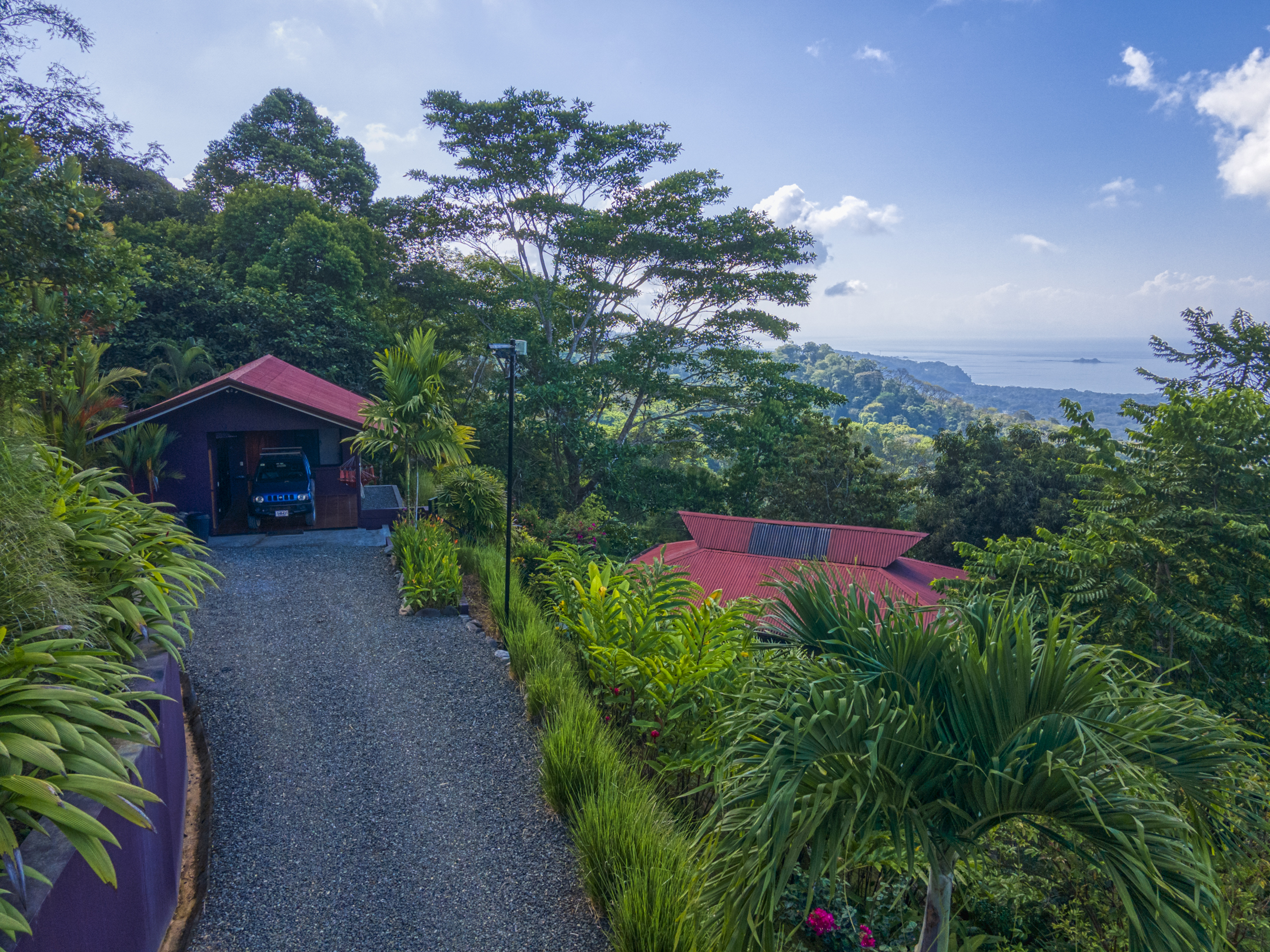 The Building site has great white water views of Whales Tail, Hermosa Beach, and river views. The rest of the property is fully hedged, landscaped, and rainwater management in place. Fruit trees are planted throughout the property. Also, the property has plantains, bananas, mandarins, Meyers lemons, mango, star fruit, and pineapple.