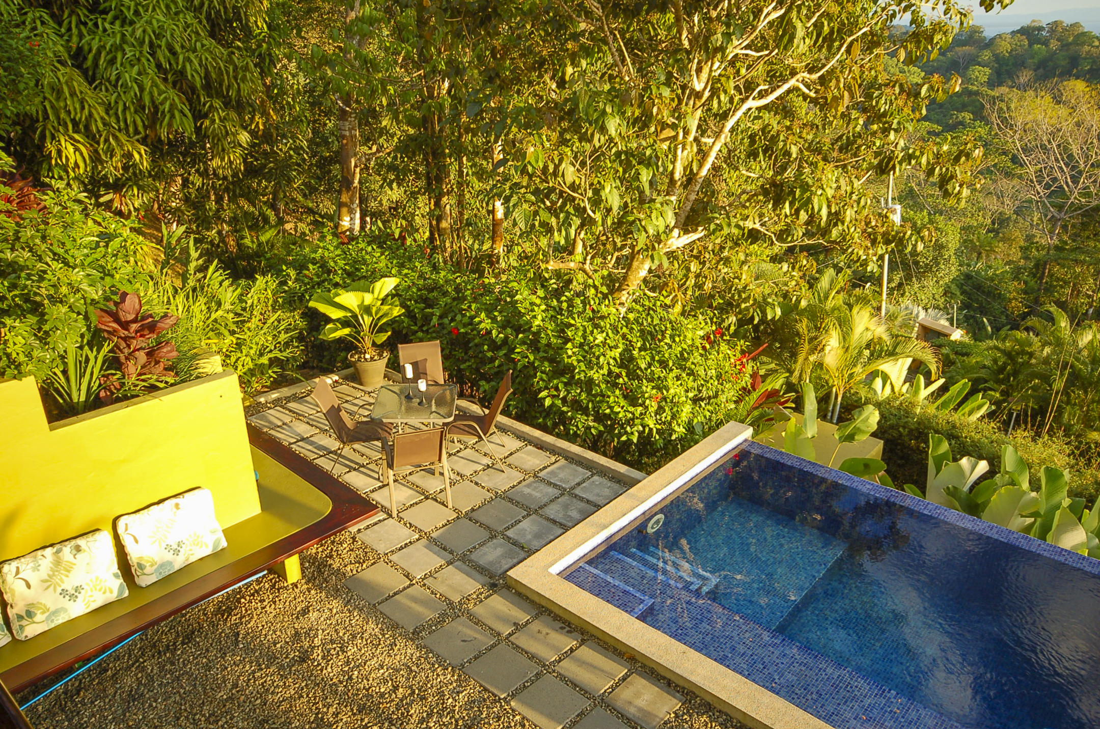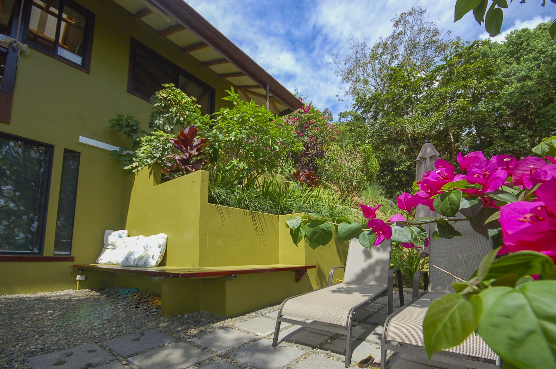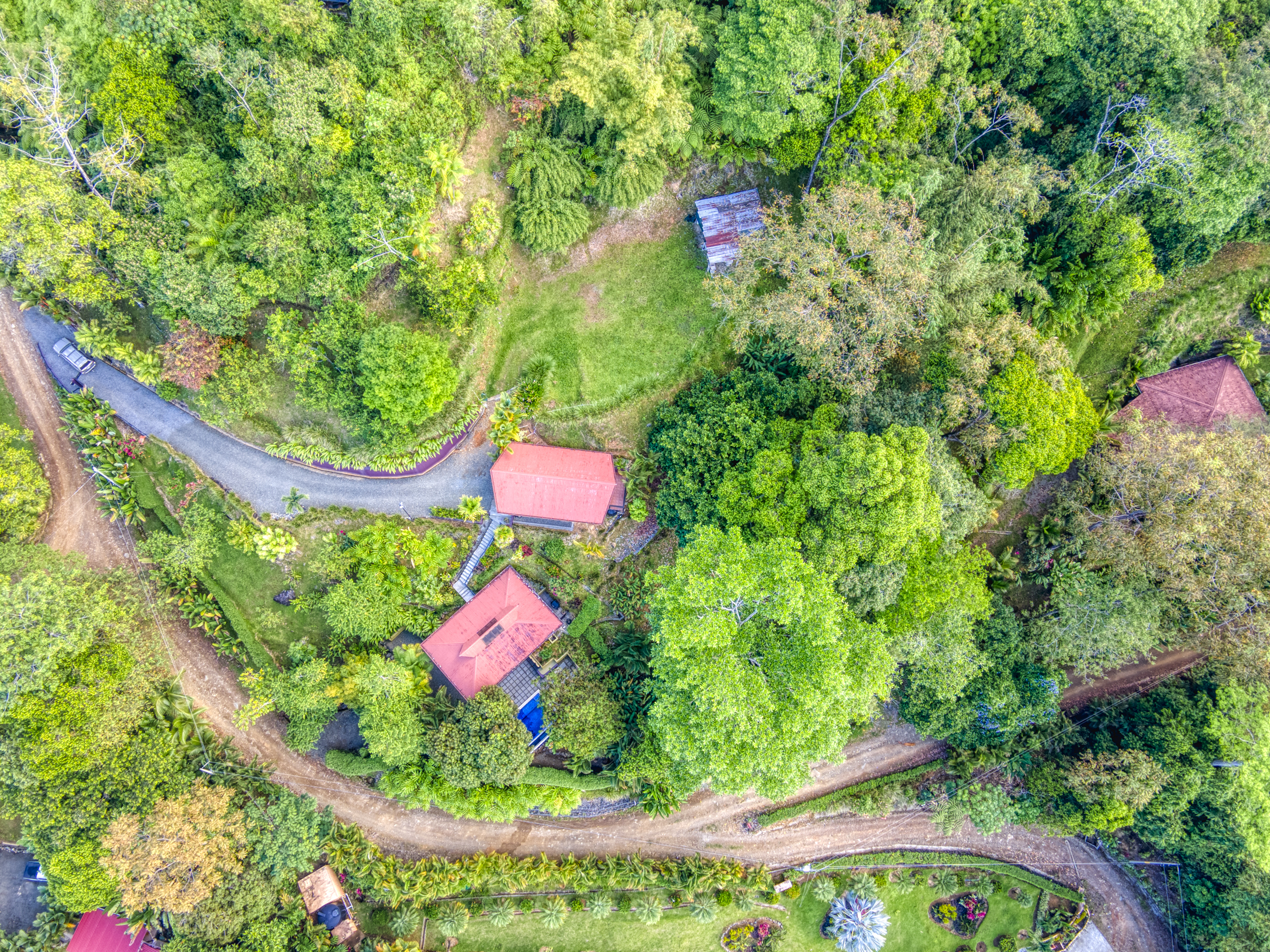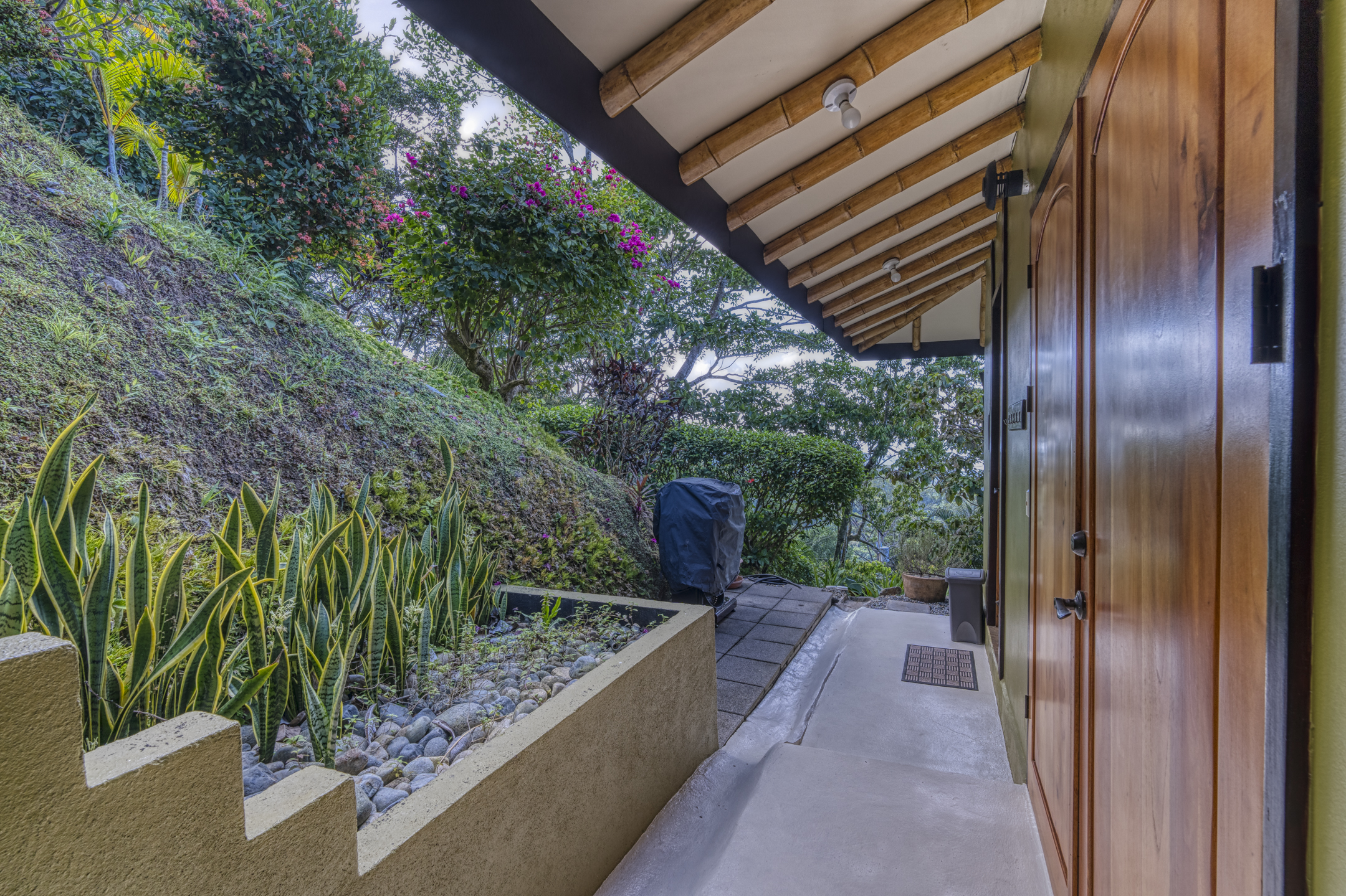 The Building site has great white water views of Whales Tail, Hermosa Beach, and river views. The rest of the property is fully hedged, landscaped, and rainwater management in place. Fruit trees are planted throughout the property. Also, the property has plantains, bananas, mandarins, Meyers lemons, mango, star fruit, and pineapple.