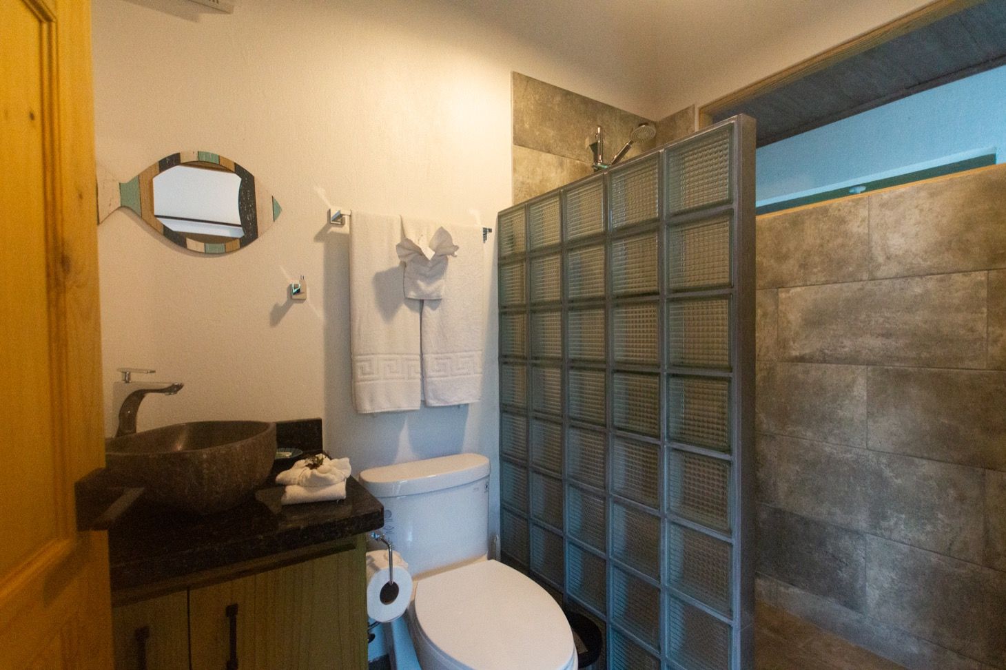 The master bedroom is well-sized for comfort and equipped with a lovely bathroom. But it’s the stand out coastal views that you can see from bed that make this home a star! Anyone would feel blessed to wake up to these epic views with the green jungle being framed by a bright bright blue sky and azure ocean.