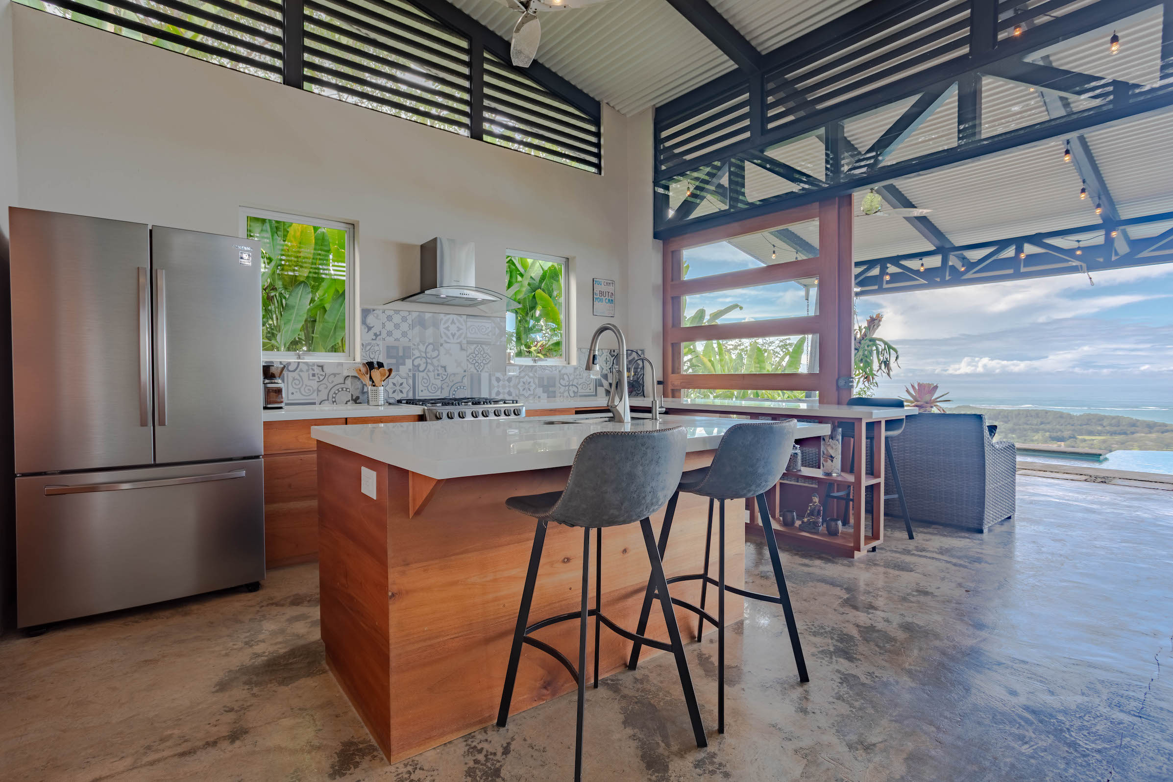 This private 2 bedroom, 2.5 bath home supports an incredible versatility in lifestyle. Great for enjoying a tranquil retirement lifestyle or investment for its breathtaking sunset views. An absolute gem for a true work/life balance with a gorgeous office nook overlooking the Pacific Ocean. Ideal and for elegant entertaining with an open indoor/outdoor kitchen, dining, and living room space that brings the outdoors in. Or be completely supported in a renewed healthy lifestyle with custom yoga pavilion, endless walking trails, and rare outdoor fire pit sitting area by the custom infinity pool. Almost an acre of all usable land, should one want to expand the current footprint, build a casita or continue to garden on the already present fruit trees there's plenty of room to add your own touches.