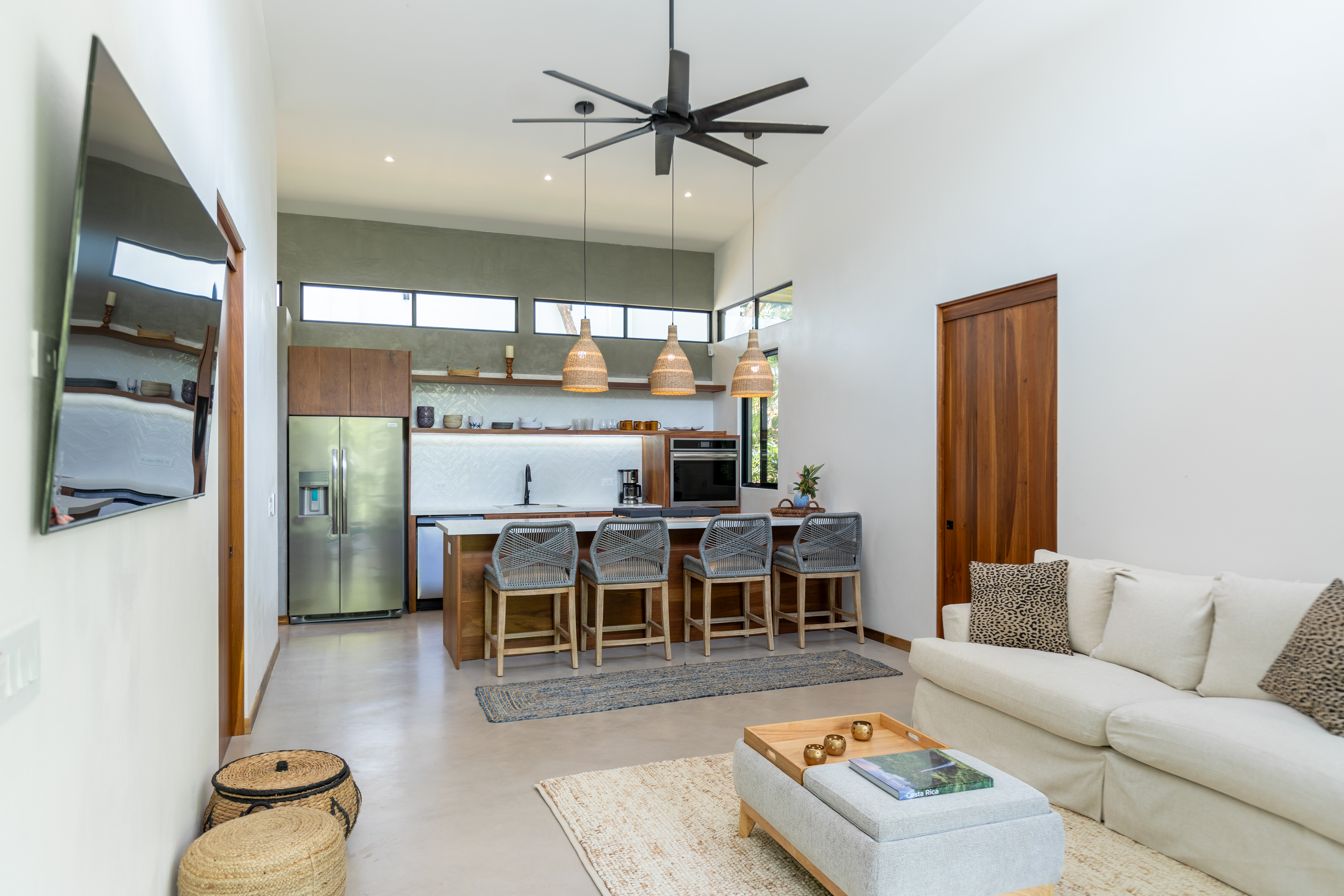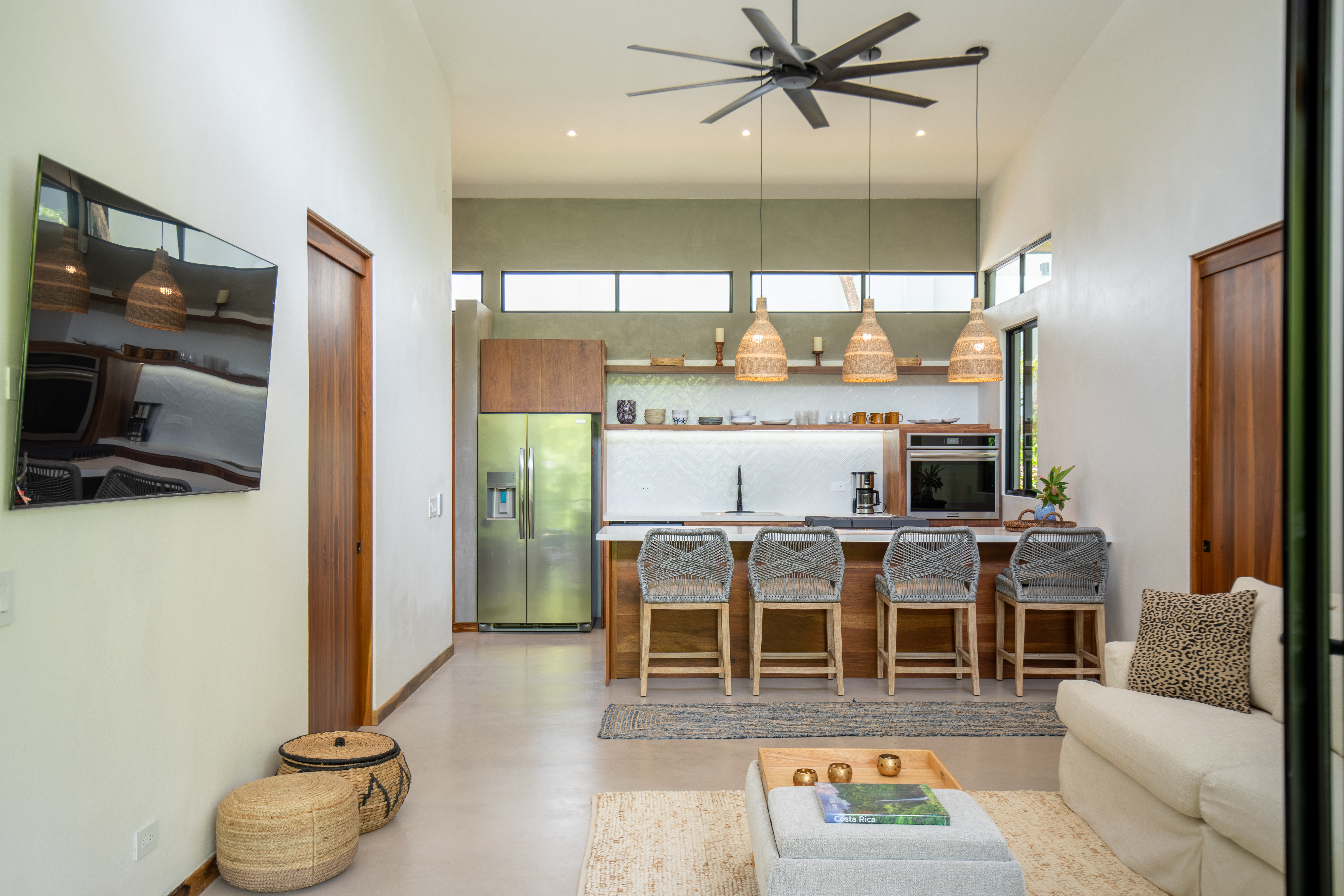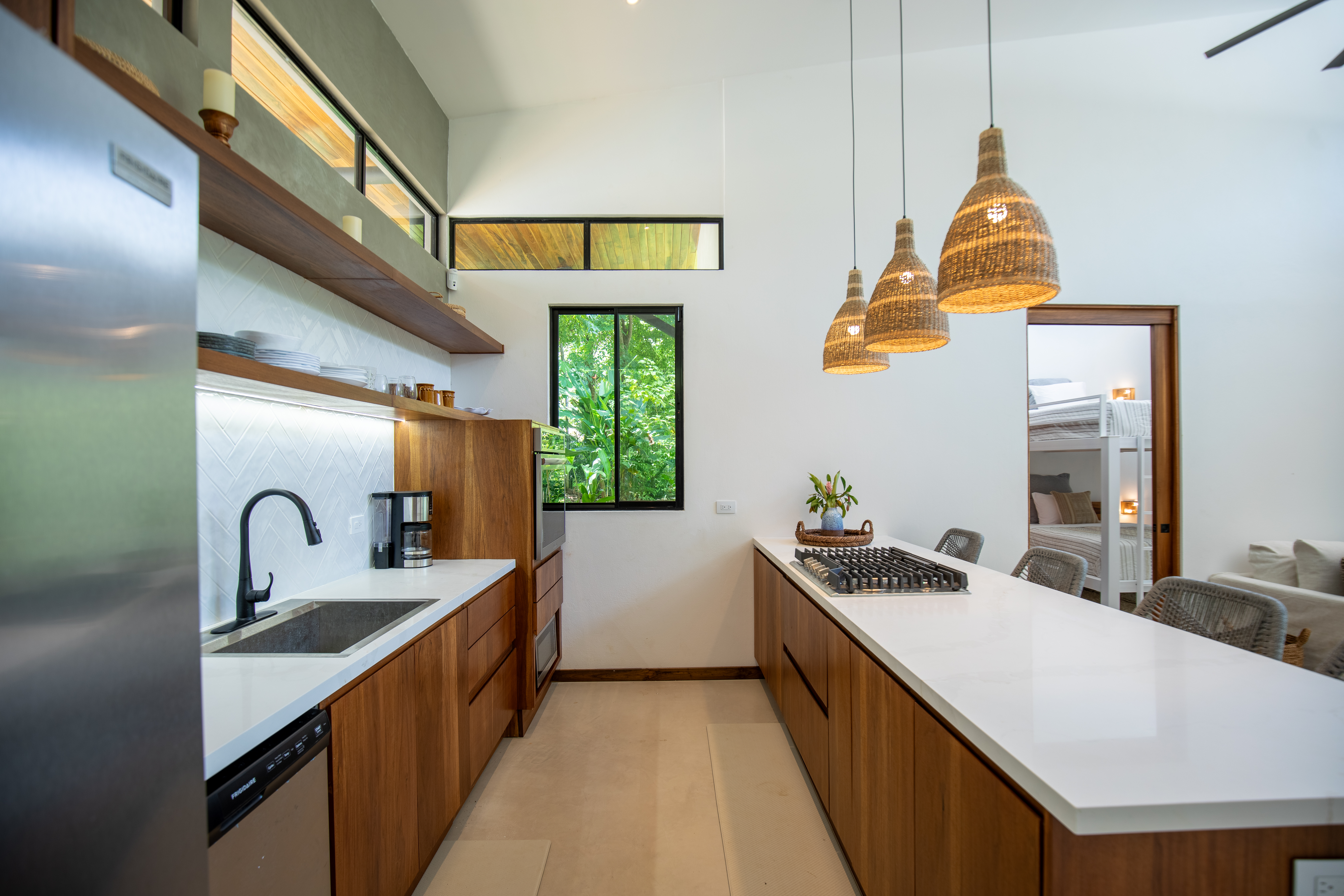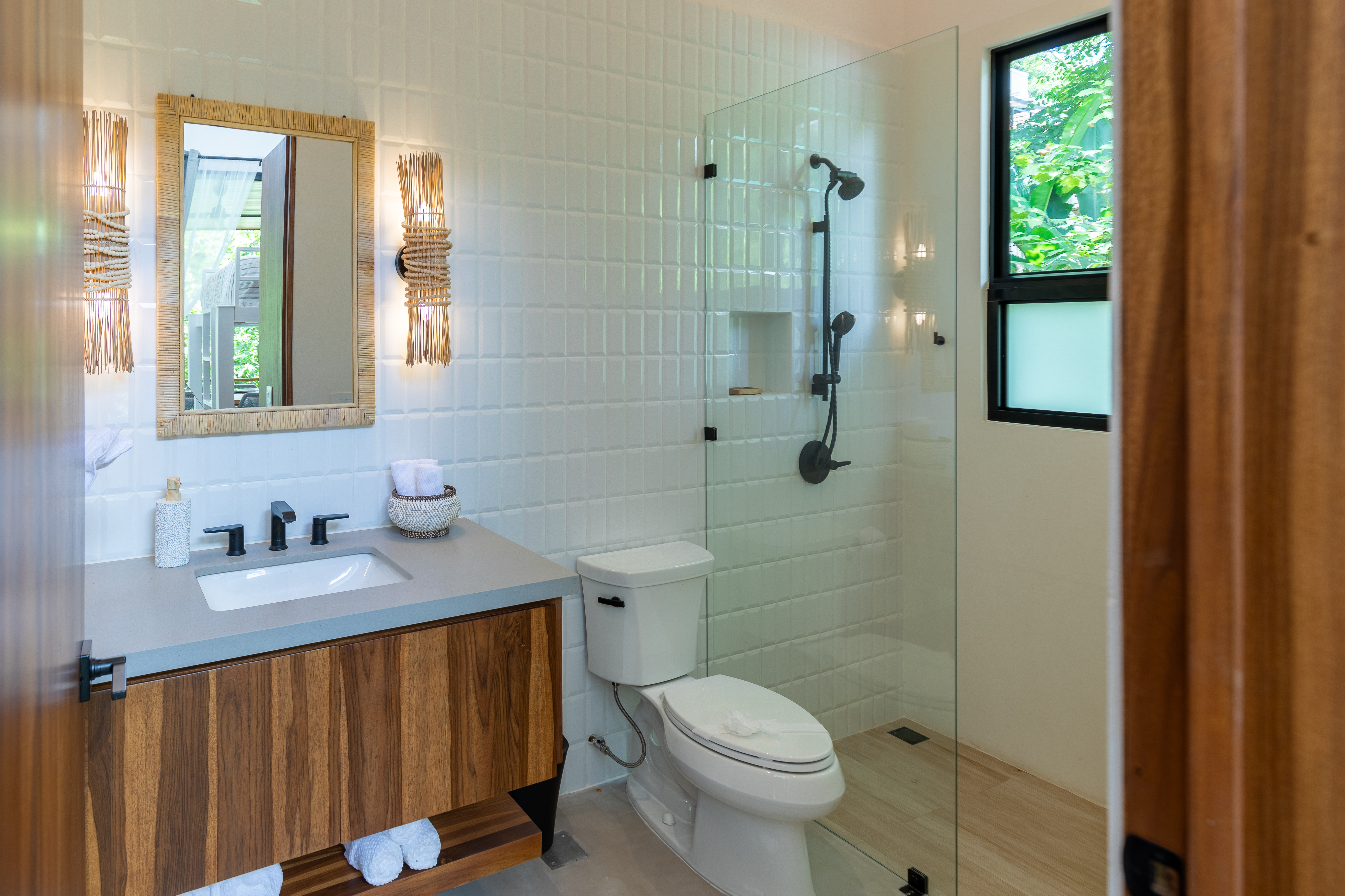 Each of the two spacious bedrooms includes an ensuite bathroom, ensuring privacy and comfort for every guest. With plush bedding, luxury Kohler bathrooms, and high-quality linens, you'll enjoy a restful retreat. Whether you're gathering in the open living space or enjoying the fresh air on the large covered terrace, this villa offers ample space to unwind and connect.