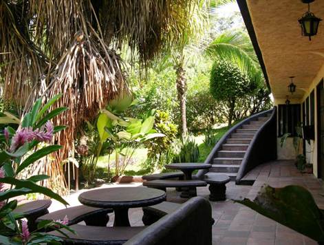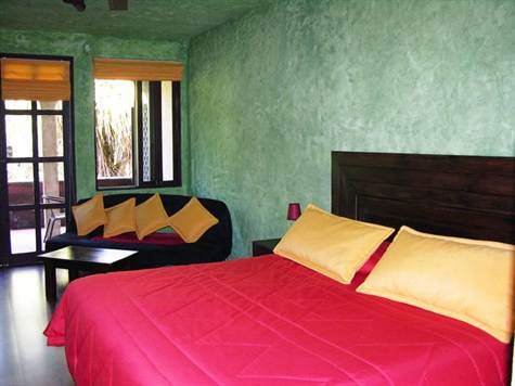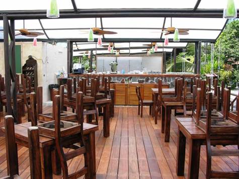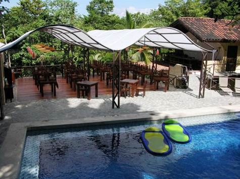 The Hotel Mimos is centrally located along the main road to Manuel Antonio, just minutes drive from both the beach/national park and the amenities of Quepos. Beautifully constructed with Spanish colonial and indigenous themes, the hotel was built to maximize rental versatility. It in fact consists of two properties-- the main hotel and a luxury vacation rental home, which can be integrated or separated depending on necessity. The main hotel is comprised of 12 rooms: 4 standard, 6 junior suites, and one apartment with 2 bedrooms, all of which have private baths. There is a fantastic, Italian restaurant on the premeses, located adjacent to the pool, with a capacity to seat up to 80 people. In addition, the hotel offers cable TV, air conditioning and ceiling fans, private parking, a jacuzzi, central gas, a 10,000 liter reserve water tank, garden area, 24 hour security and tour booking service.