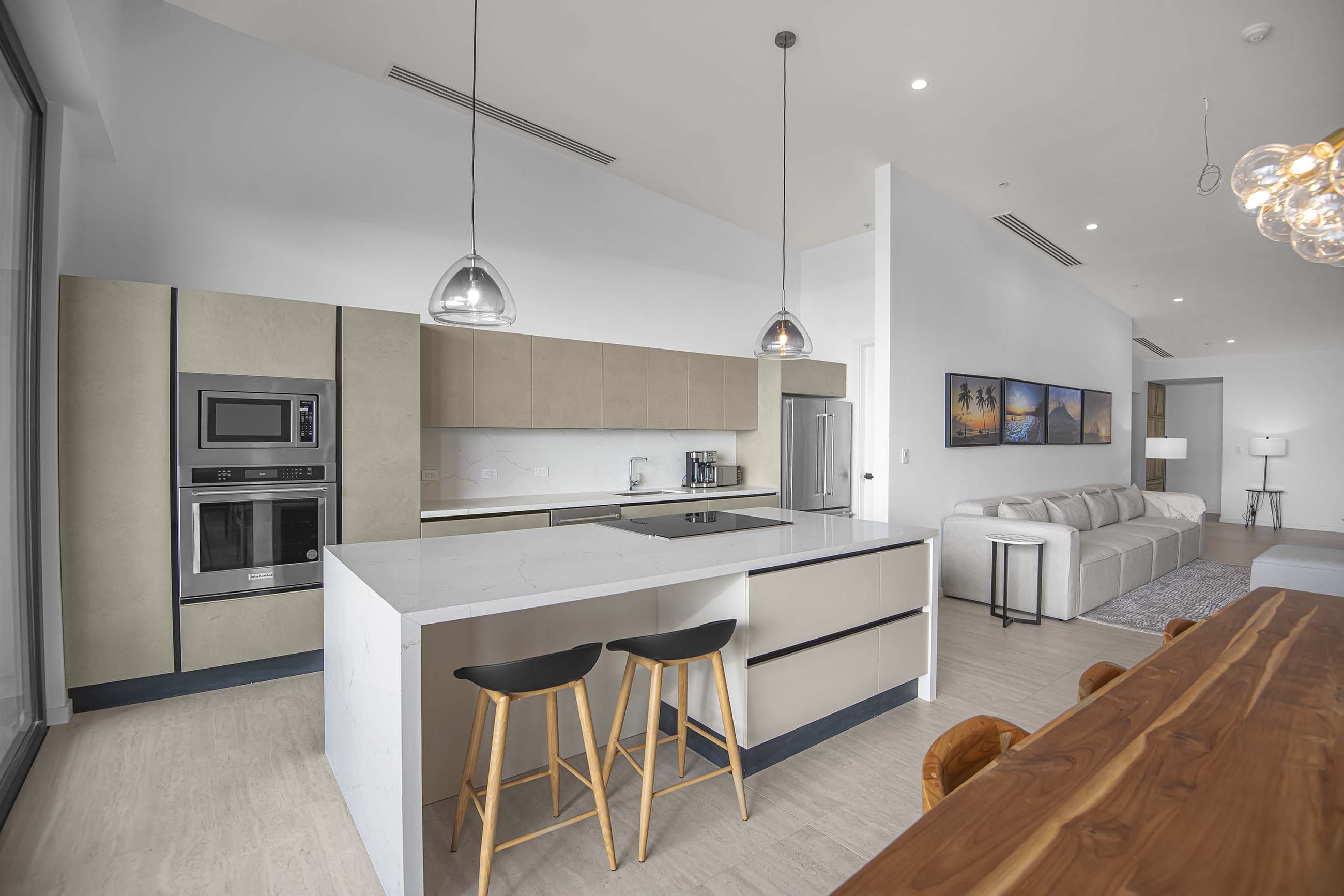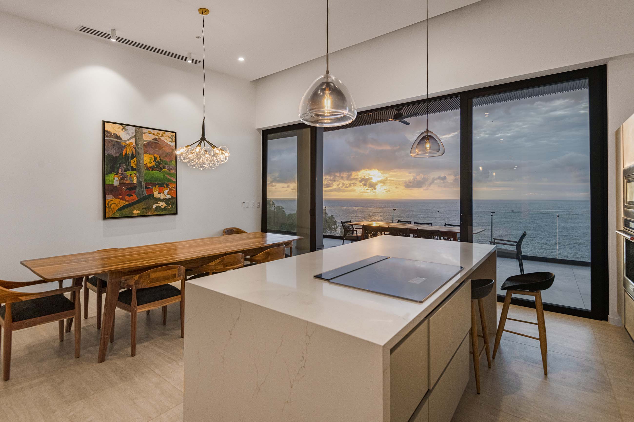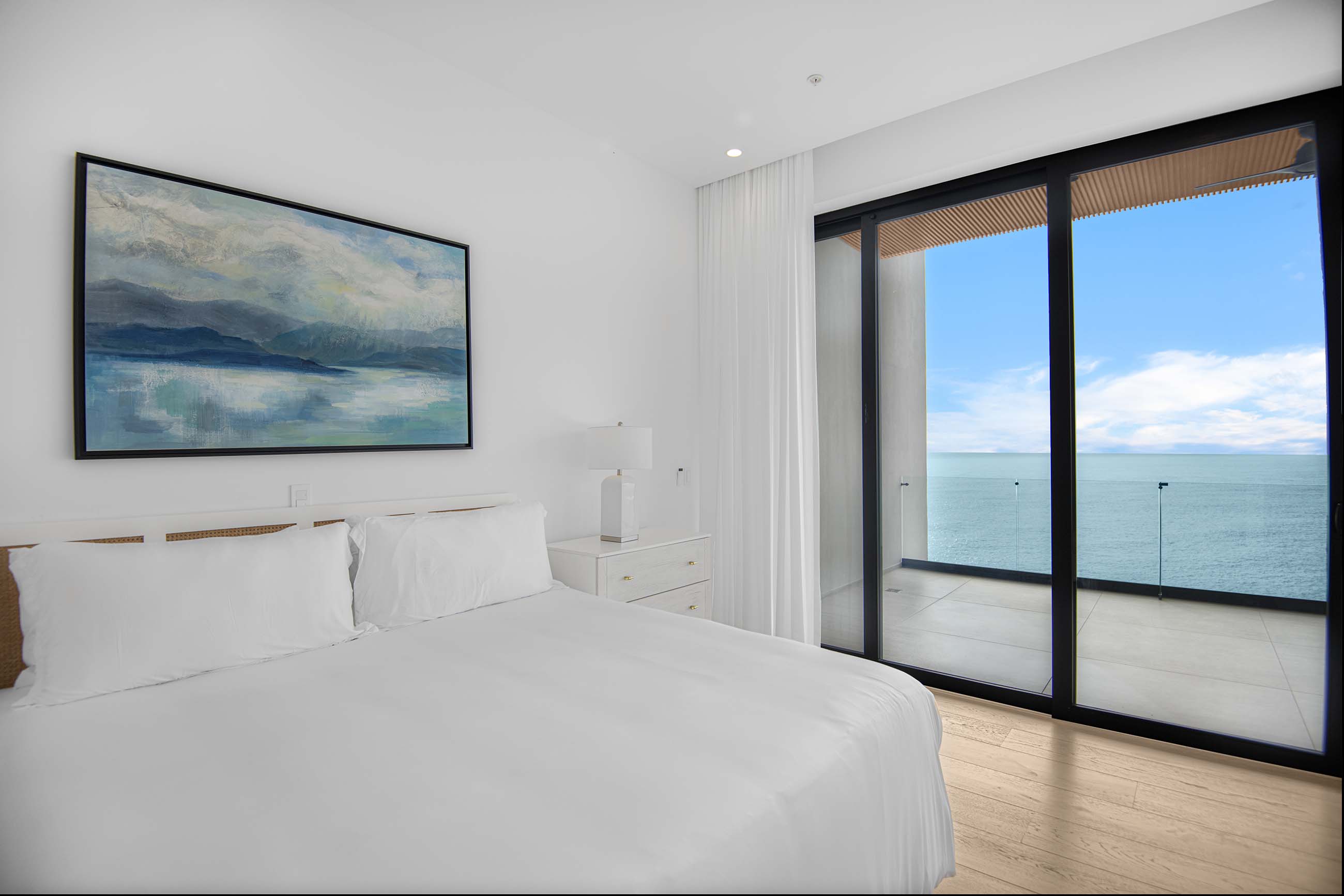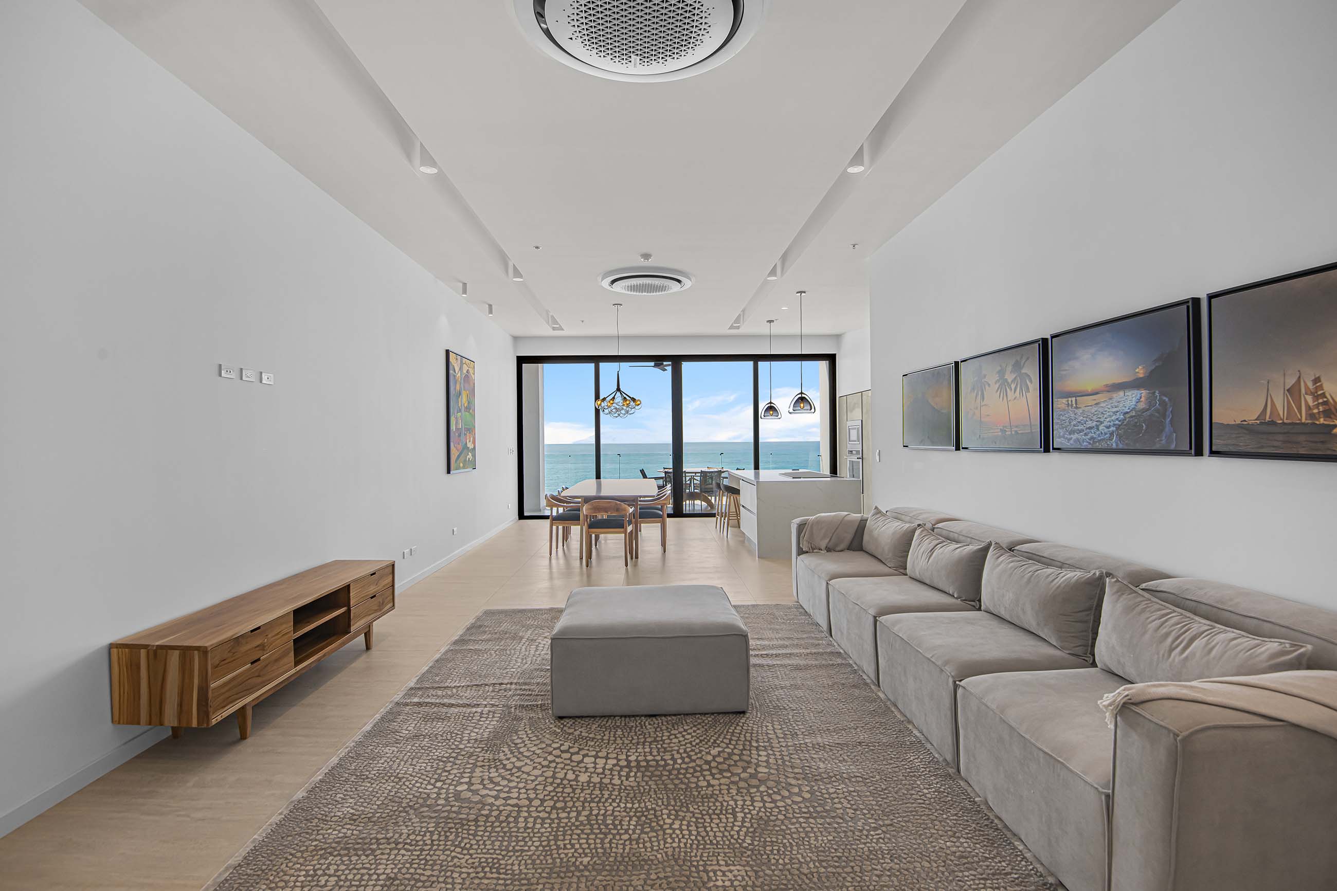 From the moment you enter, you’re greeted by stunning floor-to-ceiling glass wall doors that open the space to panoramic vistas and natural light. Every room is thoughtfully crafted with refined finishes and a modern aesthetic that enhances the seamless connection between the indoors and the surrounding seascape.