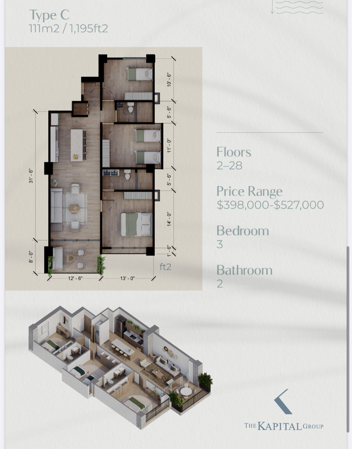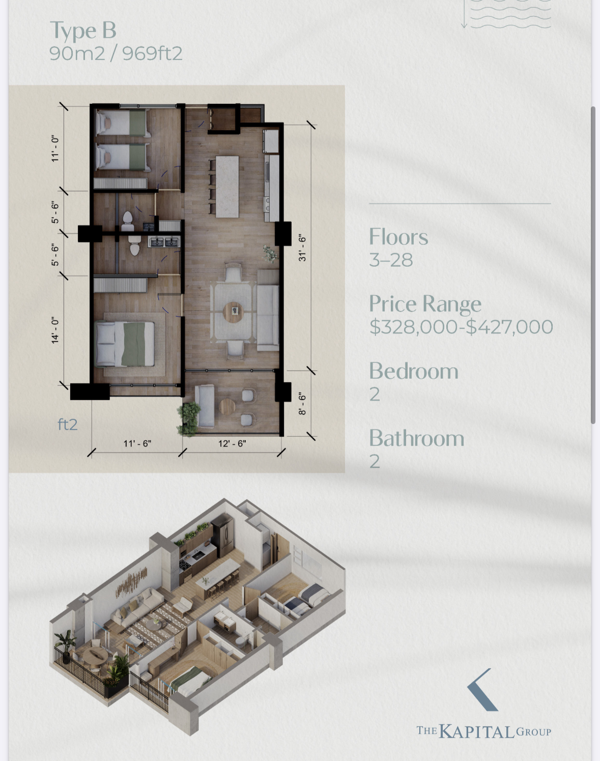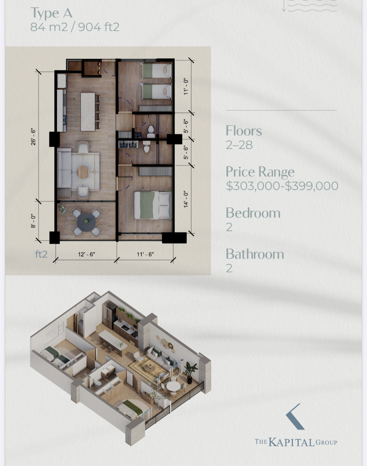 Choose from Four Spacious Floor Plans: Type A: 2 bedrooms, 2 bathrooms, 904 sq ft, starting at $303k Type B: 2 bedrooms, 2 bathrooms, 969 sq ft, starting at $328k Type C: 3 bedrooms, 2 bathrooms, 1,195 sq ft, starting at $398k Type D: 3 bedrooms, 3 bathrooms, 1,270 sq ft, starting at $430k