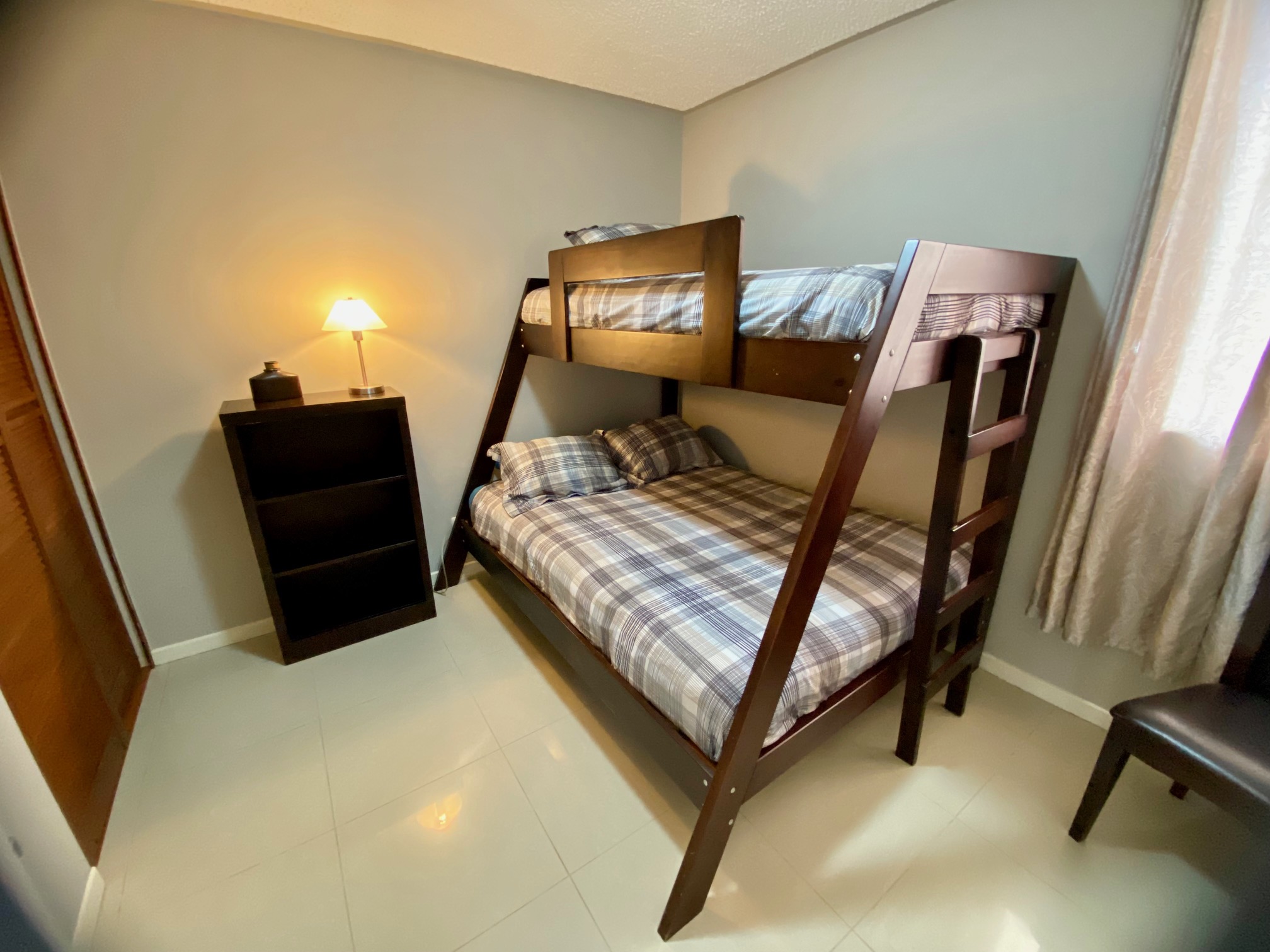 Tastefully furnished with queen bed in the master bedroom and bunk beds to sleep three in guest bedroom and a third bedroom currently being used as an office/den/guest room with desk nook and comfy couch.