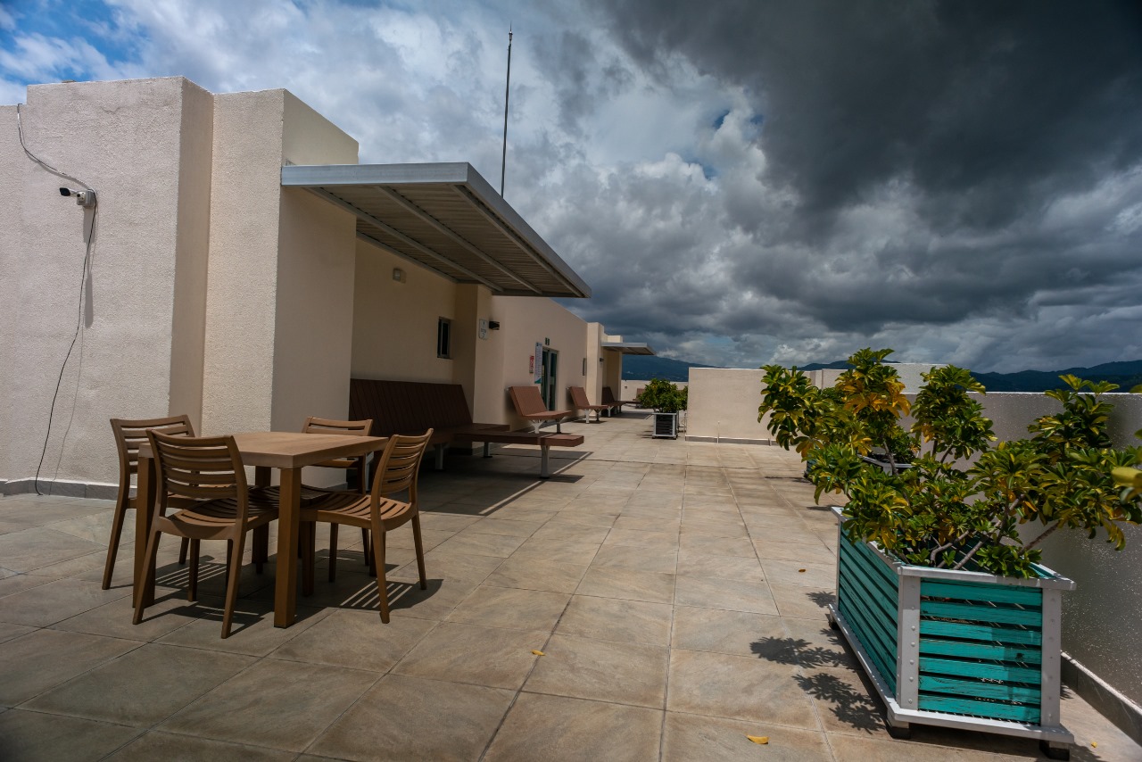 The apartment has a living-dining room with a balcony, a kitchen with a breakfast area and granite countertops, a laundry area with space for a laundry tower, two secondary bedrooms with a closet, the main one with a full bathroom and another full bathroom for visitors and the secondary bedroom. It has the benefit of having 3 parking spaces and 2 warehouses.