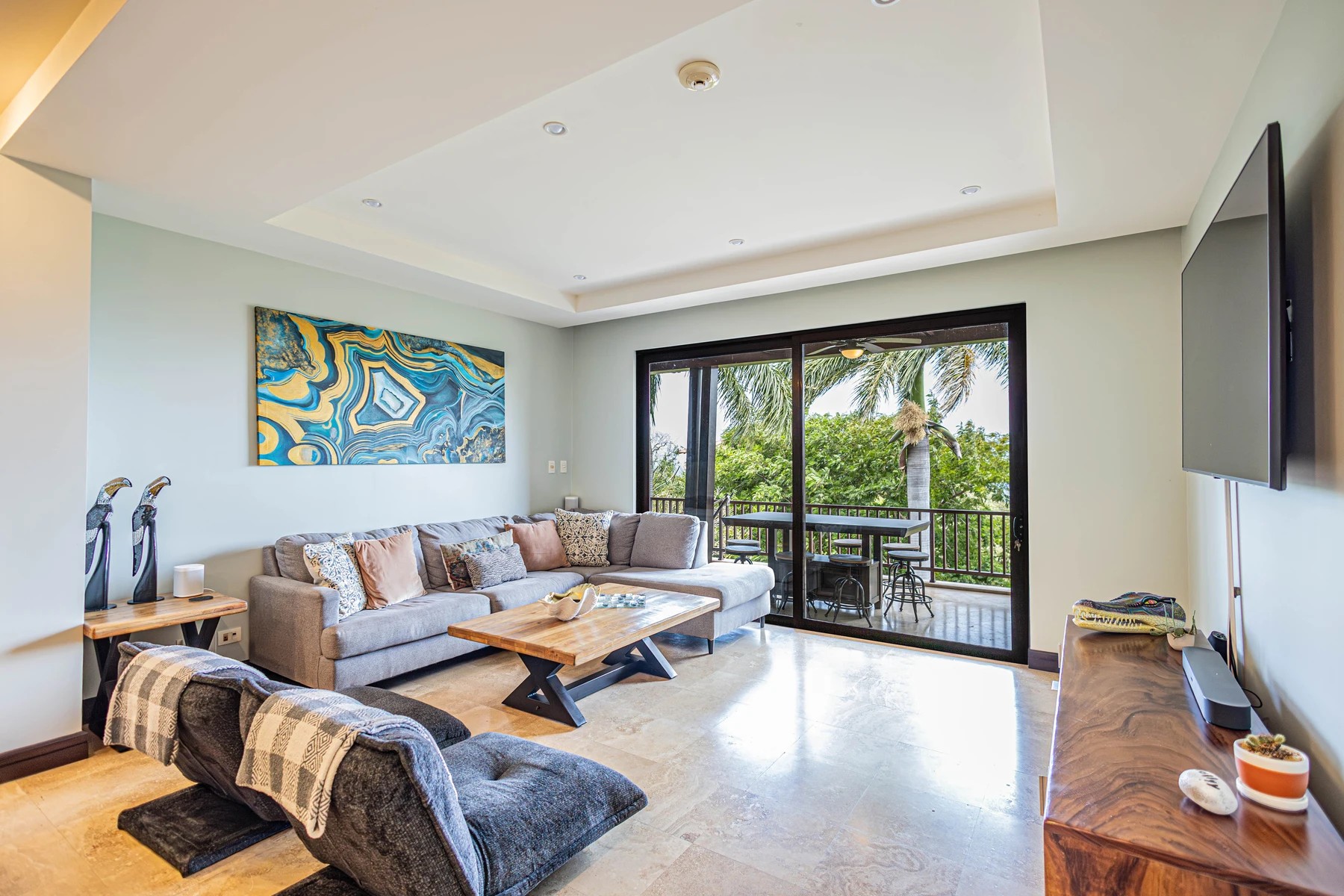 Experience the perfect blend of luxury, comfort, and natural beauty at 1B Azul Paraíso, a stunning 3-bedroom, 3-bathroom condo overlooking the tranquil waters of Playa Ocotal. Offering 2,300 sq. ft. of thoughtfully designed living space, this fully furnished residence features high-end finishes, travertine floors, high ceilings, and breathtaking views of the Pacific Ocean and surrounding lush landscape. The expansive covered balcony creates a seamless connection between indoor elegance and outdoor serenity, ideal for relaxing or entertaining.