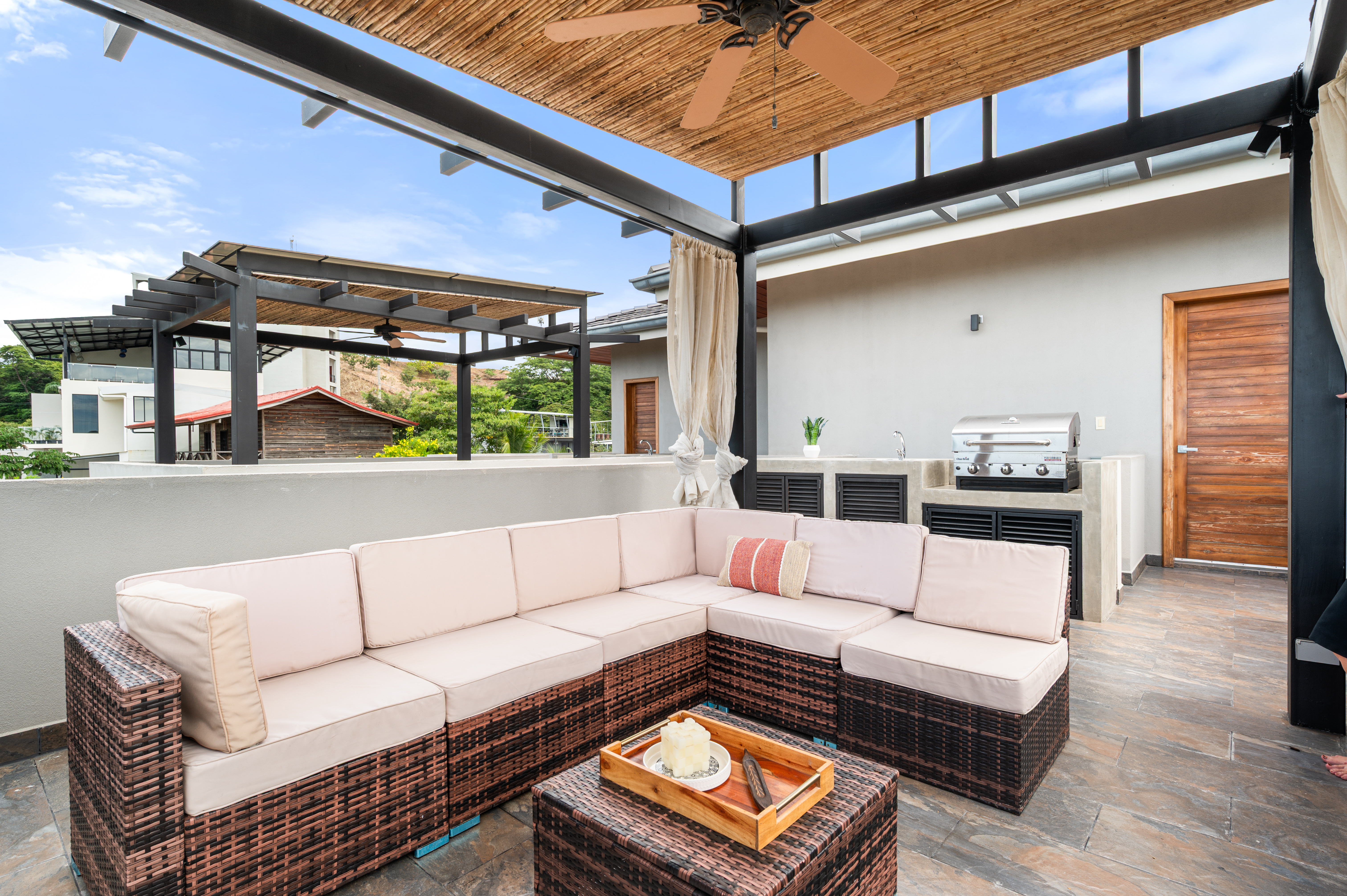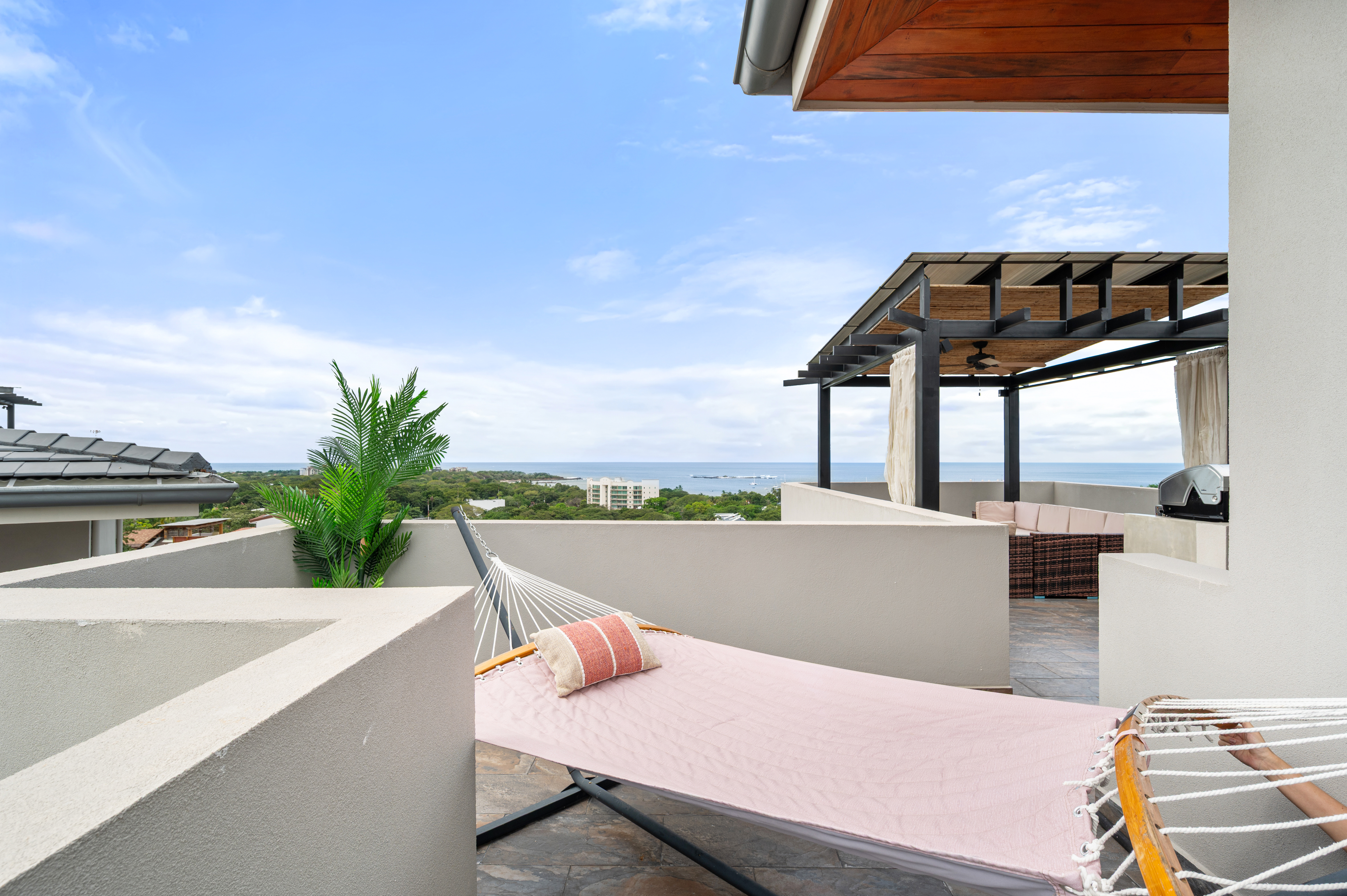 A standout feature of this residence is its private rooftop terrace, offering sweeping views from Playa Grande to the Tamarindo Estuary and Playa Avellanas. Fully equipped with an outdoor kitchen and BBQ area, the rooftop is perfect for sunset gatherings, evening cocktails, or simply enjoying Costa Rica’s year-round beauty.