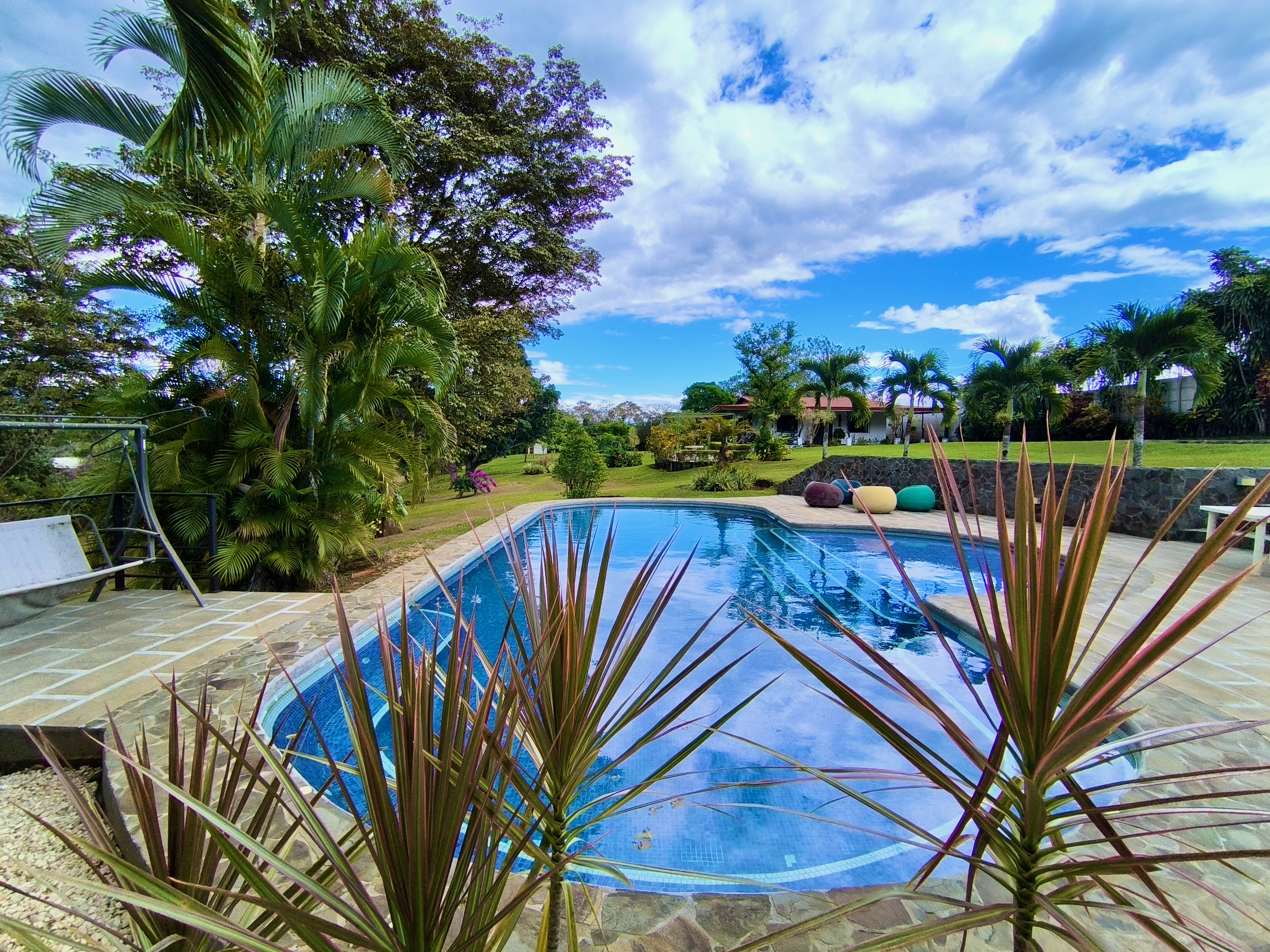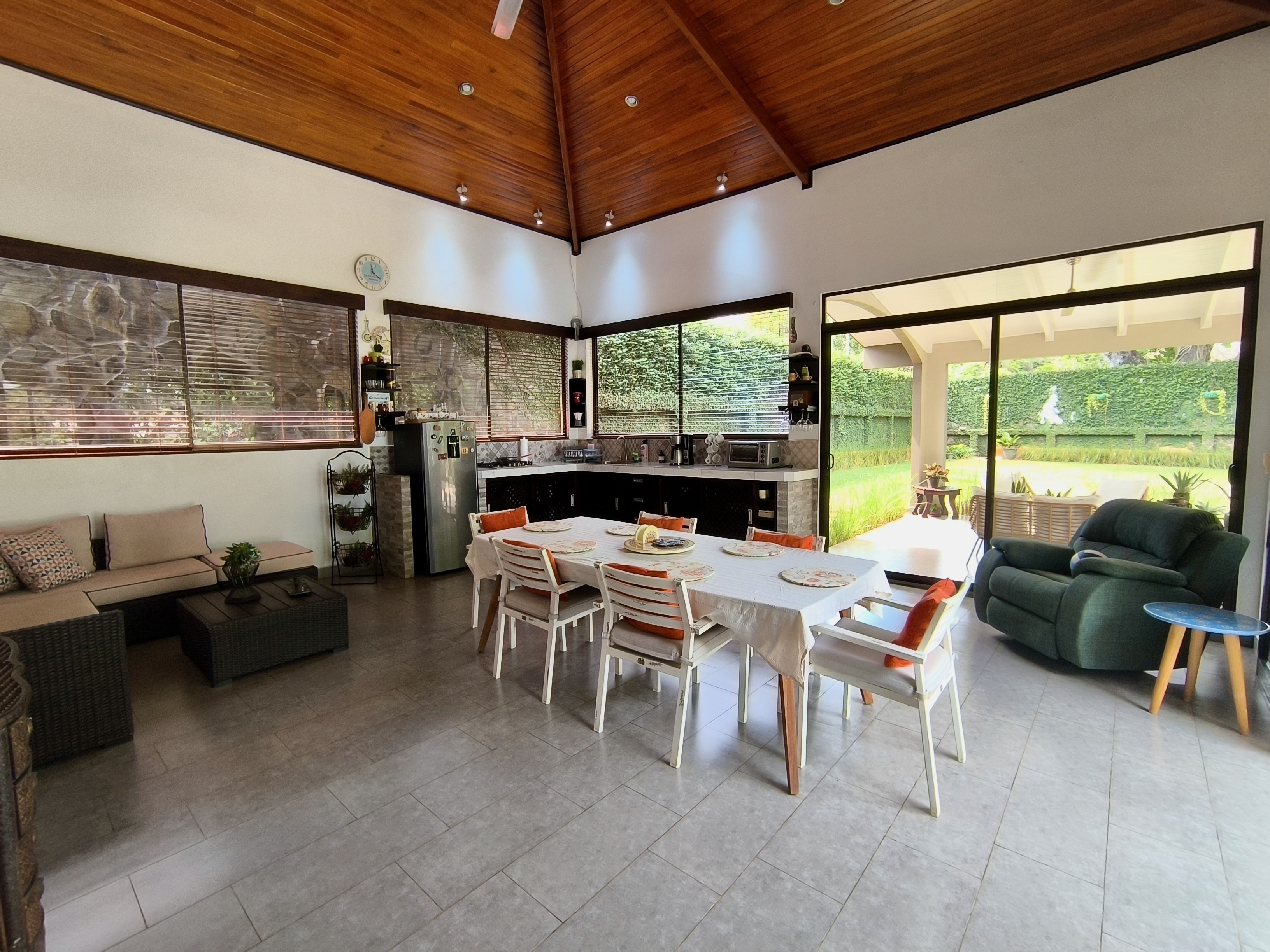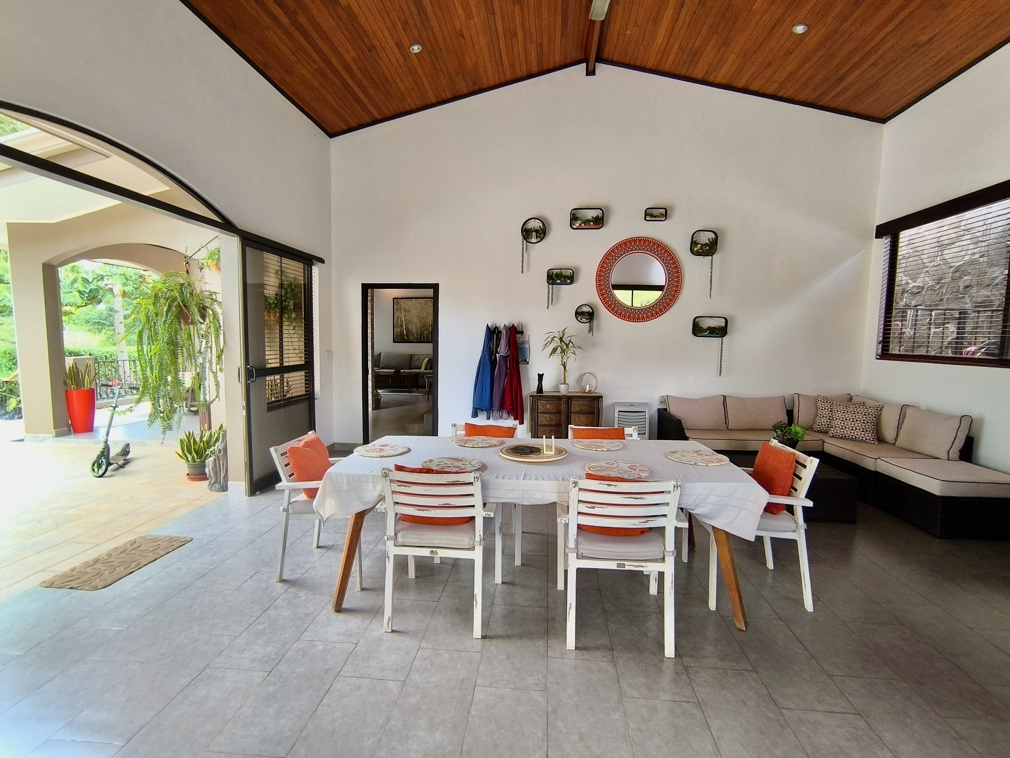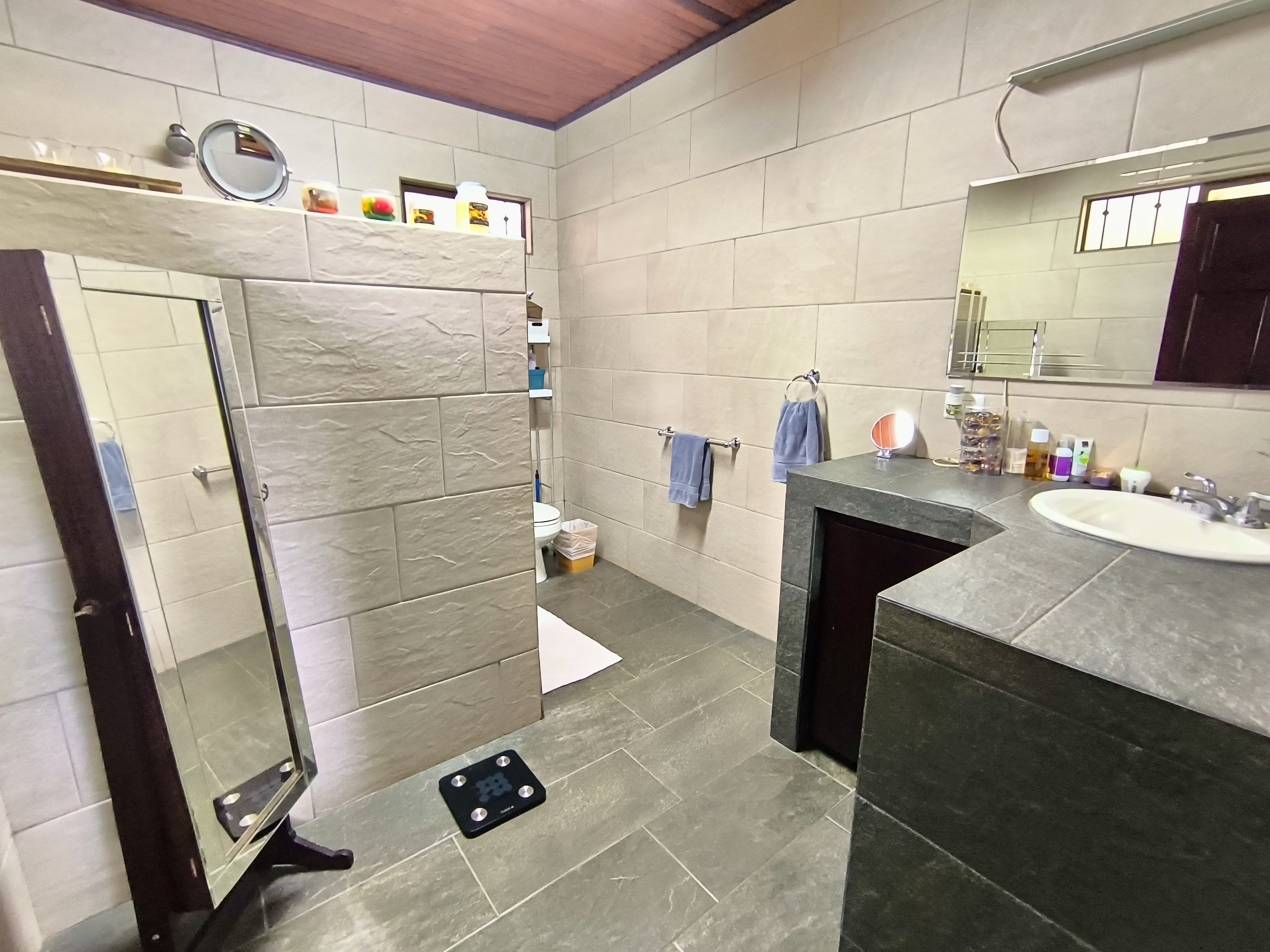 Further into the property, you'll find a well-sized swimming pool with an adjoining rancho. This space is perfect for entertaining, featuring a dining area, a bathroom, storage space, and an outdoor shower—everything you need to enjoy quality time outdoors!