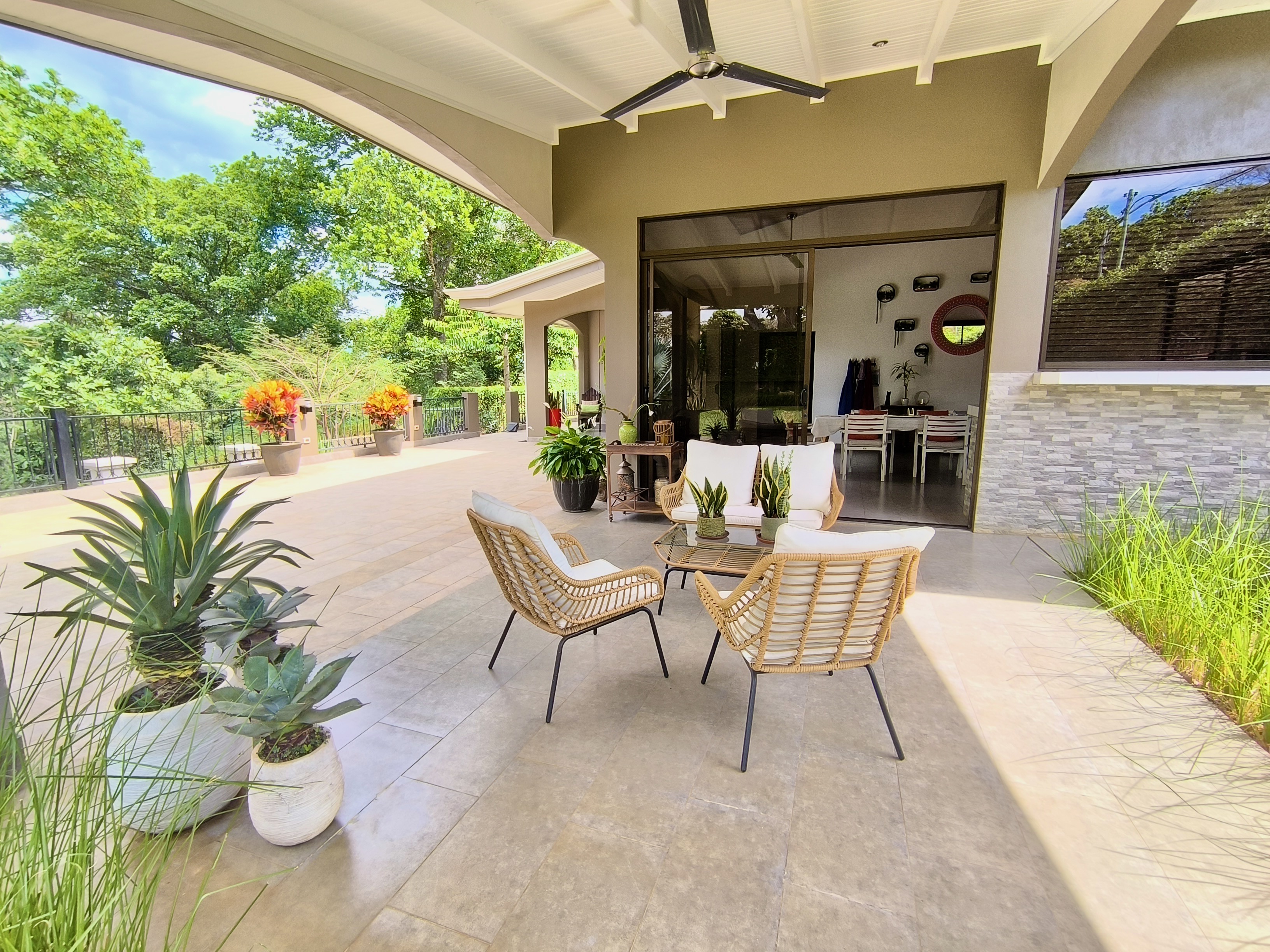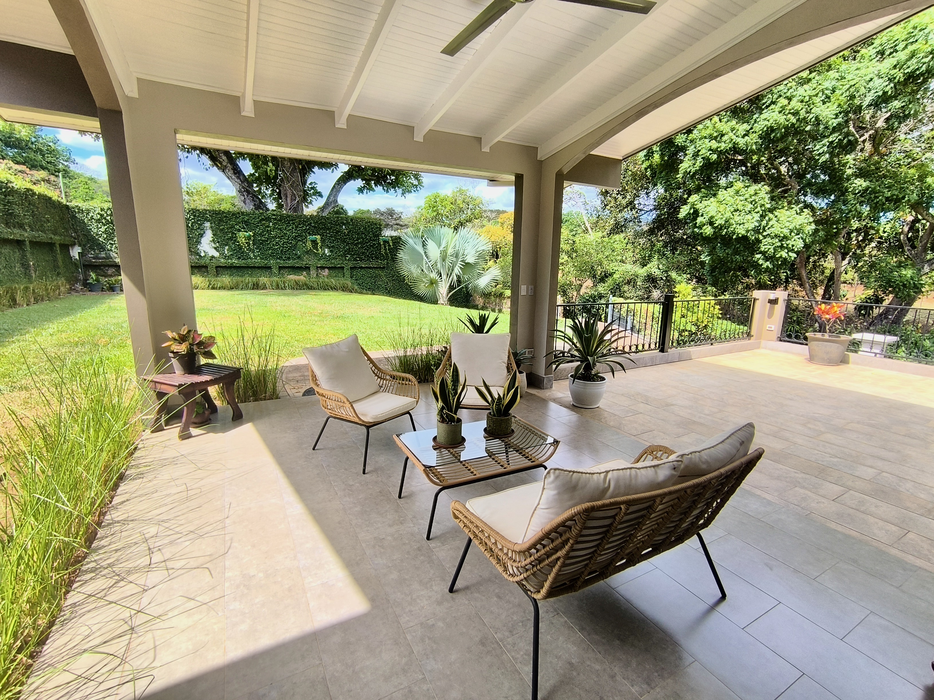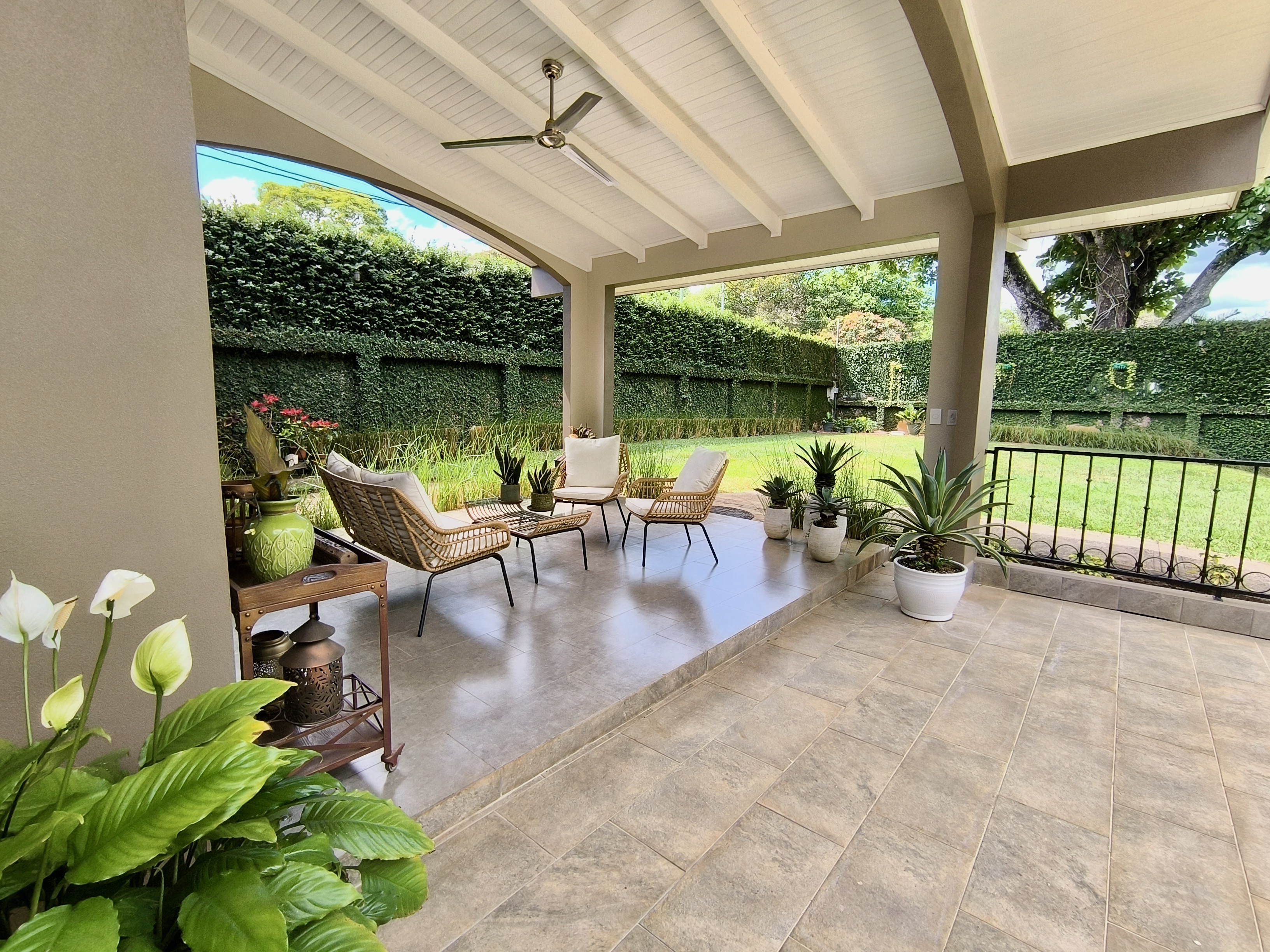 The covered parking area comfortably fits two vehicles, and there is a separate office nearby, providing a quiet space to work away from the living areas of the house.