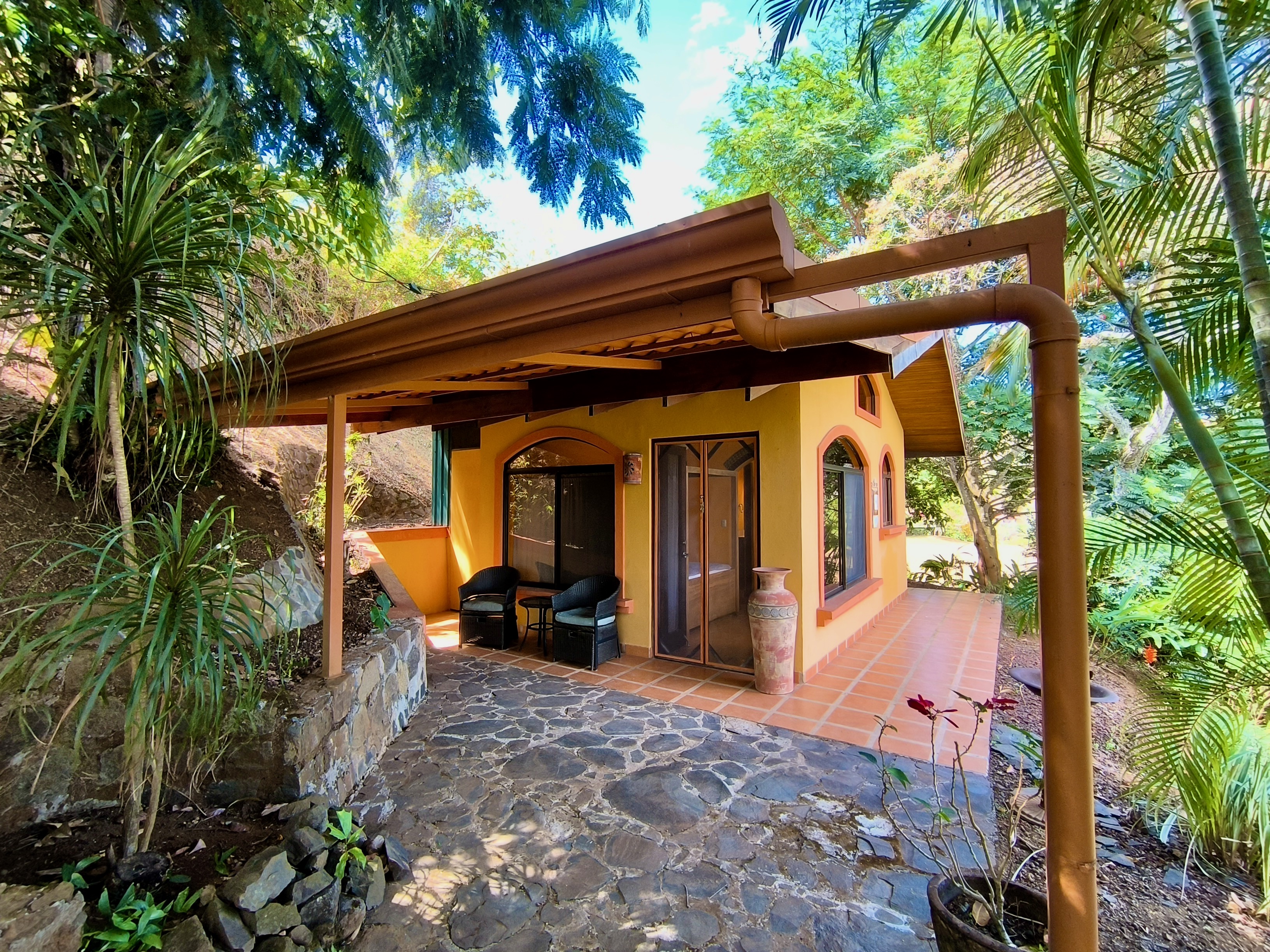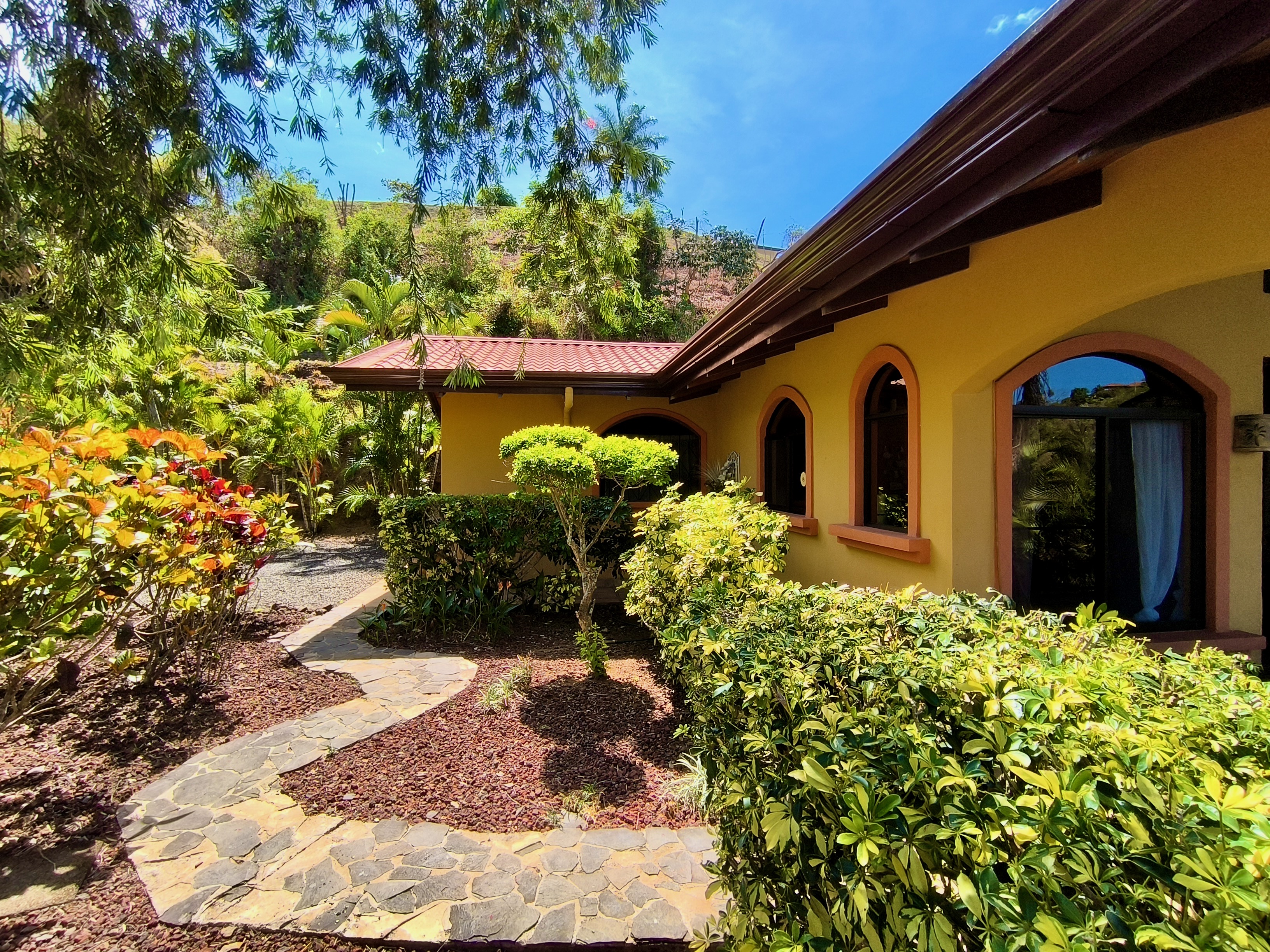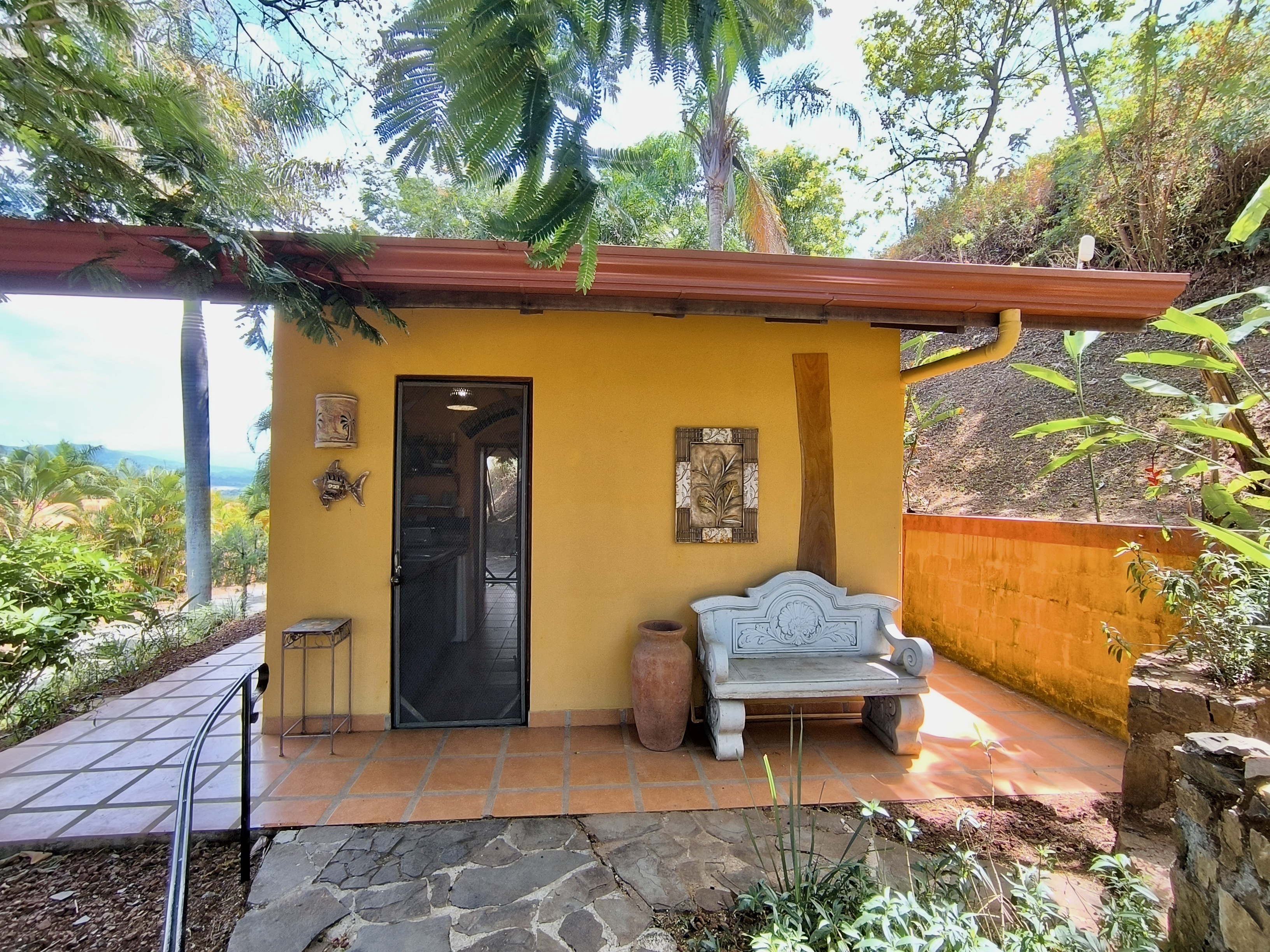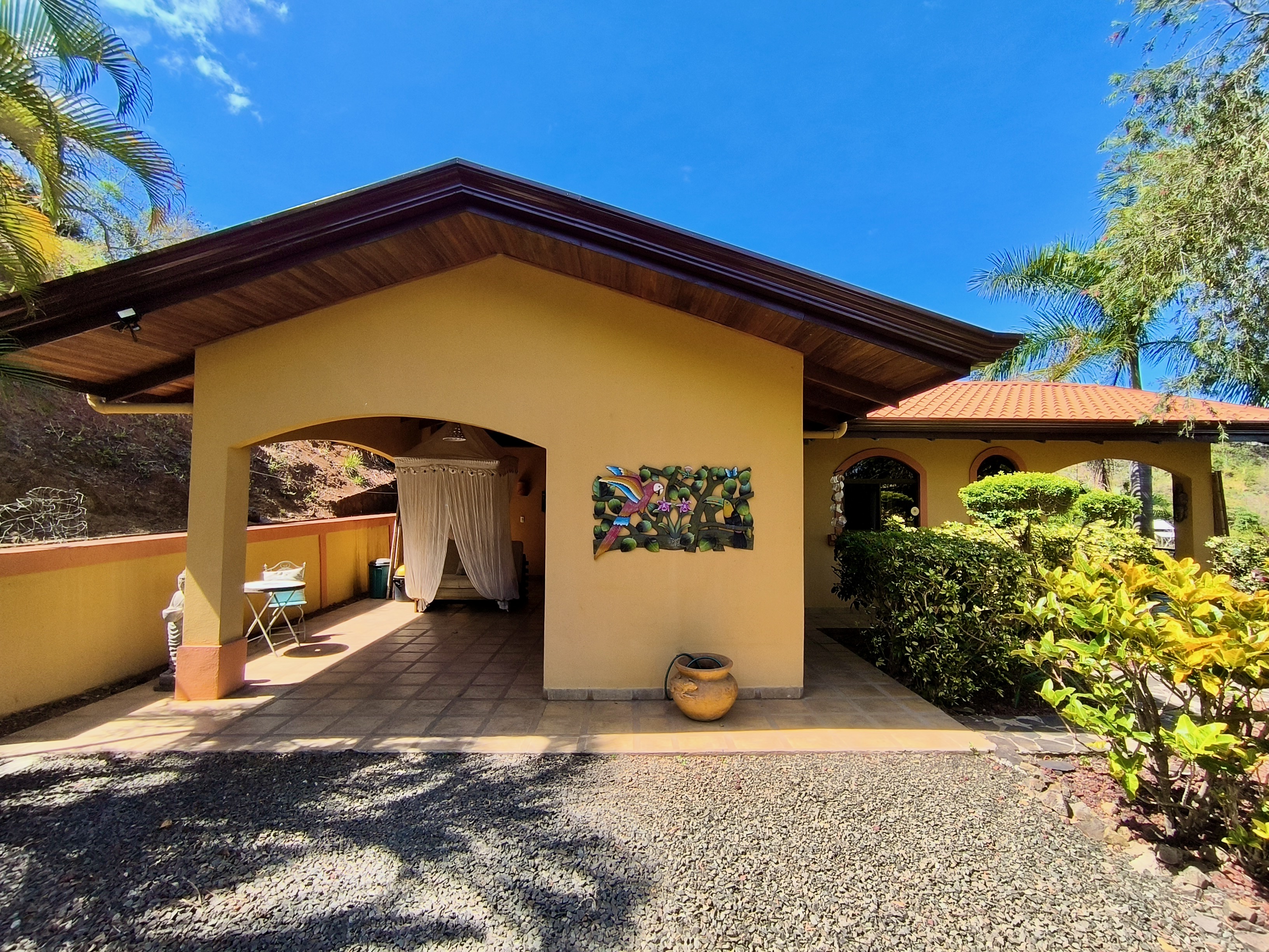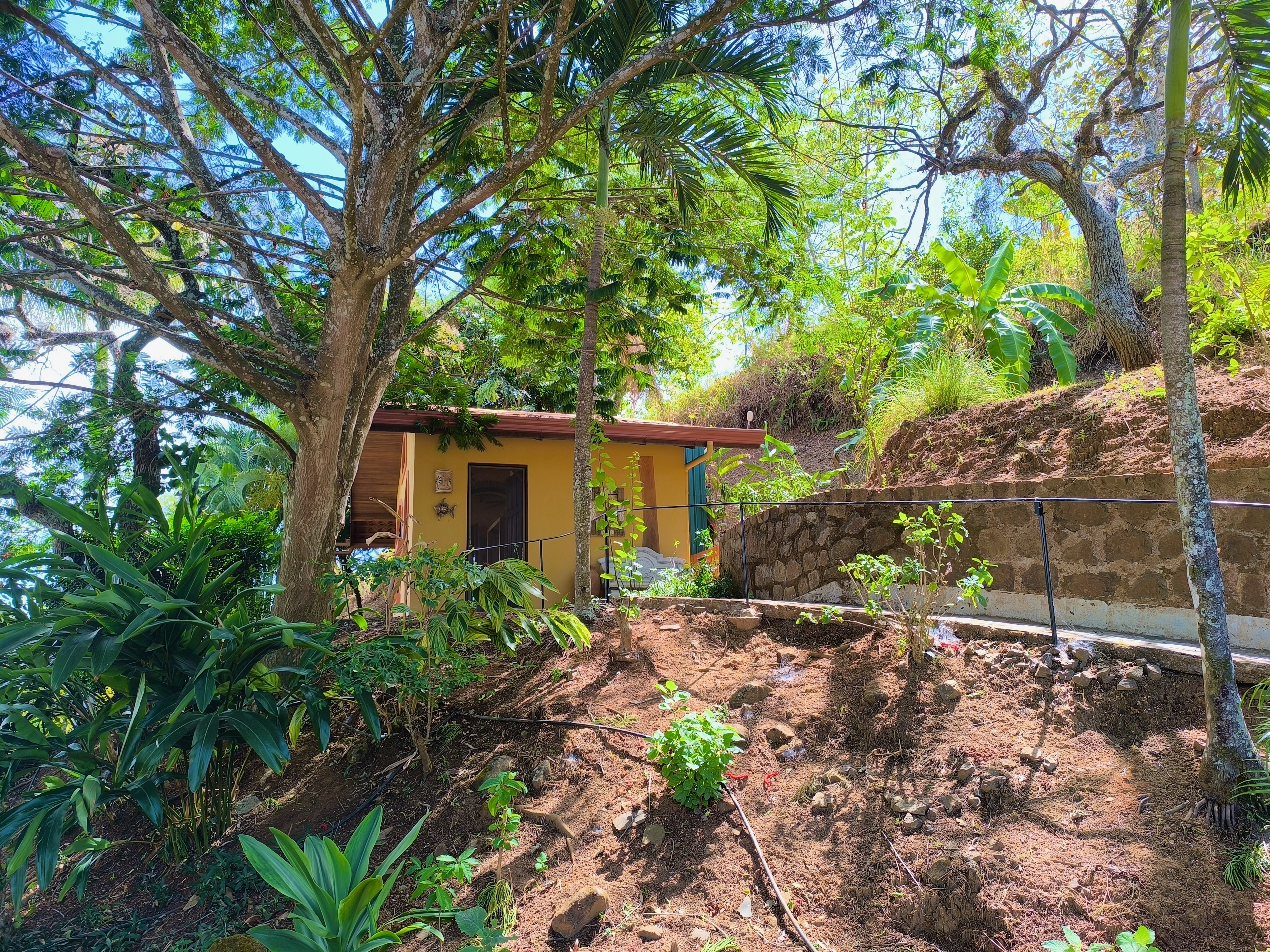 Discover this unique property in Roca Verde, the most sought-after community in Atenas. The estate features two solidly built and tastefully designed homes. The first house offers 1 bedroom, 1 bathroom, a combined kitchen/dining area, a laundry room, and a cozy covered terrace. The second home, located about 30 meters away, includes 2 bedrooms, 2 bathrooms, a fully equipped kitchen, living/dining area, laundry corner, storage space, and a beautiful terrace with breathtaking mountain views, along with a carport. Between the two houses lies a large, flat area ready for a new construction project—whether a spacious house with a pool or another design of your choice. Mature plants and trees enhance the lush garden. This property is being sold turnkey, offering a rare opportunity in a low-inventory community.