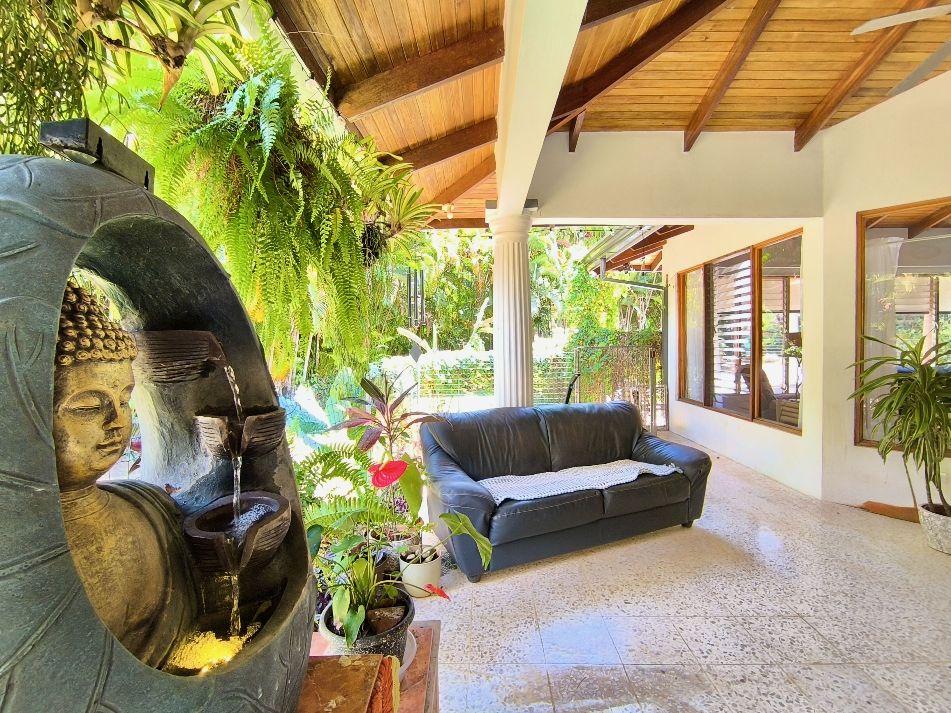 The garden offers ample space to add a swimming pool and includes several fruit trees. At the back of the house, you will find a laundry area and additional storage space, as well as a spacious covered carport.