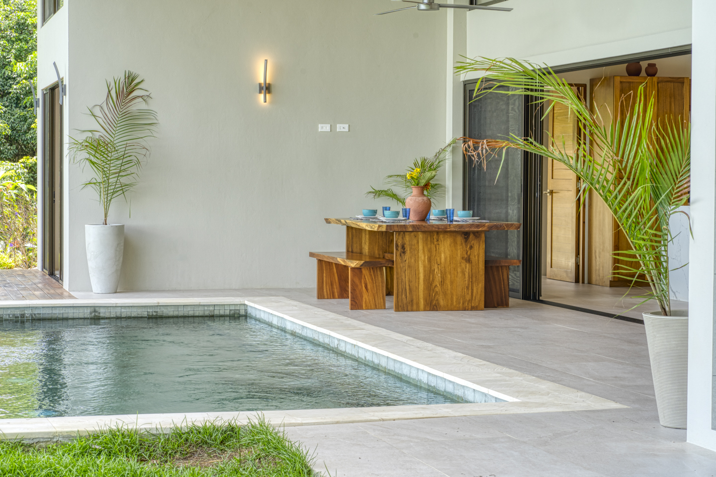 The property is a short drive to local beach Playa Dominicalito. It is located 3.5 km south of Playa Dominical and it is a smaller and relaxing beach. It’s the ideal beach to go swimming or to take your first surfing lessons. You can go picnicking and walking there. If you love fresh fish, you may run into some local fisherman there and be able to buy your dinner there. This property is also close to Poza Azul, a small waterfall and swimming hole. It’s fun to use the rope swing and swing right into the swimming hole. You’ll find plenty to do here and the larger surfing beach is nearby too.