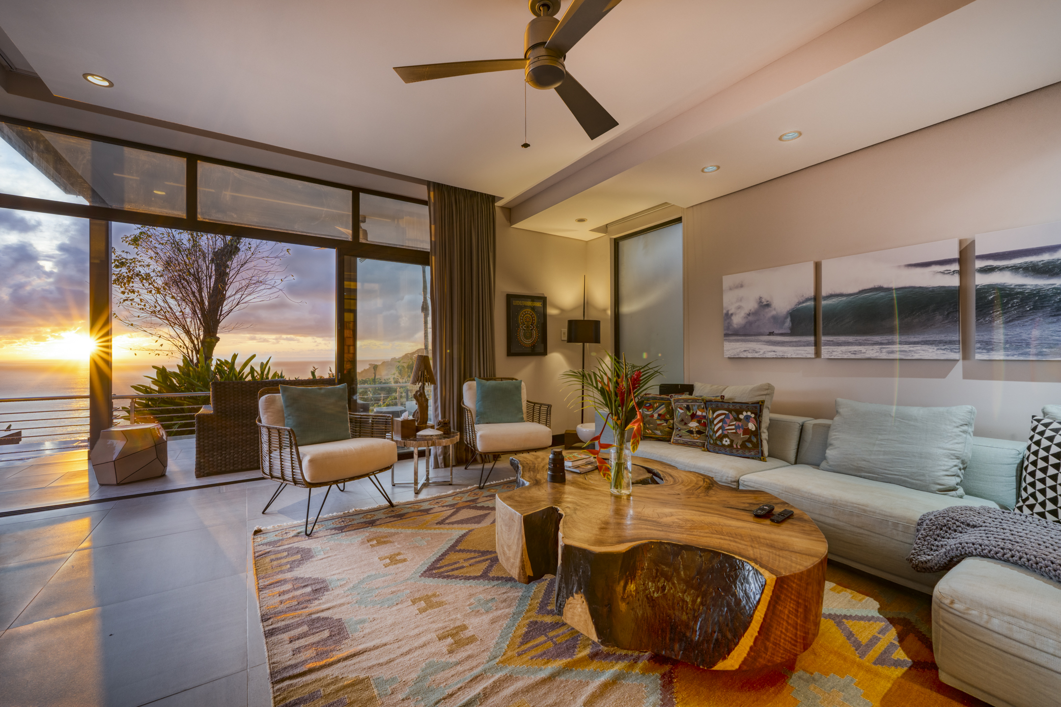 Step onto the master suite balcony and the Pacific opens beneath you. The villa blends modern design with the surrounding jungle, using clean lines, floor to ceiling glass, and thoughtful finishes that frame the landscape from every angle.