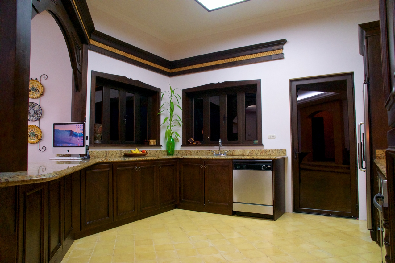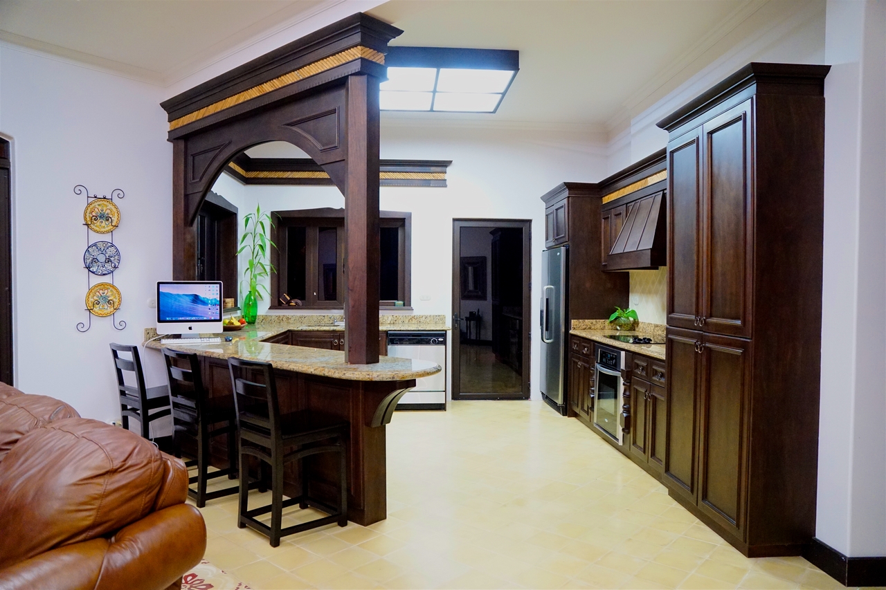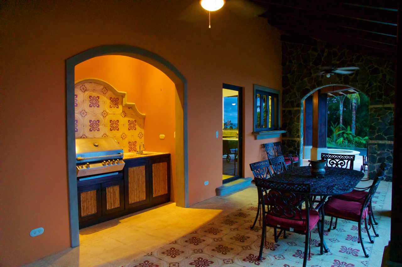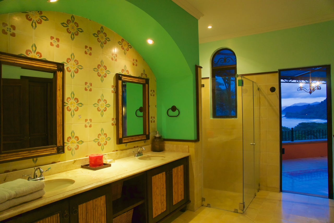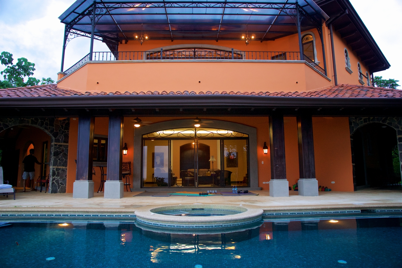 Privately nestled on a spacious lot within the gated & secured upscale Las Olas development, offering incredible ocean, coastal & mountain views; this luxury property is an oasis unto itself. With no immediate neighbors, bordered by lush jungle, open views, pristine landscaping and a functional front AND rear yard – this property offers everything a top-quality estate could, including sunsets 365 days a year! Only 2-3min drive on an exceptionally well maintained road to the main highway, this property is also walking distance to Playa Dominicalito. Approaching the casa, you’re greeted with a horizon of ocean, miles of coastline, Manual Antonio in the distance, lush jungle in the forefront, and a beautiful Mediterranean style home replete with vibrant exterior colors, tiled roof, massive wrap-around decks, and an infinity pool with spa. Inside, immaculate design with a tasteful emphasis on space, luxury, openness and functionality. Tiled floors, rich wood cabinetry, a designer-award winning atrium and staircase, and each room with its own access to the patio and outdoors. Opening the main double doors to the front of the home, the bi-folding kitchen windows, the double patio doors to the main pool deck, one can’t help but feel there are no walls between you and the abundant nature that surrounds. Upstairs, the spacious master bedroom has its own massive deck, bathroom with walk-in closet, large linens closet, and its own private washer/dryer area for housekeeping ease. Juliette decks with wrought iron railings, unique and beautiful views through every window and door, this home has it all