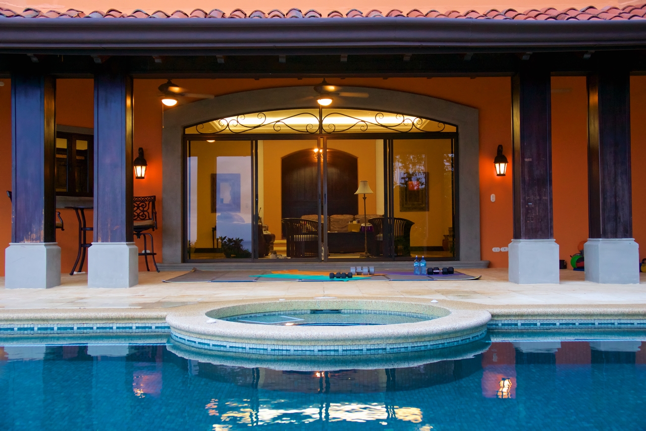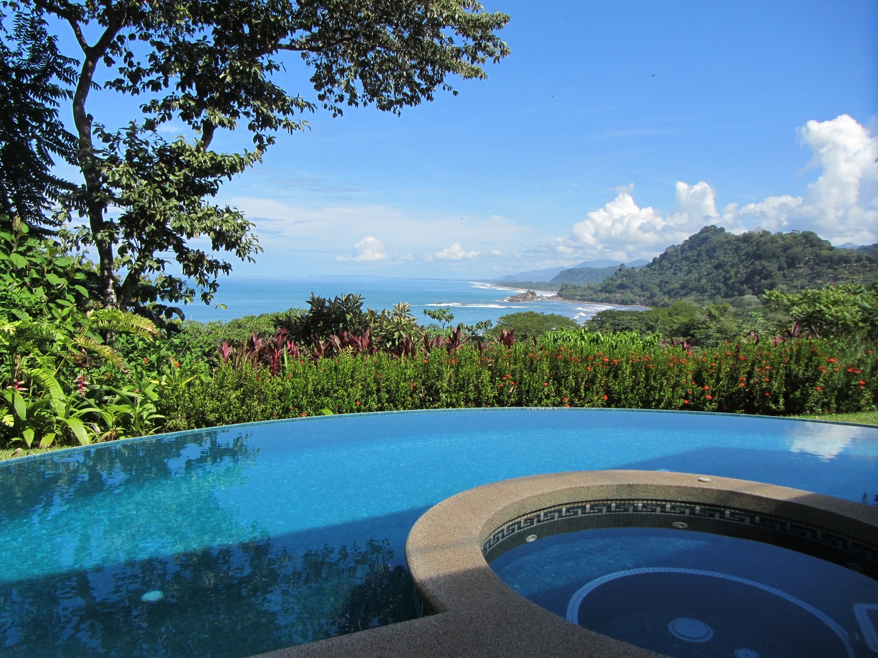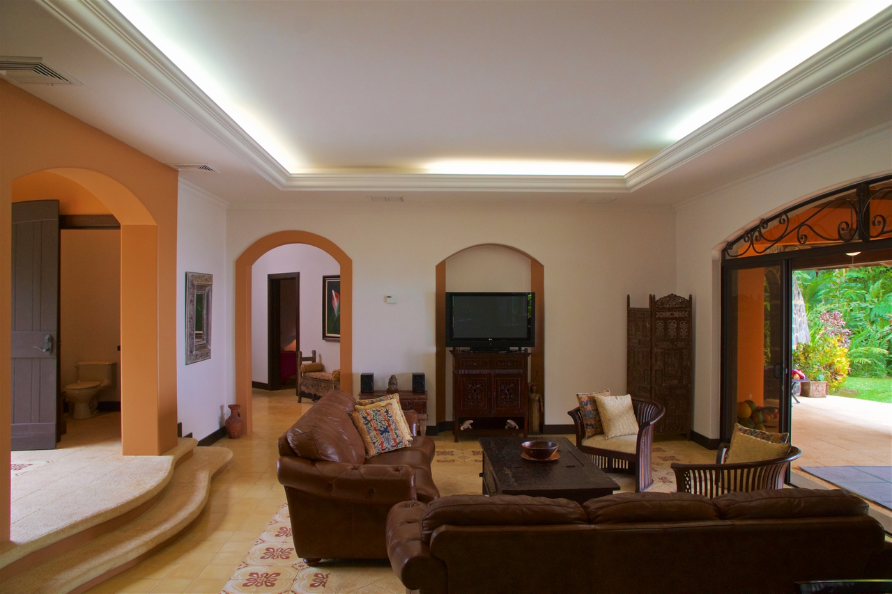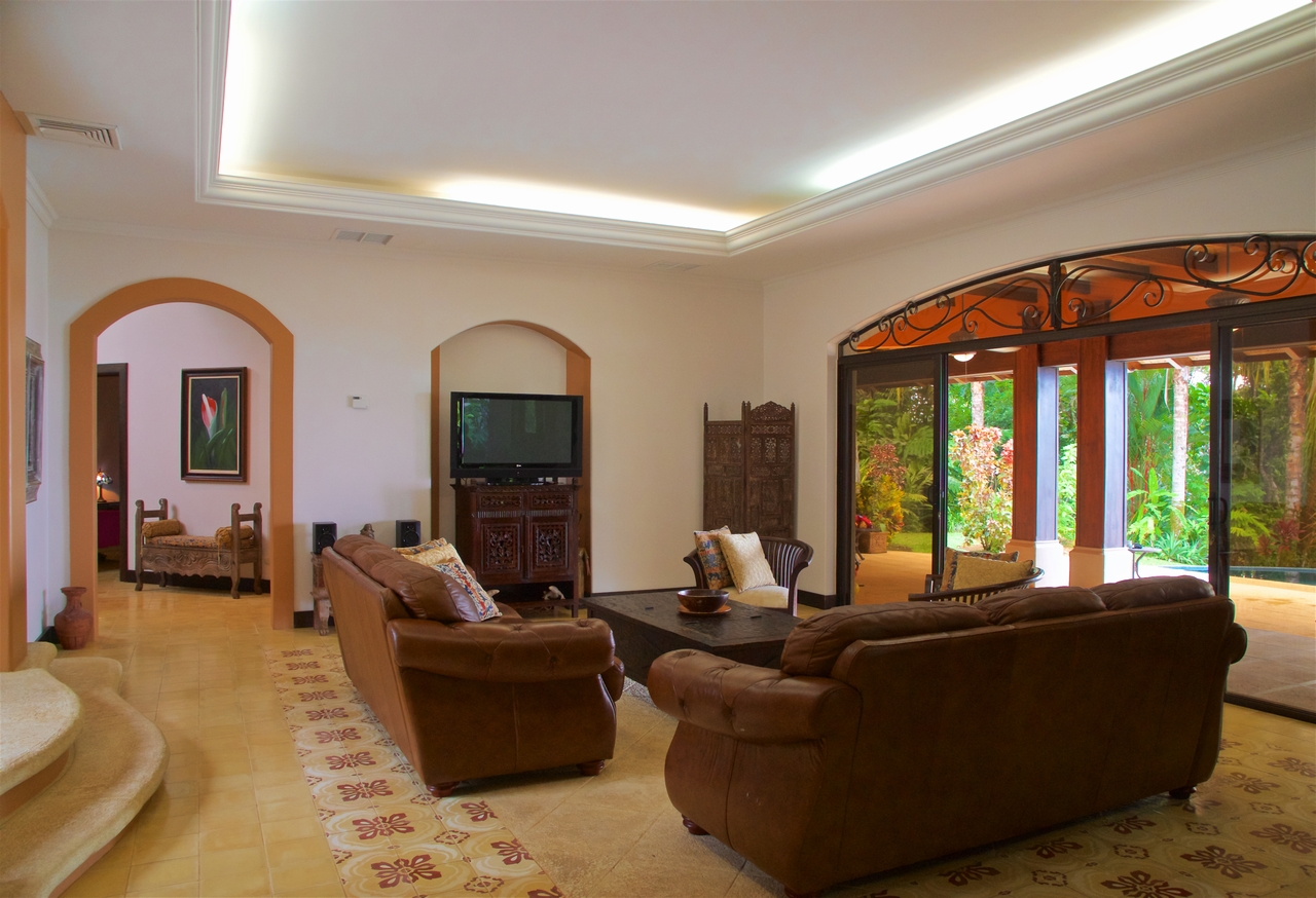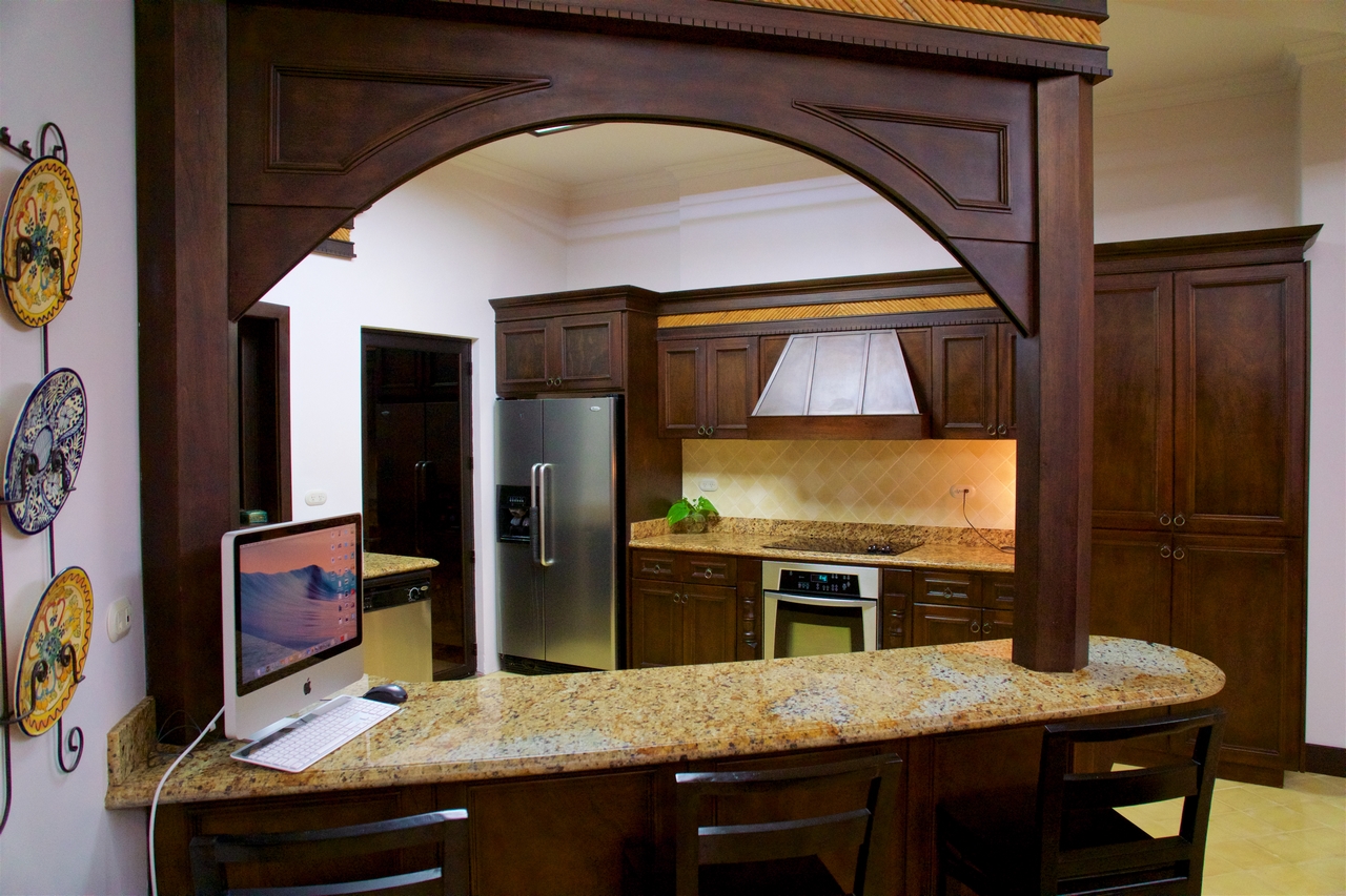 Privately nestled on a spacious lot within the gated & secured upscale Las Olas development, offering incredible ocean, coastal & mountain views; this luxury property is an oasis unto itself. With no immediate neighbors, bordered by lush jungle, open views, pristine landscaping and a functional front AND rear yard – this property offers everything a top-quality estate could, including sunsets 365 days a year! Only 2-3min drive on an exceptionally well maintained road to the main highway, this property is also walking distance to Playa Dominicalito. Approaching the casa, you’re greeted with a horizon of ocean, miles of coastline, Manual Antonio in the distance, lush jungle in the forefront, and a beautiful Mediterranean style home replete with vibrant exterior colors, tiled roof, massive wrap-around decks, and an infinity pool with spa. Inside, immaculate design with a tasteful emphasis on space, luxury, openness and functionality. Tiled floors, rich wood cabinetry, a designer-award winning atrium and staircase, and each room with its own access to the patio and outdoors. Opening the main double doors to the front of the home, the bi-folding kitchen windows, the double patio doors to the main pool deck, one can’t help but feel there are no walls between you and the abundant nature that surrounds. Upstairs, the spacious master bedroom has its own massive deck, bathroom with walk-in closet, large linens closet, and its own private washer/dryer area for housekeeping ease. Juliette decks with wrought iron railings, unique and beautiful views through every window and door, this home has it all