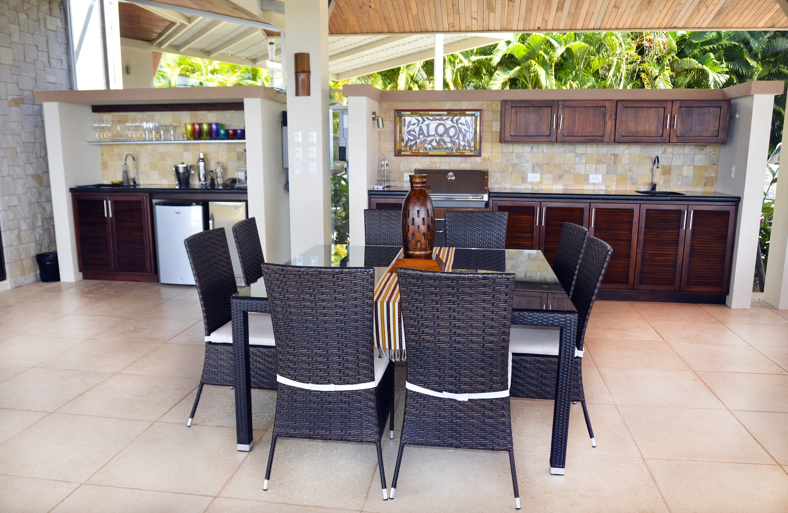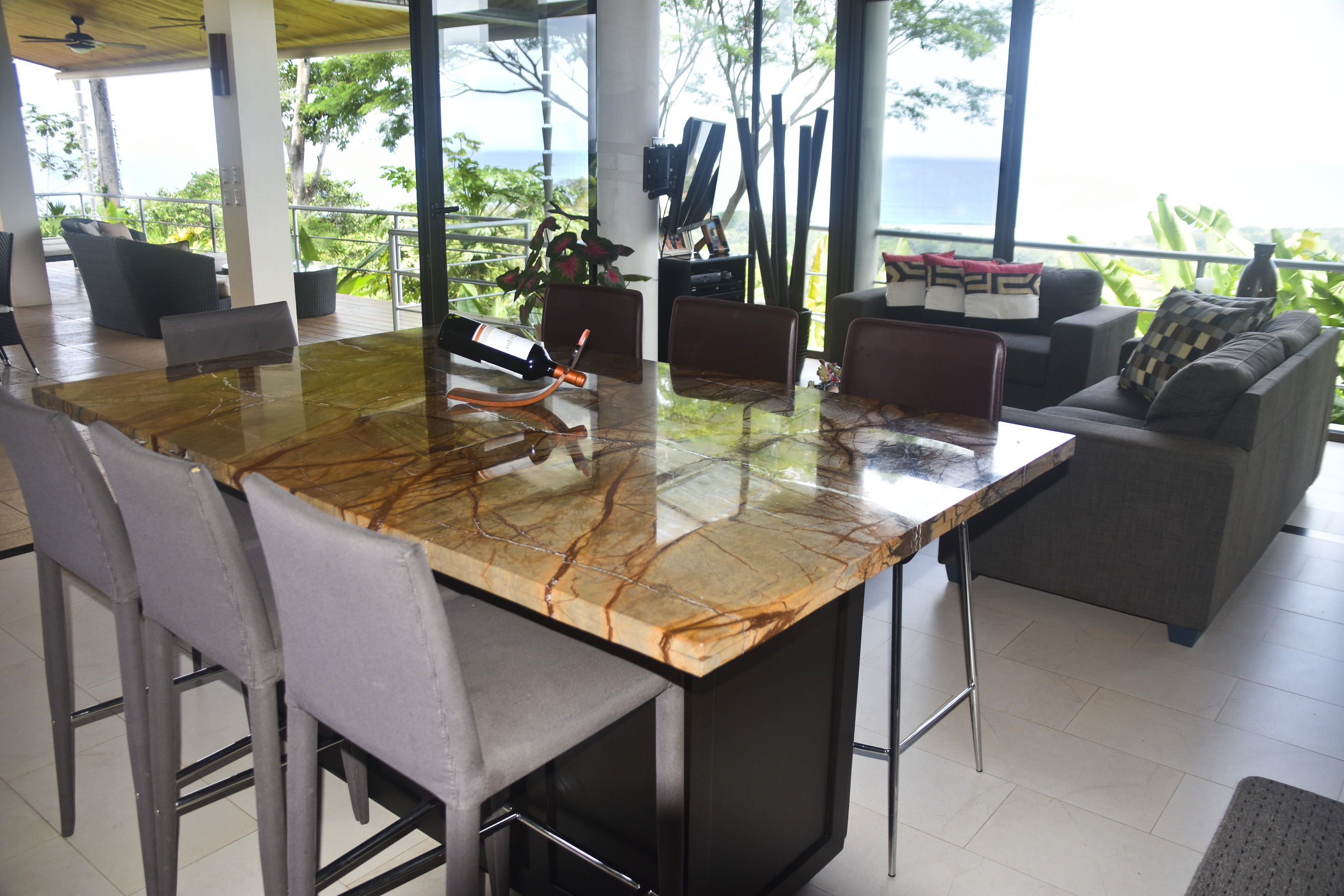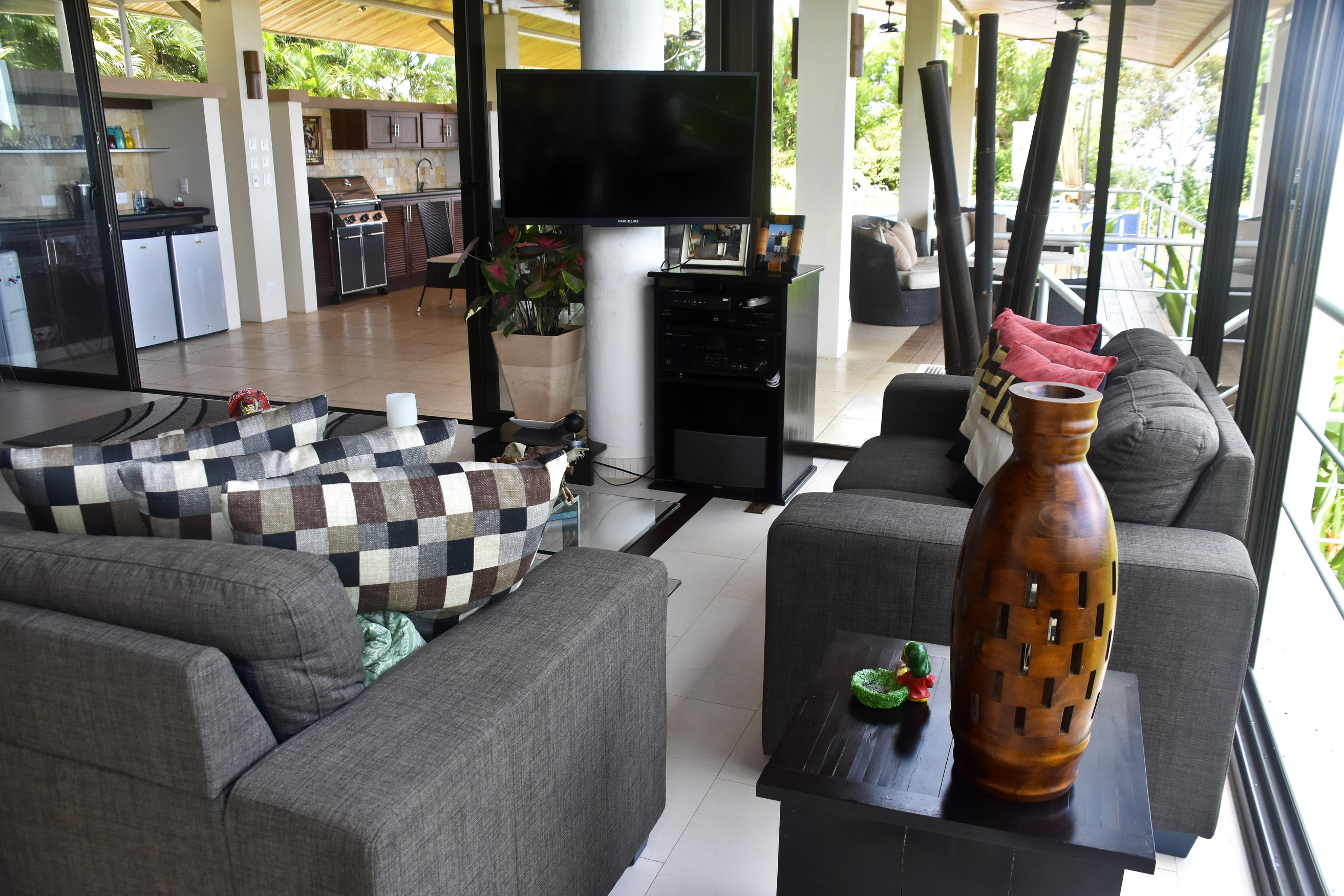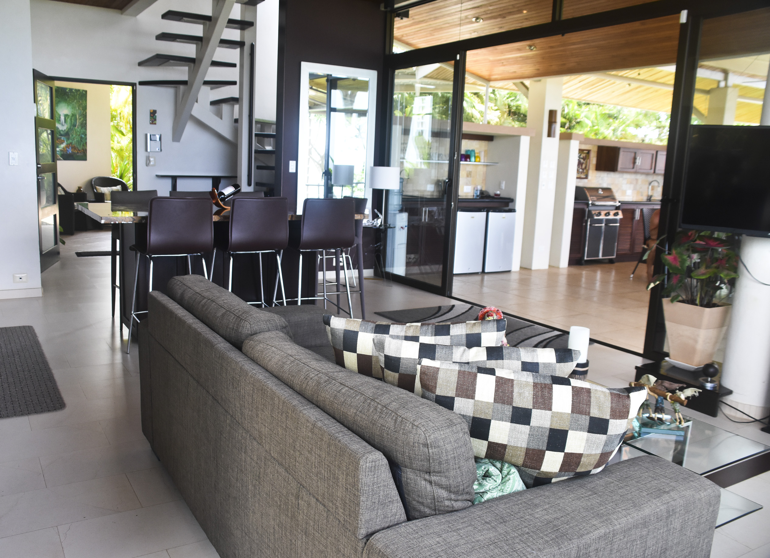 You can actually see and hear the beautiful Pacific waves as they roll into shore from the large infinity pool with built-in bar, ( my favorite spot), or from the huge outdoor covered living area, which includes an outdoor kitchen, BBQ, a full wet bar, outdoor dining table, wine fridge, as well as from inside the Villa which has been specifically designed to take full advantage of all every view from everywhere!