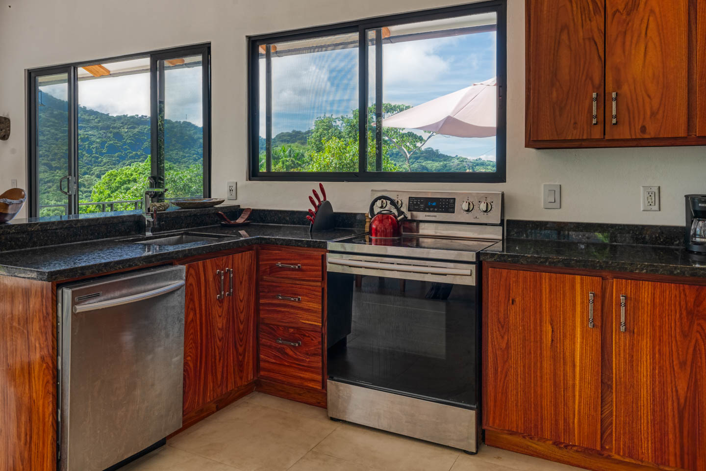 This property is beautifully landscaped with overflowing trees and local plants. Being part of the Canto Del Mar community, there is 24/7 security and it’s part of a gated community. The property is within 10 minutes to the local beach Playa Dominicalito. It’s smaller than the main beach, Playa Dominical, and is often referred to as it’s “little brother.” It is located 3.5 km south of Playa Dominical and is a smaller and relaxing beach. It’s the ideal beach to go swimming or to take your first surfing lessons. You can go picnicking and walking there. If you love fresh fish, you may run into some local fisherman there and be able to buy your dinner there. This property is also within walking distance to Poza Azul, a small waterfall and swimming hole. It’s fun to use the rope swing and swing right into the swimming hole. You’ll find plenty to do here and the larger surfing beach is nearby too.