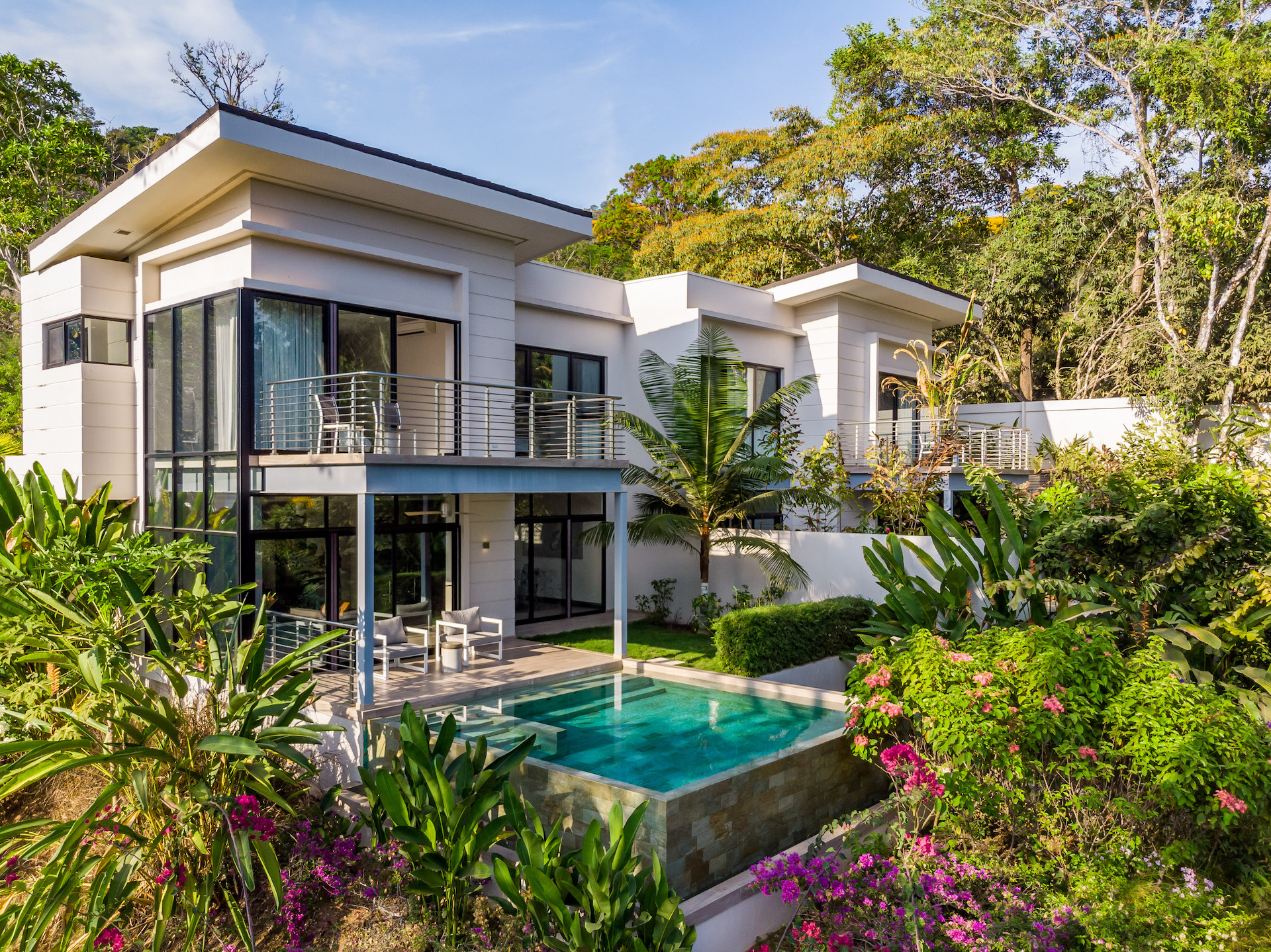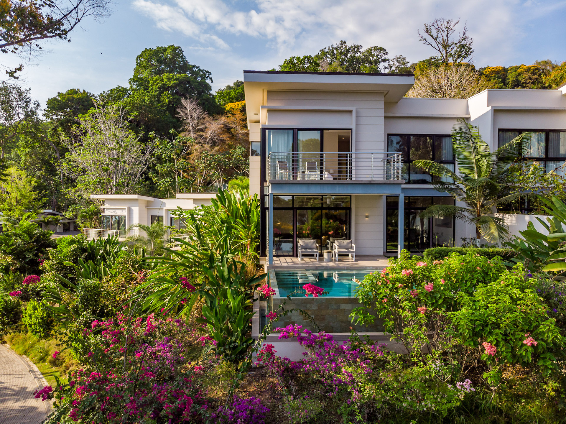 Life at your Luxury Ocean View Villa integrates into the fabric of the surrounding culture and lush landscape. Built on bluffs overlooking San Martin beach, on the very edge of jungle preserve lands, The Terraces at San Martin immerse you in Costa Rica’s natural wonders. The townhouses form an exclusive community embedded in the emerald rainforest, where inspirational Pacific sunsets are just part of a daily routine. A system of trails offers passage through the surrounding rainforest, with options to hike to a nearby waterfall or descend to the sands of San Martin Beach.