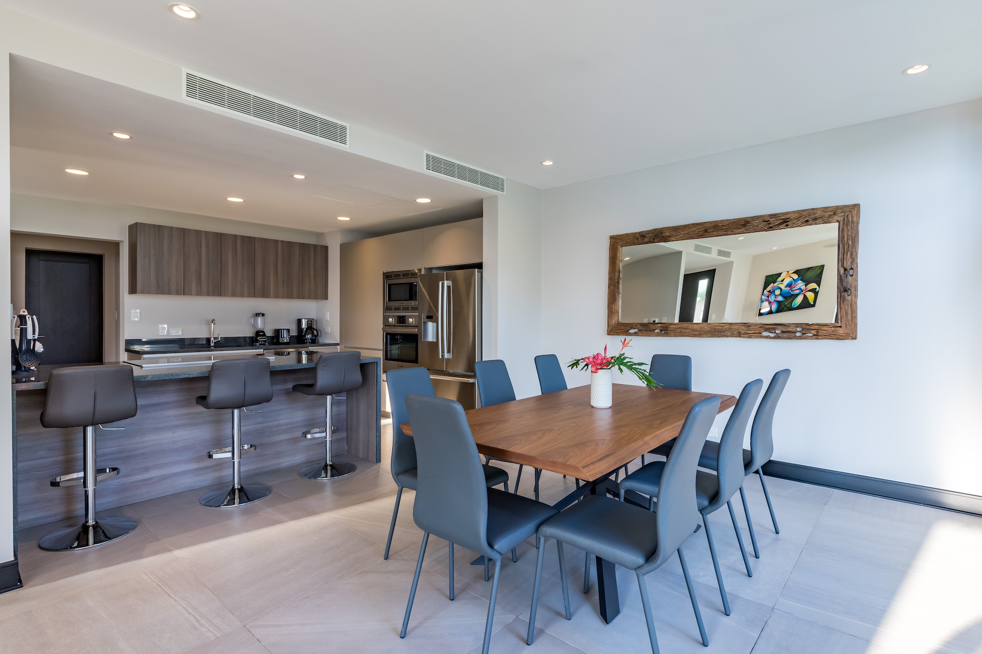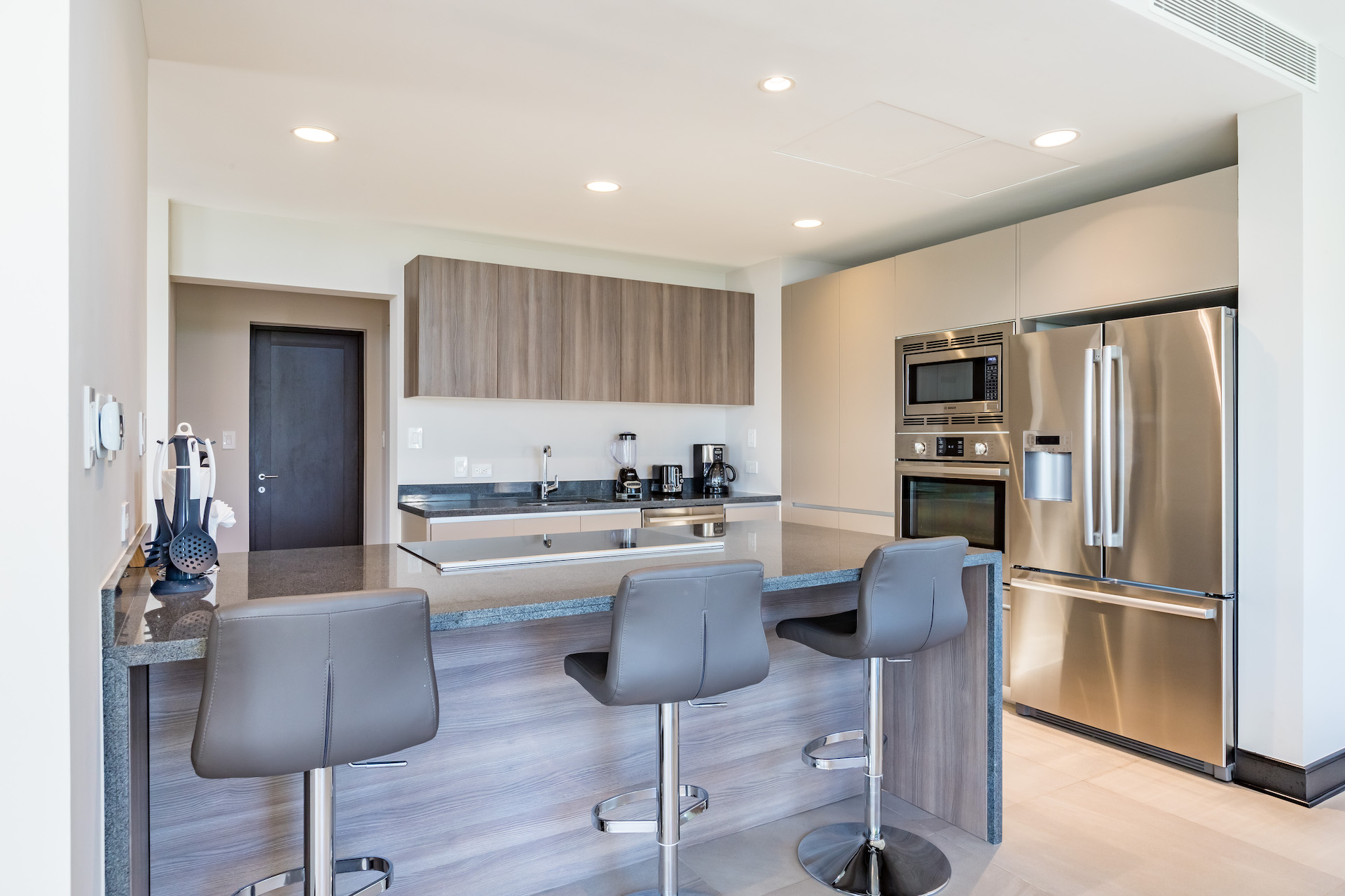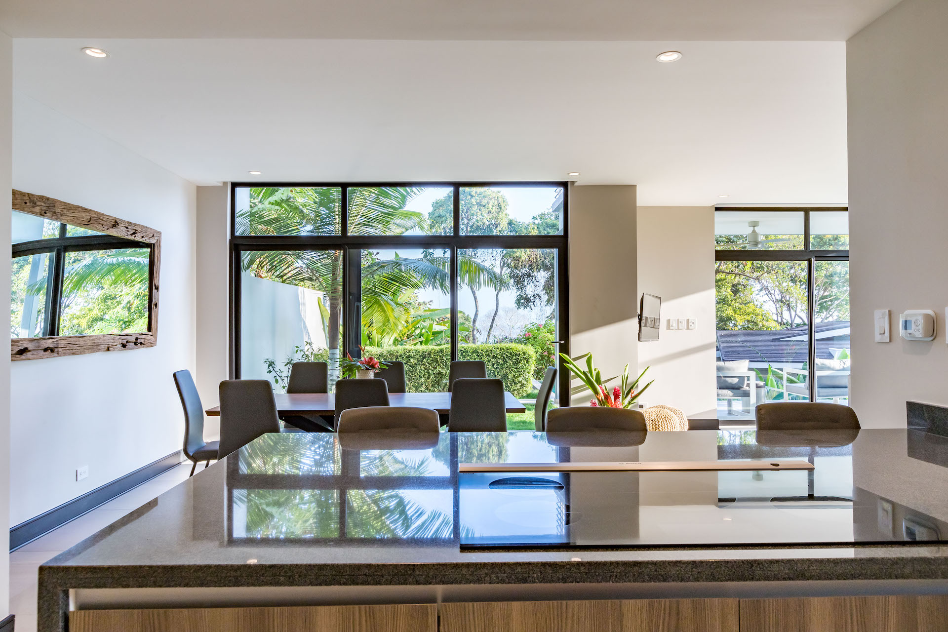 The development’s seamless blend of modern architecture into the rainforest canopy has given rise to life in a luxurious treehouse, bordered by the unrestricted passage of vibrant rainforest life. Privacy design features separate community life from a meditational outward focus, with floor-to-ceiling windows that frame breathtaking views of the rainforest canopy and Costa Ballena shore.