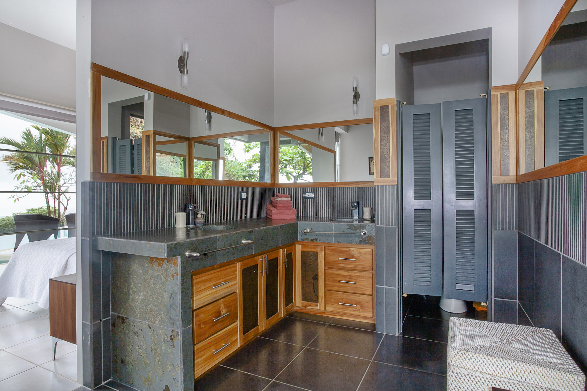 The main villa itself is a one-level dwelling with an open floor plan, high ceilings, generous outdoor living space and a large semi-shaded pool just fifteen feet off of the living room - all of which showcases the amazing view mentioned above. The villa has two comfortable bedrooms including a master suite with a spa-like bathroom and semi-covered hot tub. The kitchen boasts Wolf appliances, exotic natural stone counter tops and custom hardwood cabinetry. The kitchen also integrates very well into the living space with views directed over the pool and Pacific coast line.