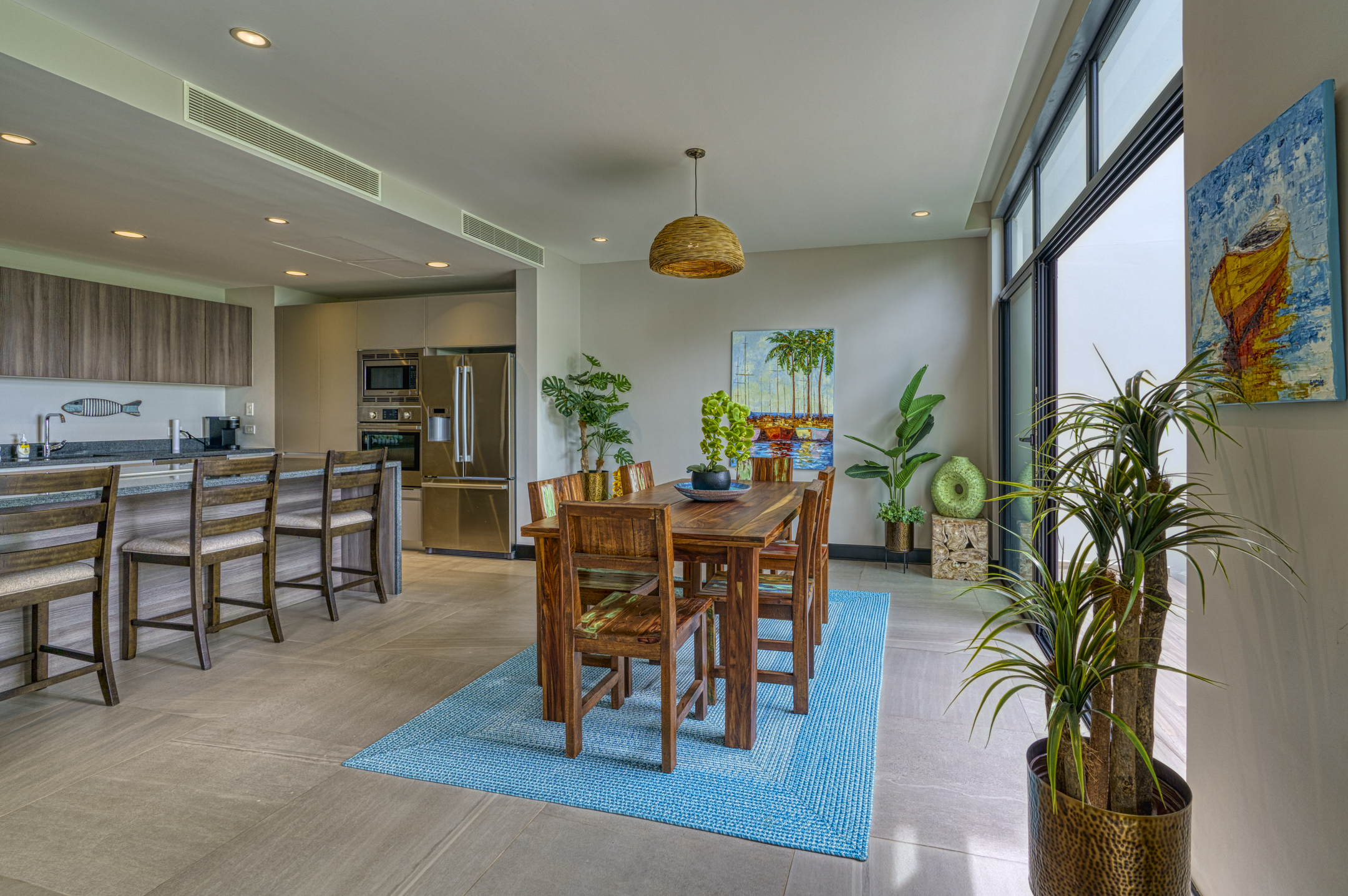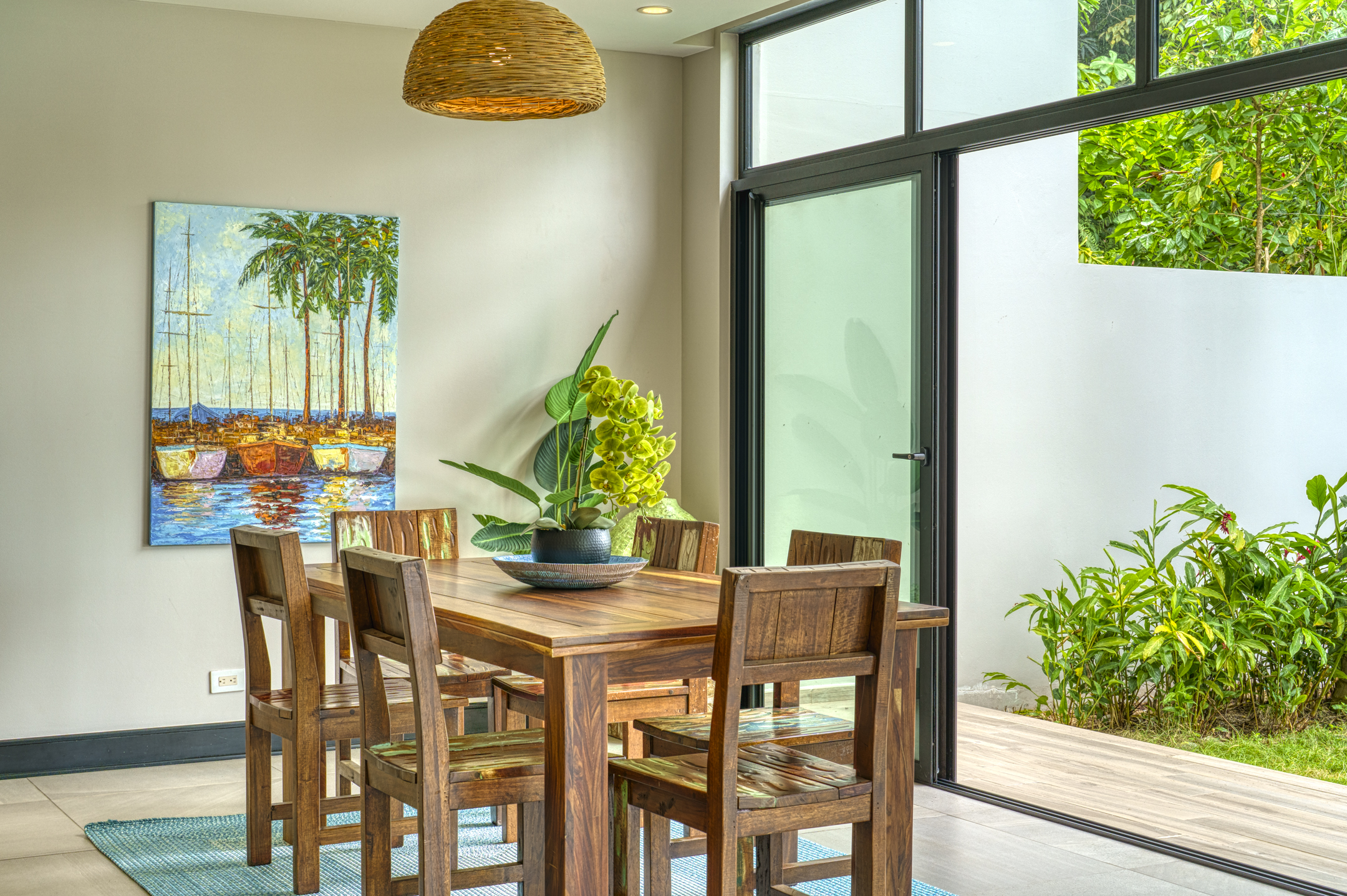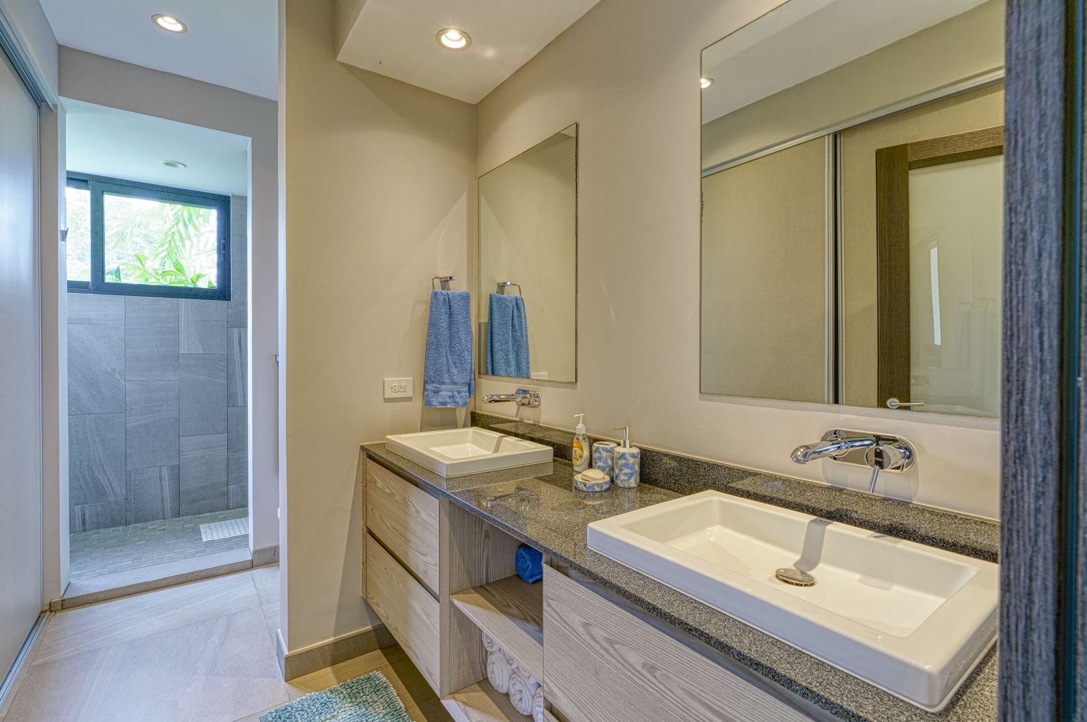 Each of the three ensuite bedrooms is spacious and boasts ample closet space. Clean lines and large floor to ceiling windows make the lush greenery and cool ocean breezes the focal point of the villa. Every room in the house has views of the jungle or the Pacific Ocean; some rooms have both!