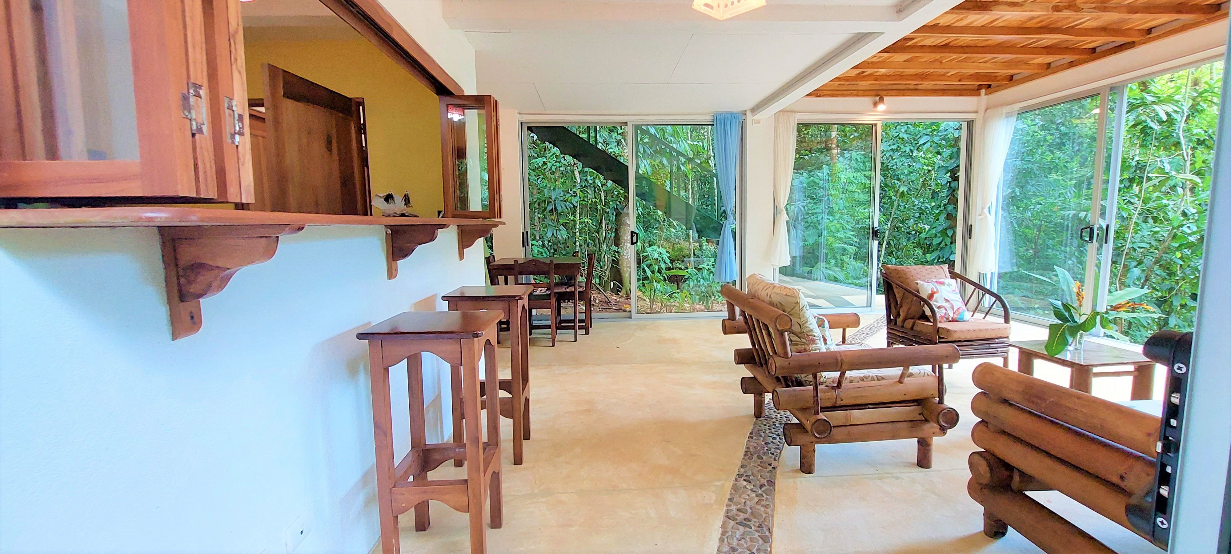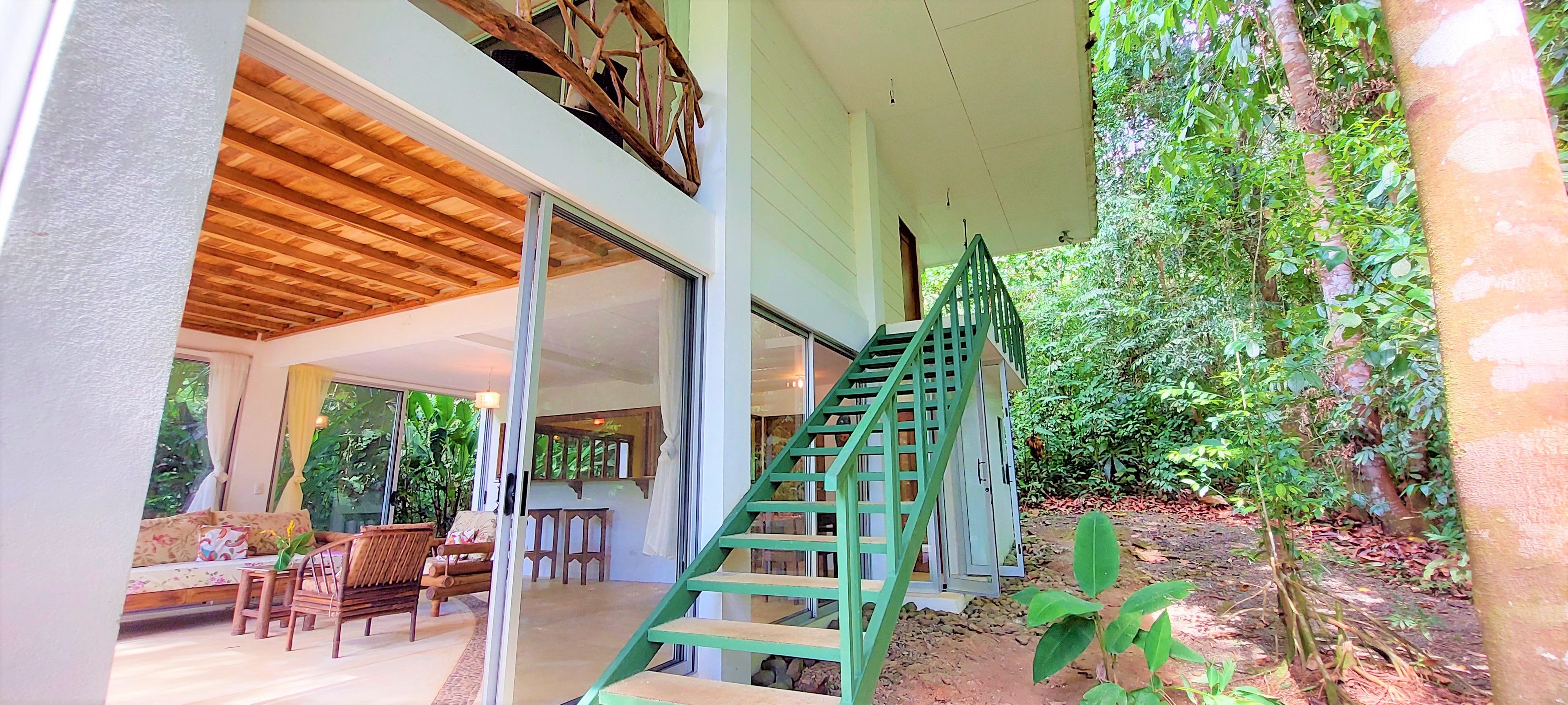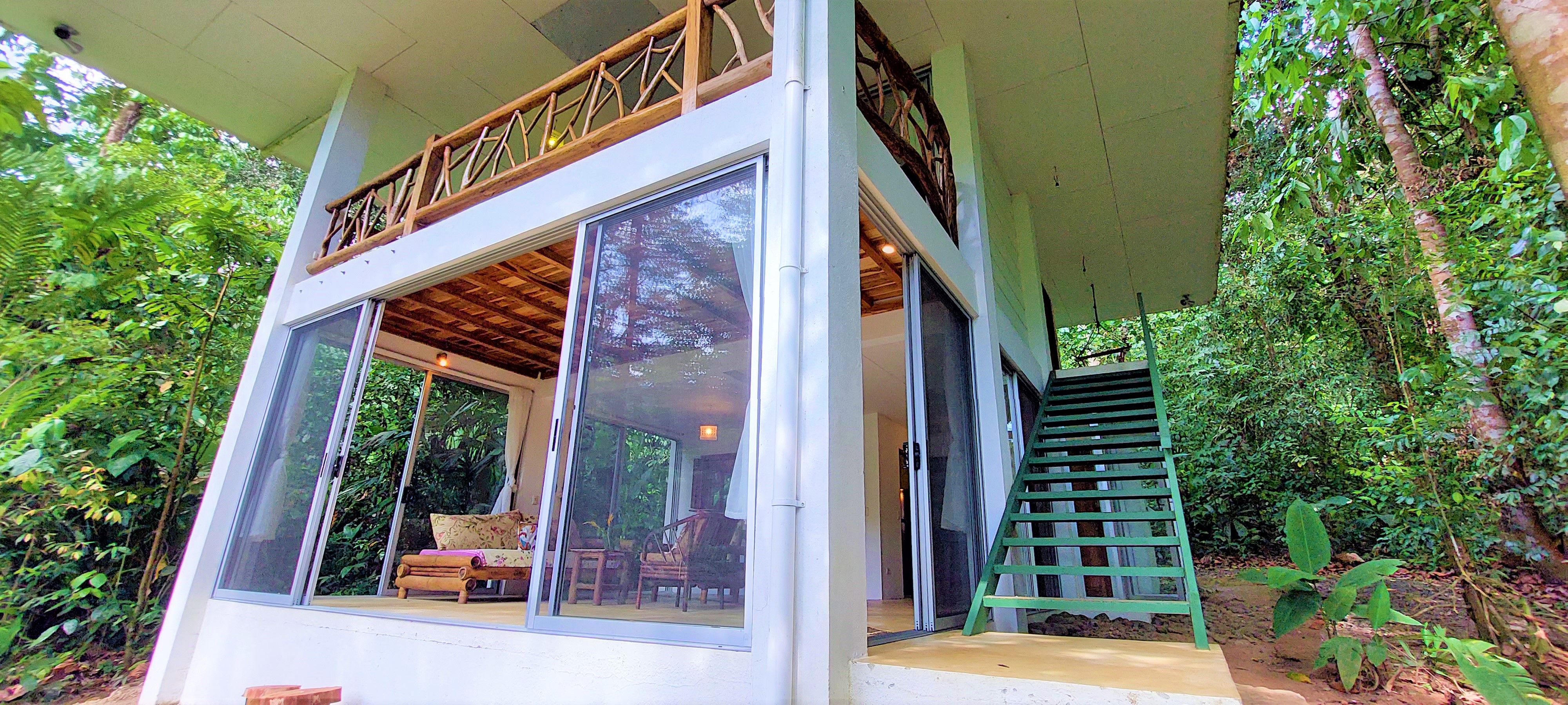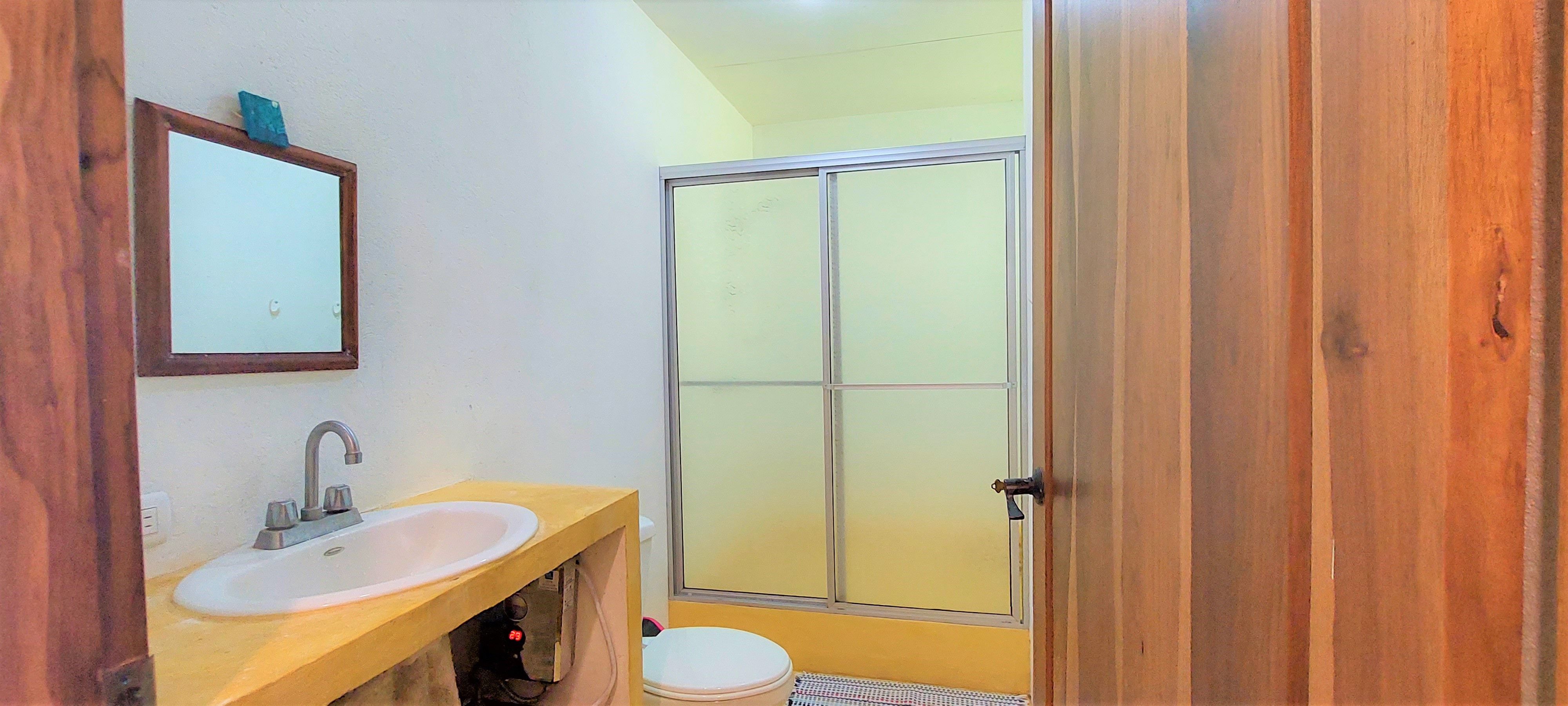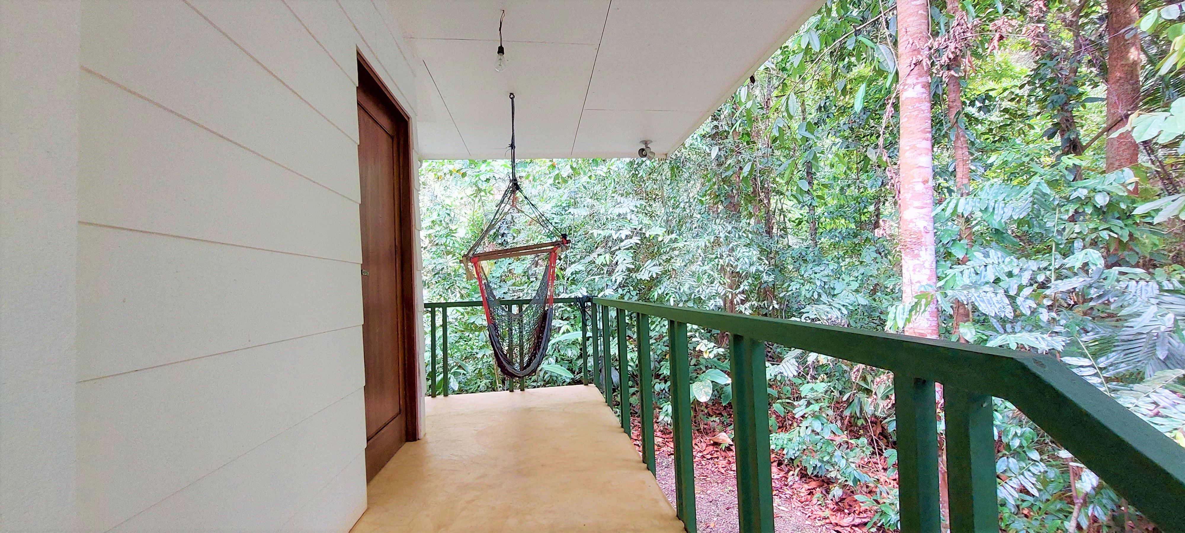 Casa Colibri: Casa Colibri is a two story home with 1 bedroom and 2 full bathrooms with over 1,000 SF of living space. On the first level there is a large open concept living and kitchen enclosed with glass doors/windows and screens, 1 full bathroom and a laundry. This area has opportunities to be extended with a large deck and a plenty of room for a pool. As you go upstairs, you will find a large bedroom, 1 full bathroom, owner’s closet and a large newly added teakwood balcony that overlooks the forest and the mountain on the other side of the river. This deck gives you the impression of living in your tree house since you are almost at the canopy level. The sounds of the river and the forest will give you a feeling of happiness, serenity and tranquility along the day.