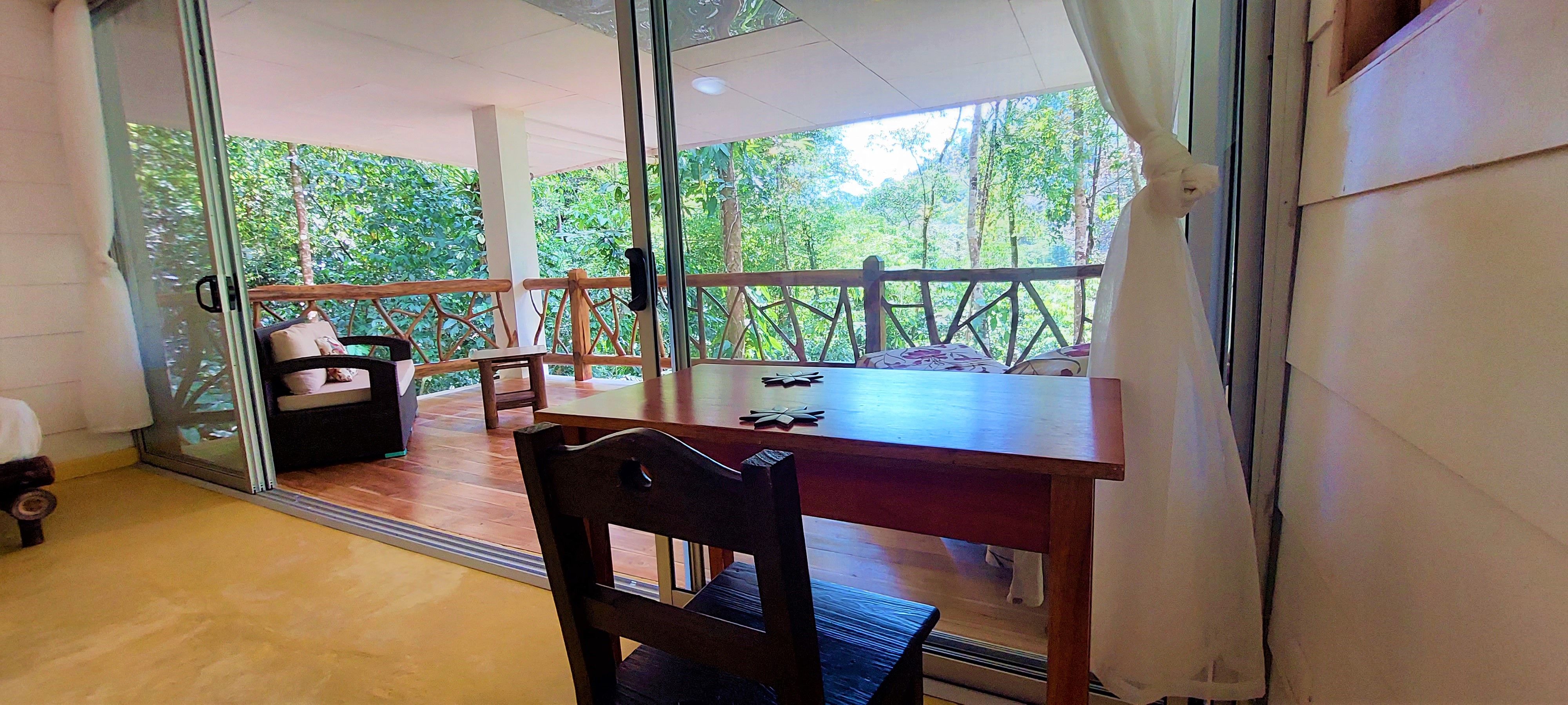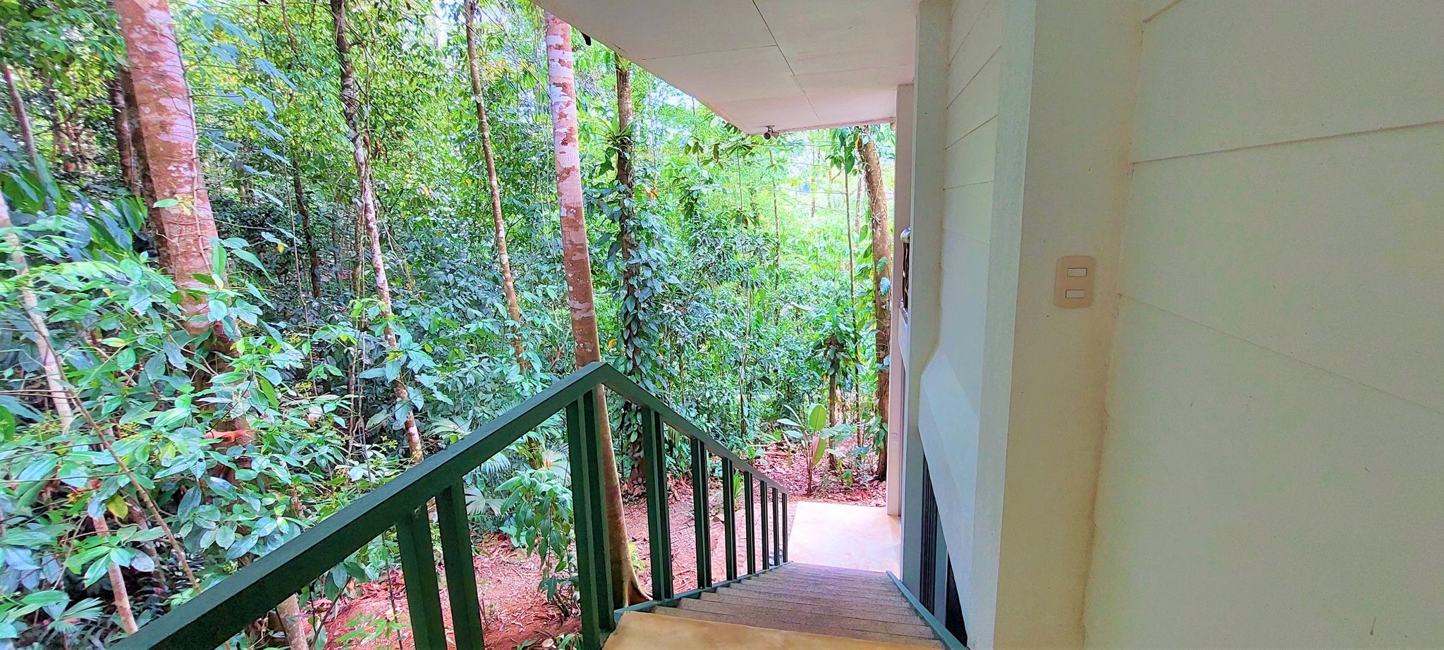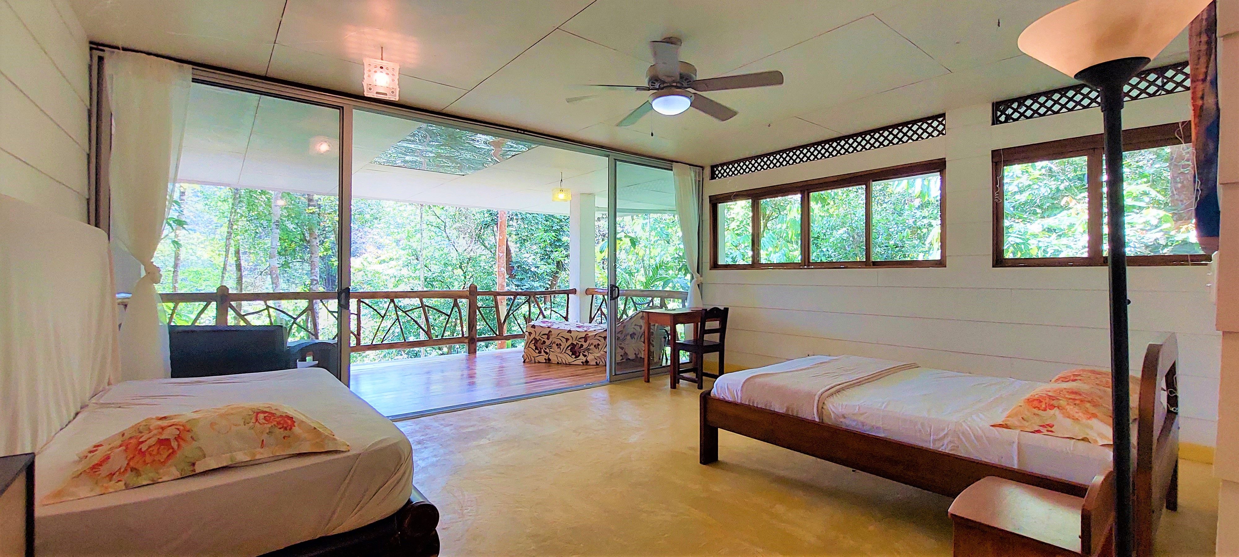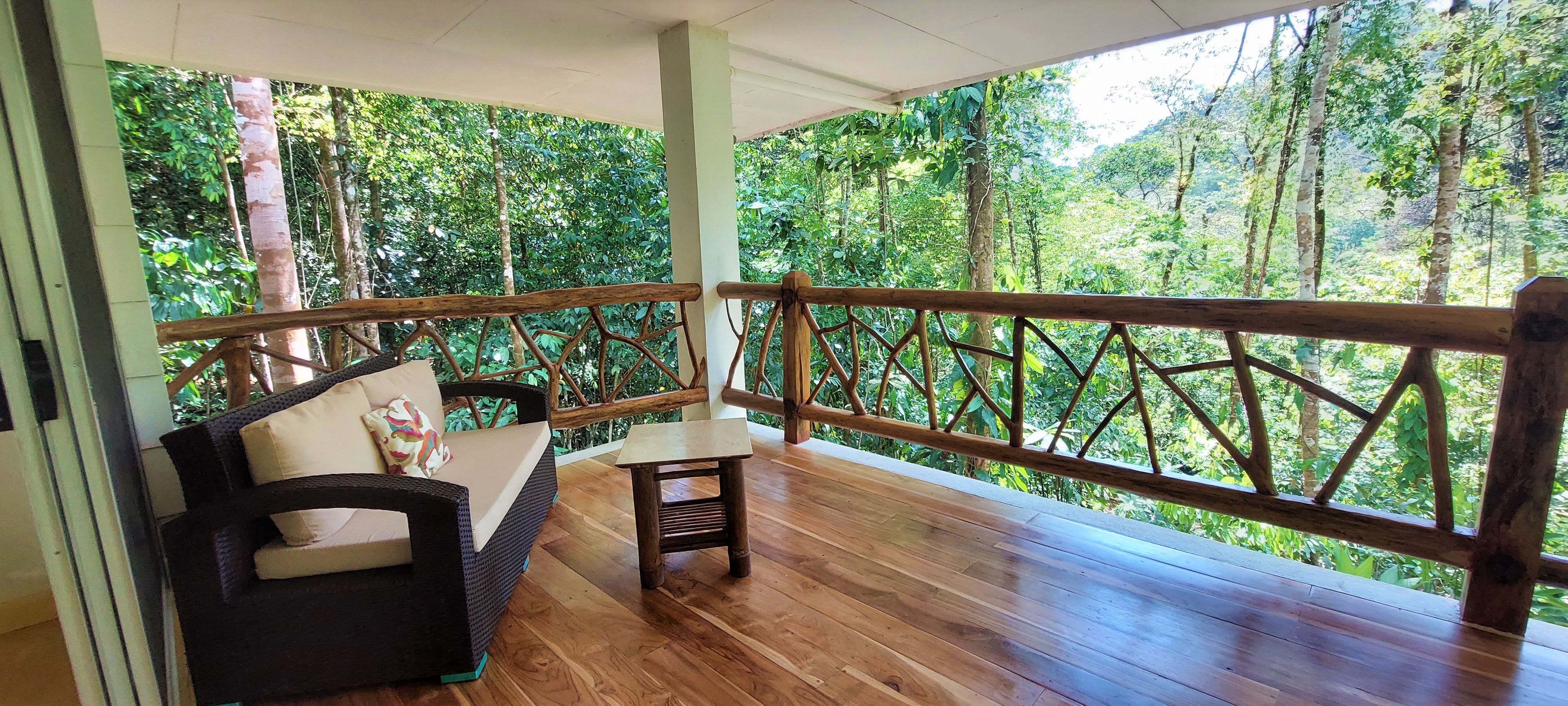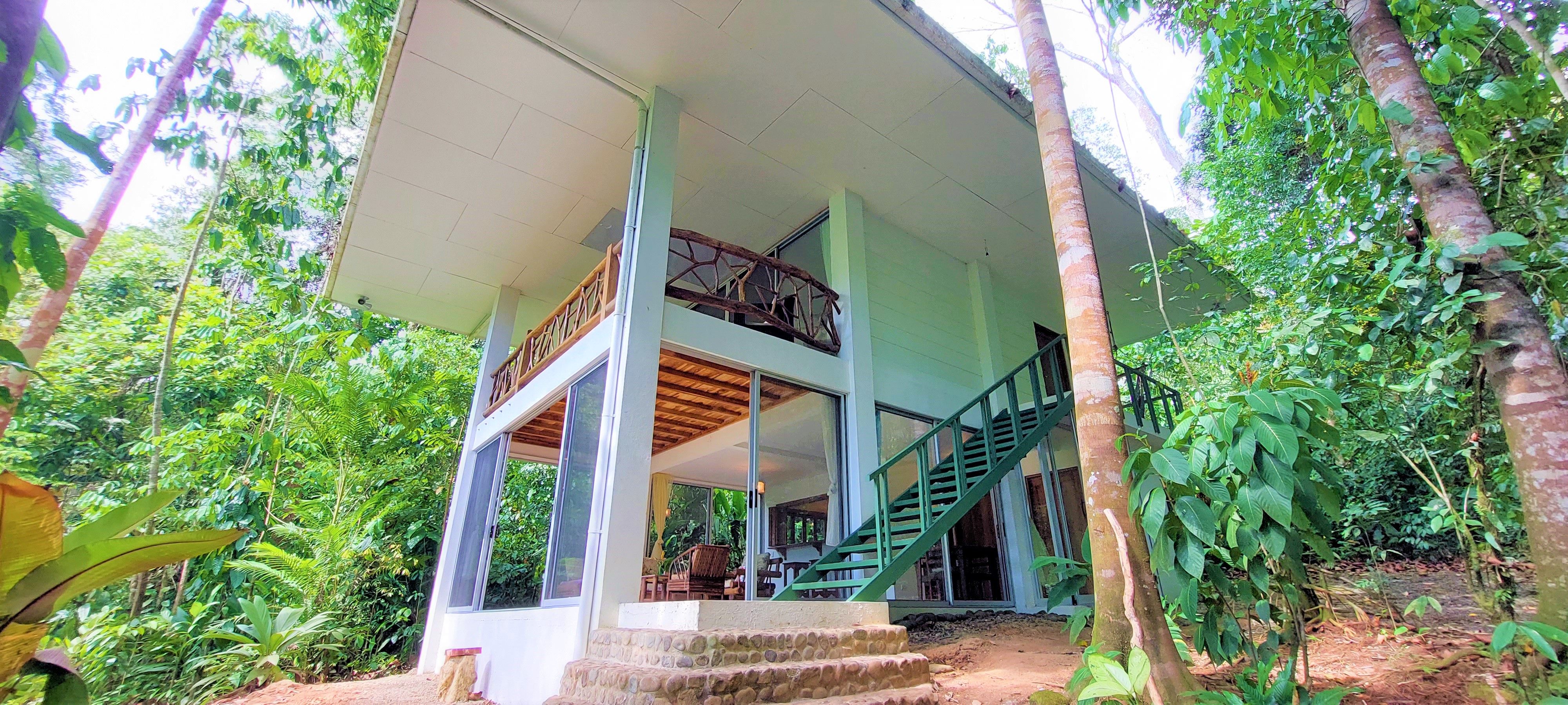 Casa Colibri: Casa Colibri is a two story home with 1 bedroom and 2 full bathrooms with over 1,000 SF of living space. On the first level there is a large open concept living and kitchen enclosed with glass doors/windows and screens, 1 full bathroom and a laundry. This area has opportunities to be extended with a large deck and a plenty of room for a pool. As you go upstairs, you will find a large bedroom, 1 full bathroom, owner’s closet and a large newly added teakwood balcony that overlooks the forest and the mountain on the other side of the river. This deck gives you the impression of living in your tree house since you are almost at the canopy level. The sounds of the river and the forest will give you a feeling of happiness, serenity and tranquility along the day.
