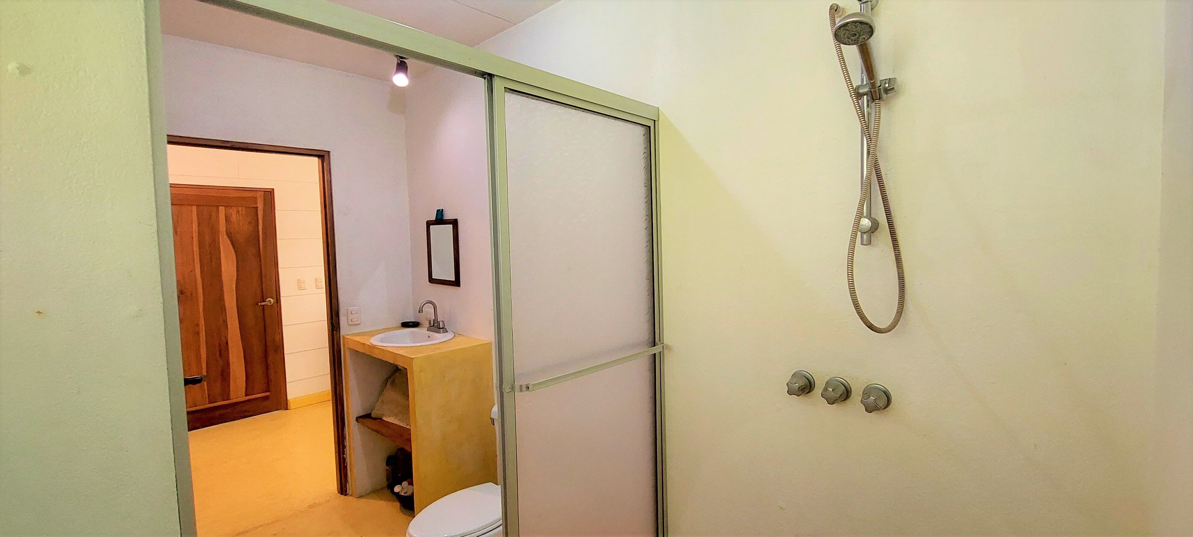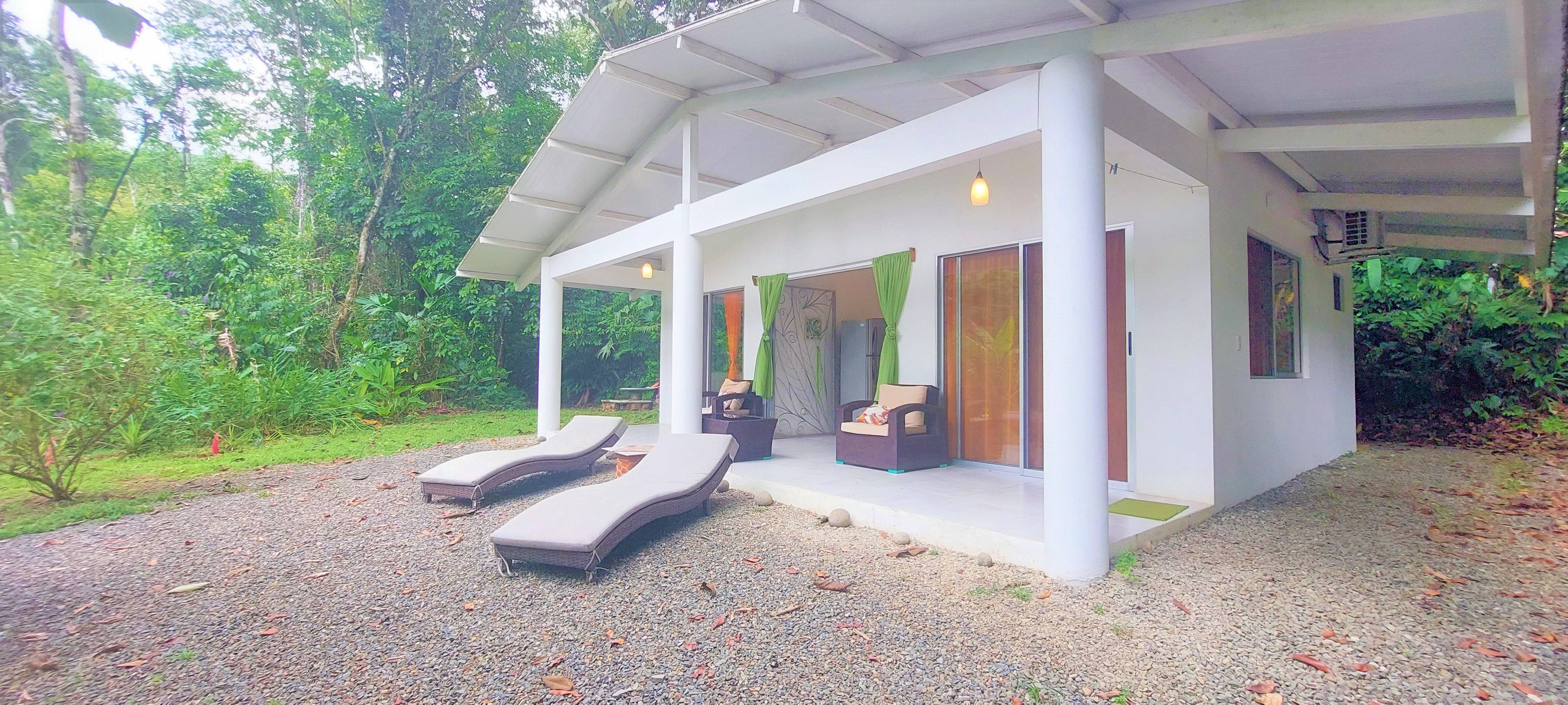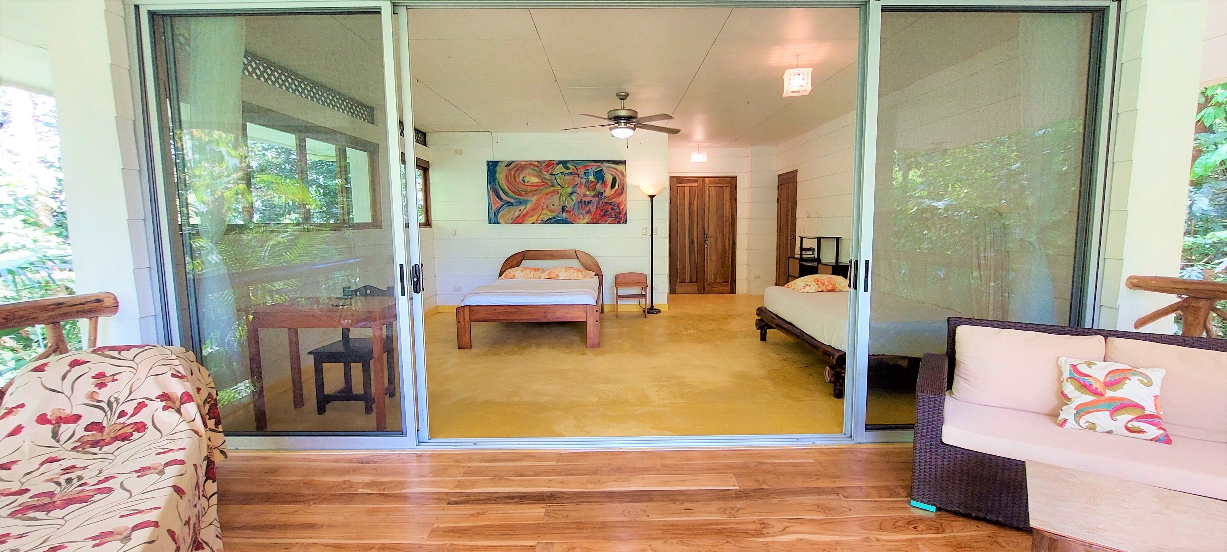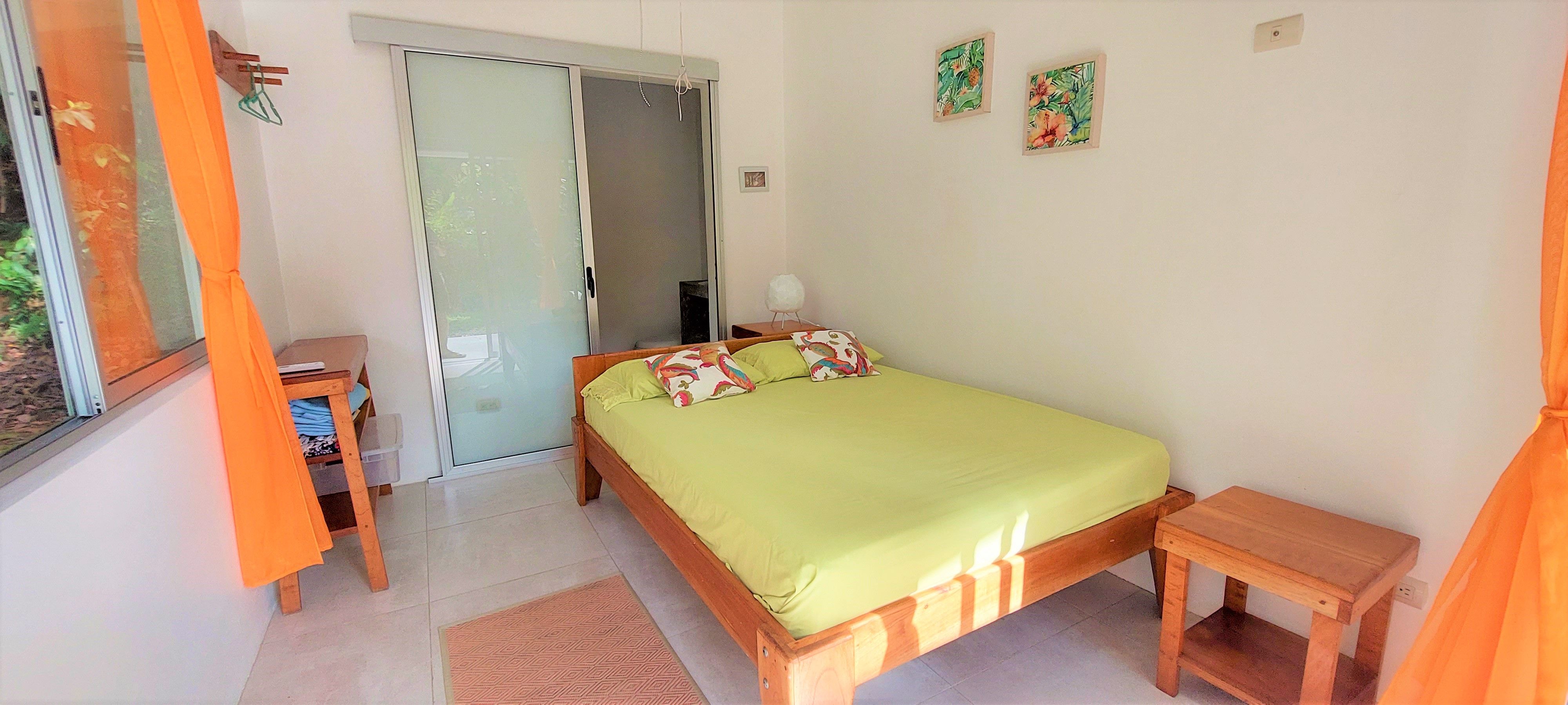 Casa Hoja Verde: Casa Hoja Verde is single level newly built cozy guest house with 2 bedrooms and 2 bathrooms, each room has a private full bathroom, ceiling fan and air conditioner. There is a kitchen and terrace in the middle of the house. Casa Hoja Verde has its own private concrete driveway and covered parking area. This is a great guest house for family or friends and an opportunity for those who want to produce some income renting out the guest house that is separated from Casa Colibri by some jungle to insure privacy.